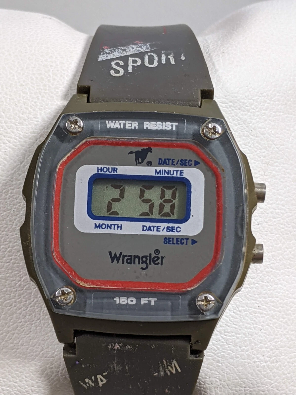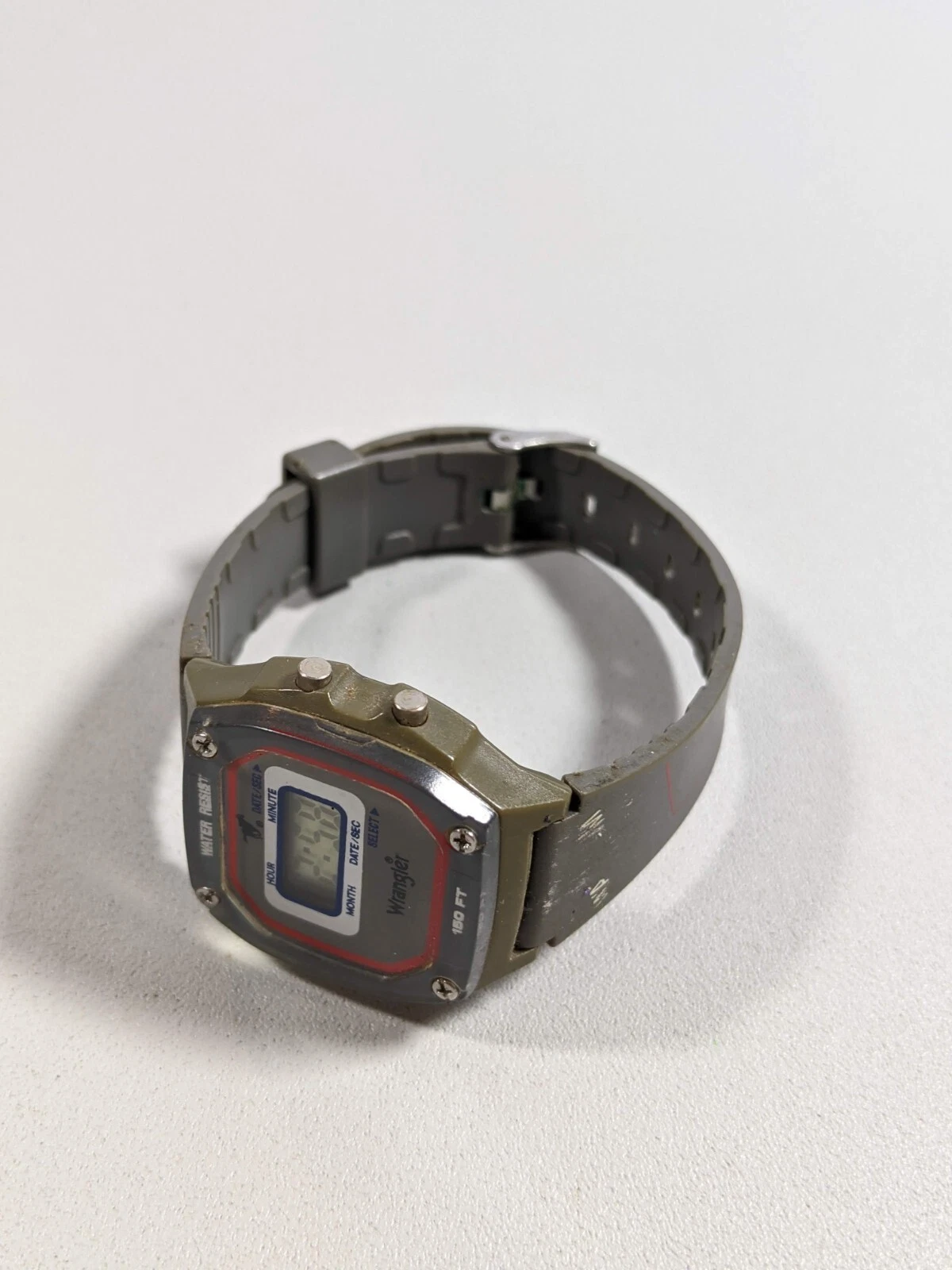 Vintage Wrangler Digital Alarm Day Date Gray Band Watch
