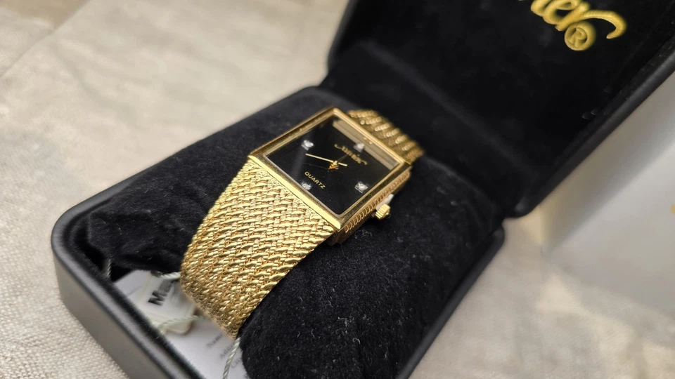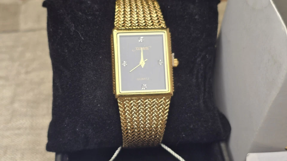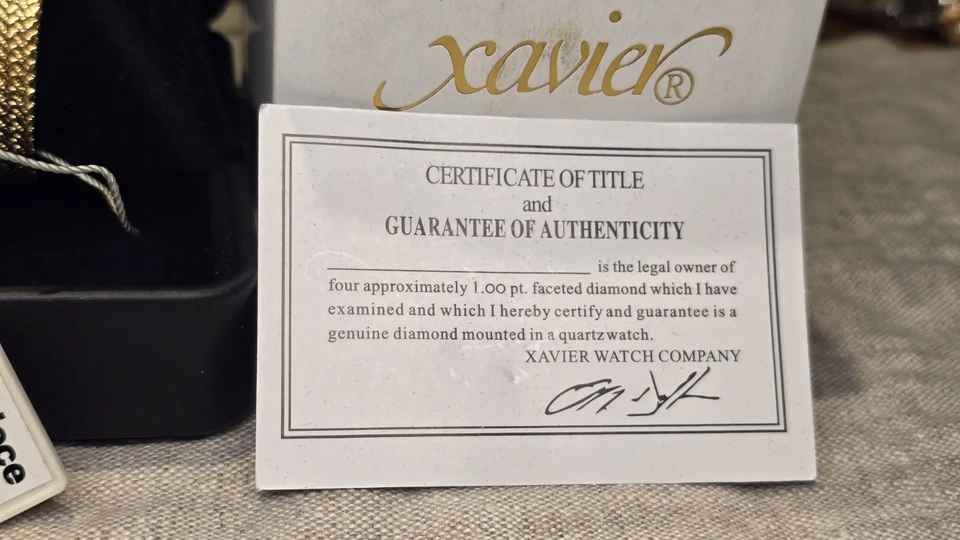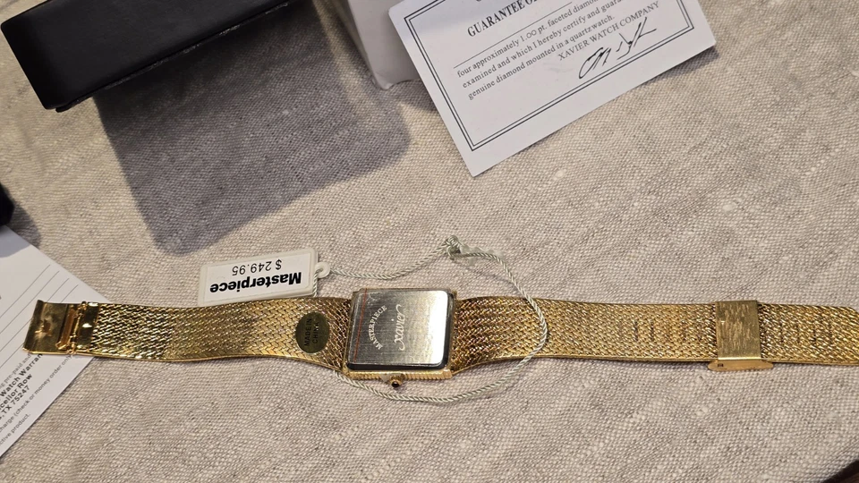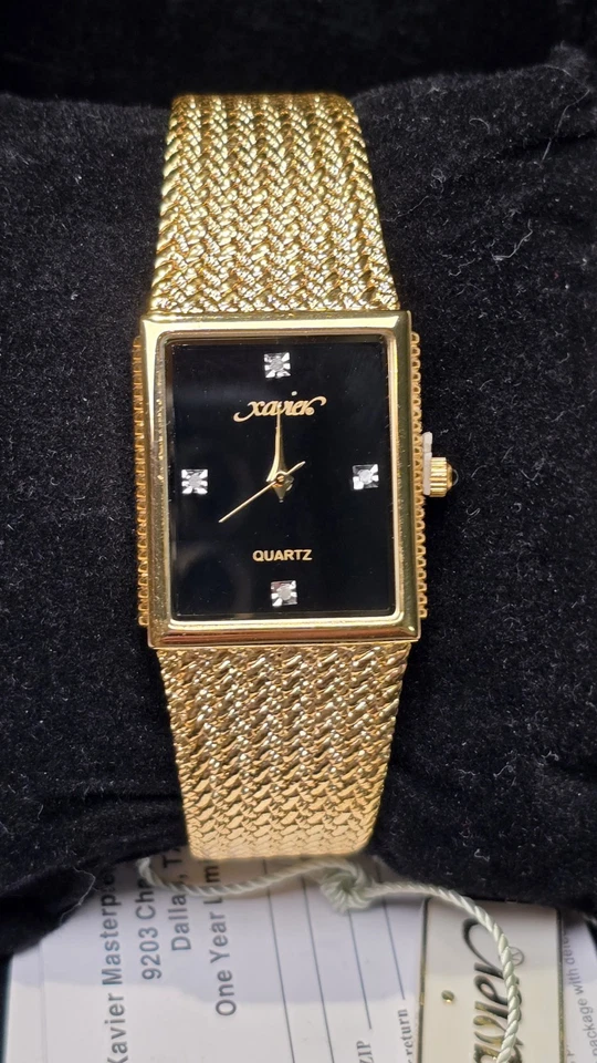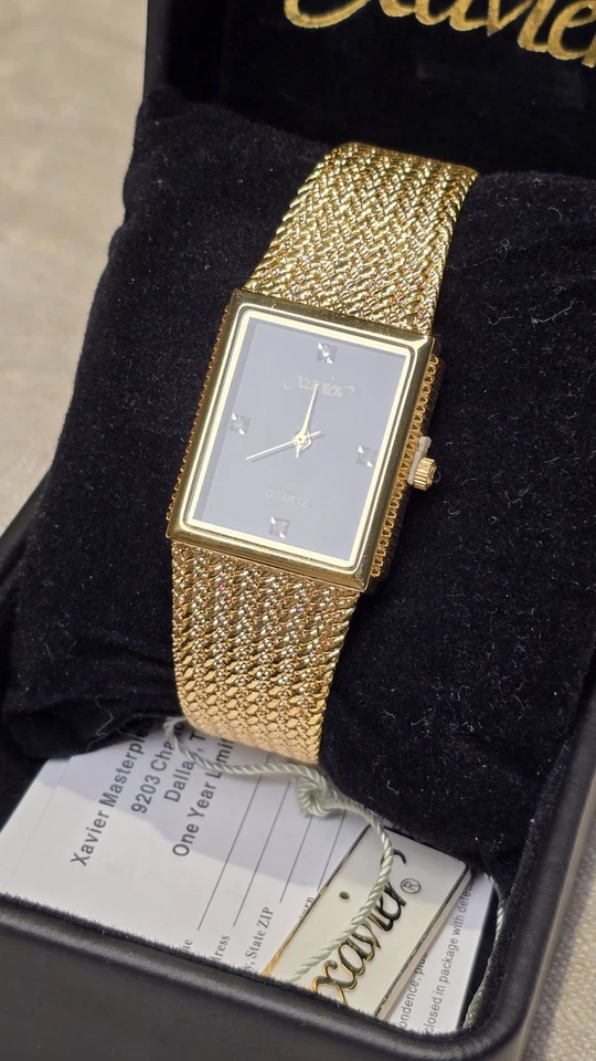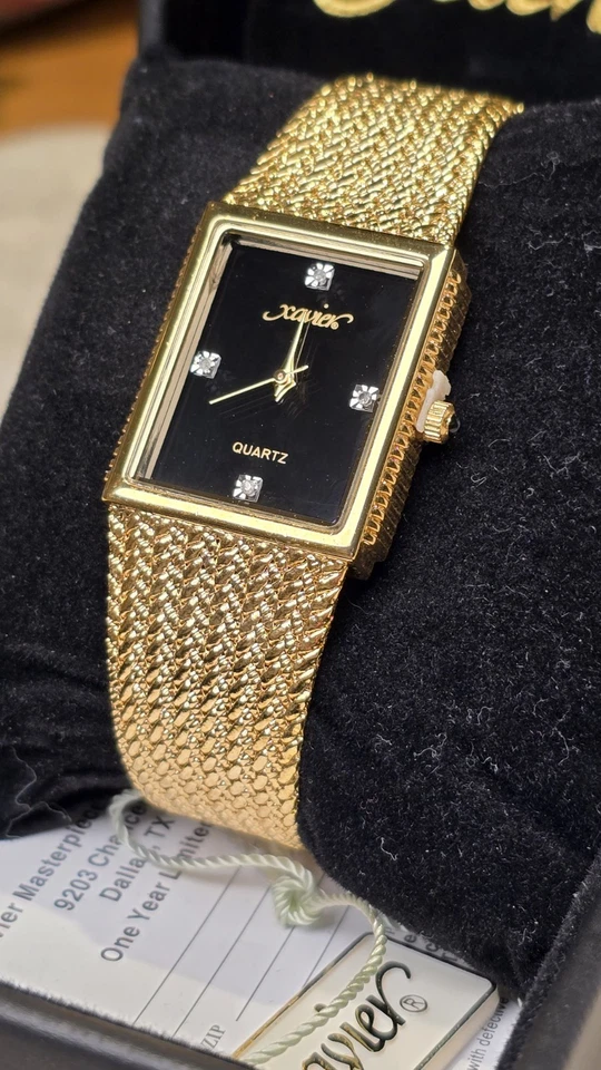 NWT Vintage Xavier Quartz Men's Watch Masterpiece Diamond Swiss 80's Gold Plate