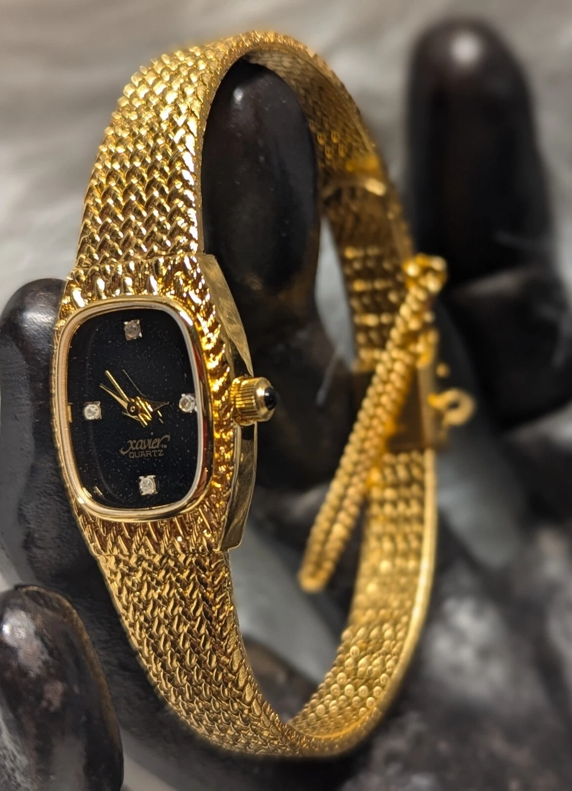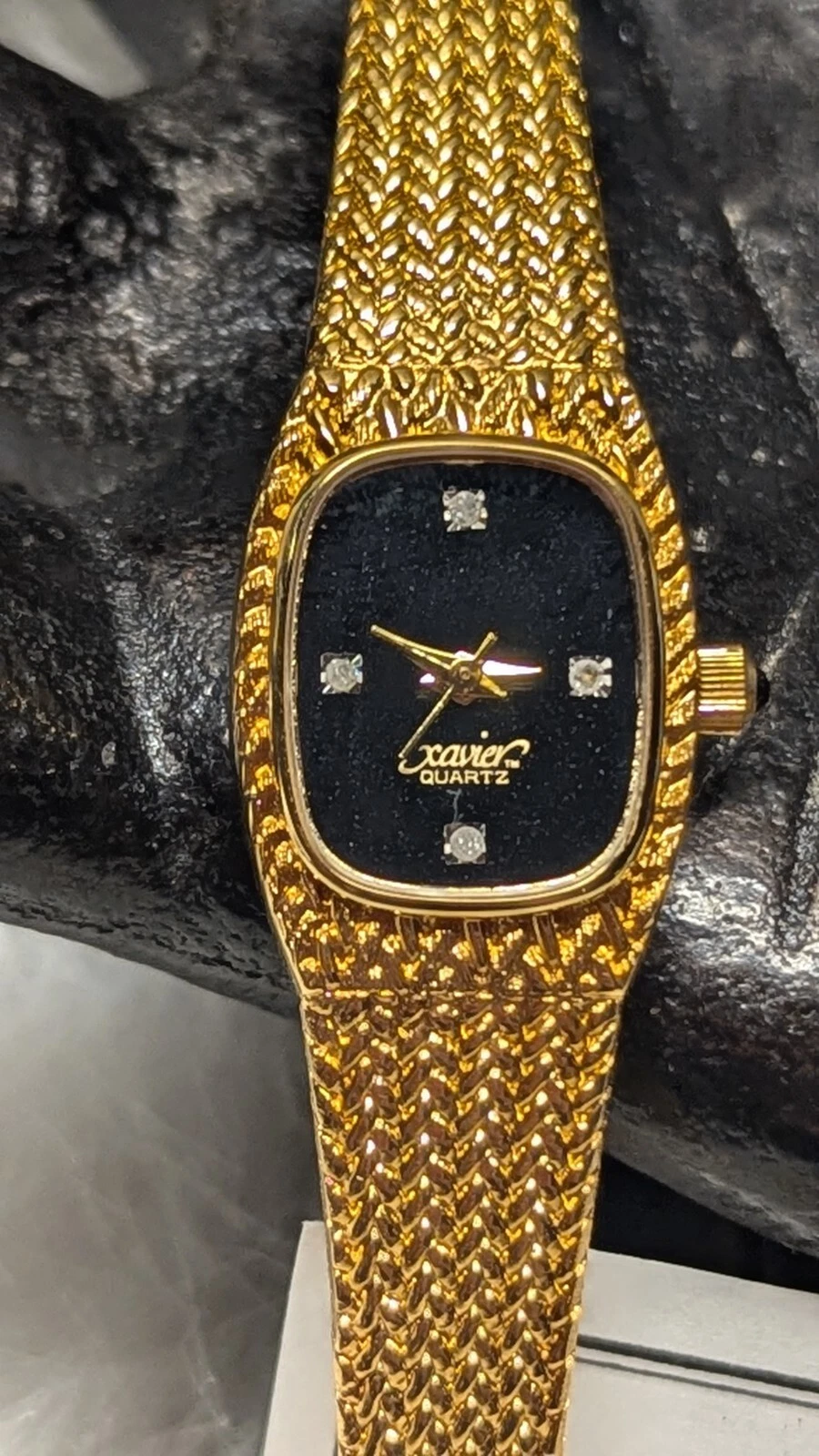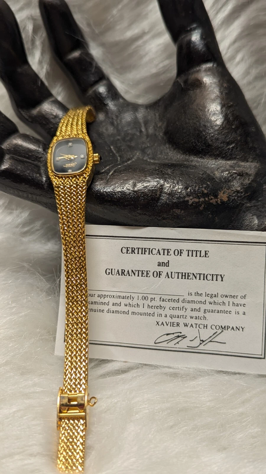 Ladies XAVIER Diamond Watch Gold Tone Certificate Of Authenticity New Battery