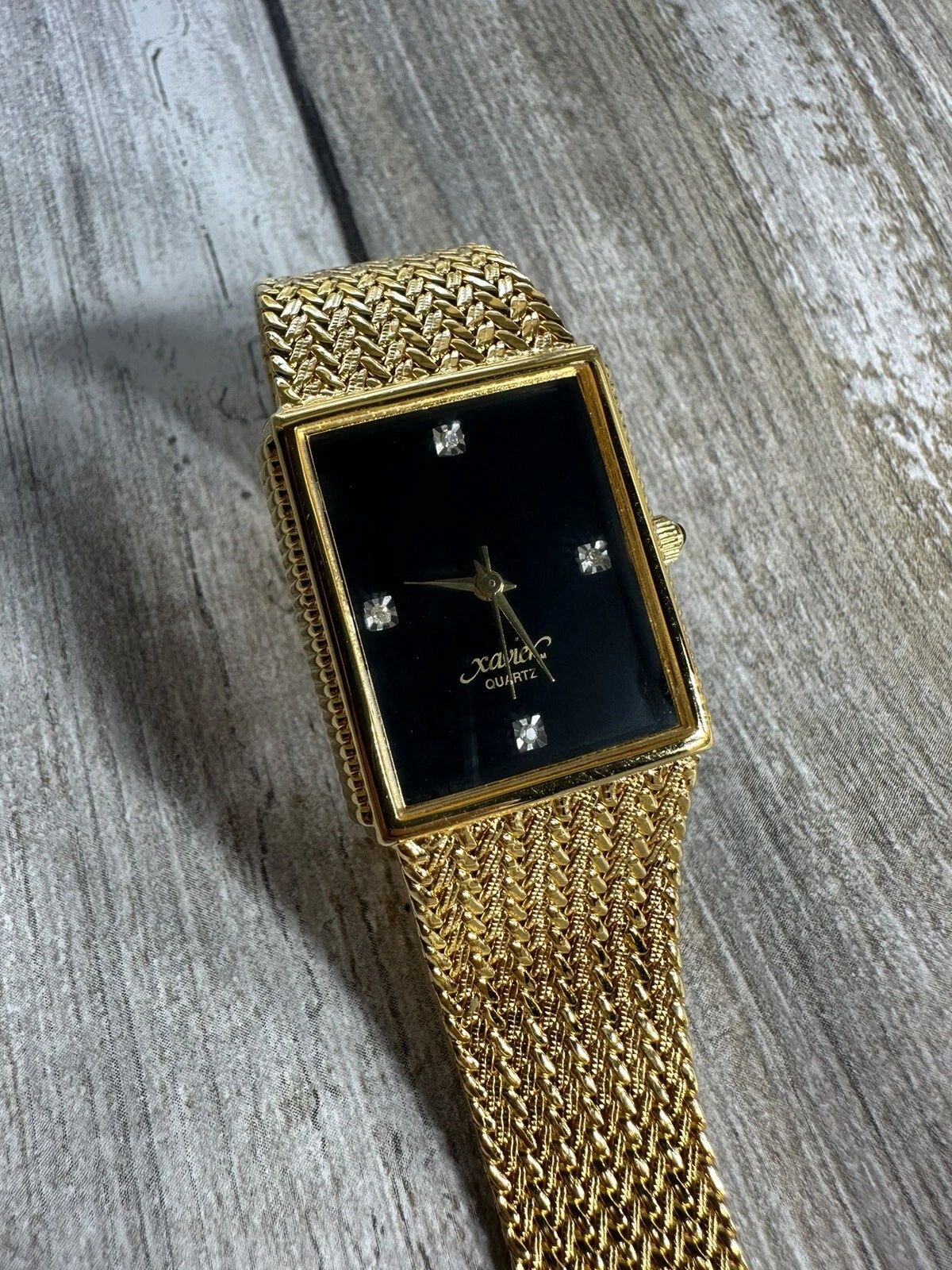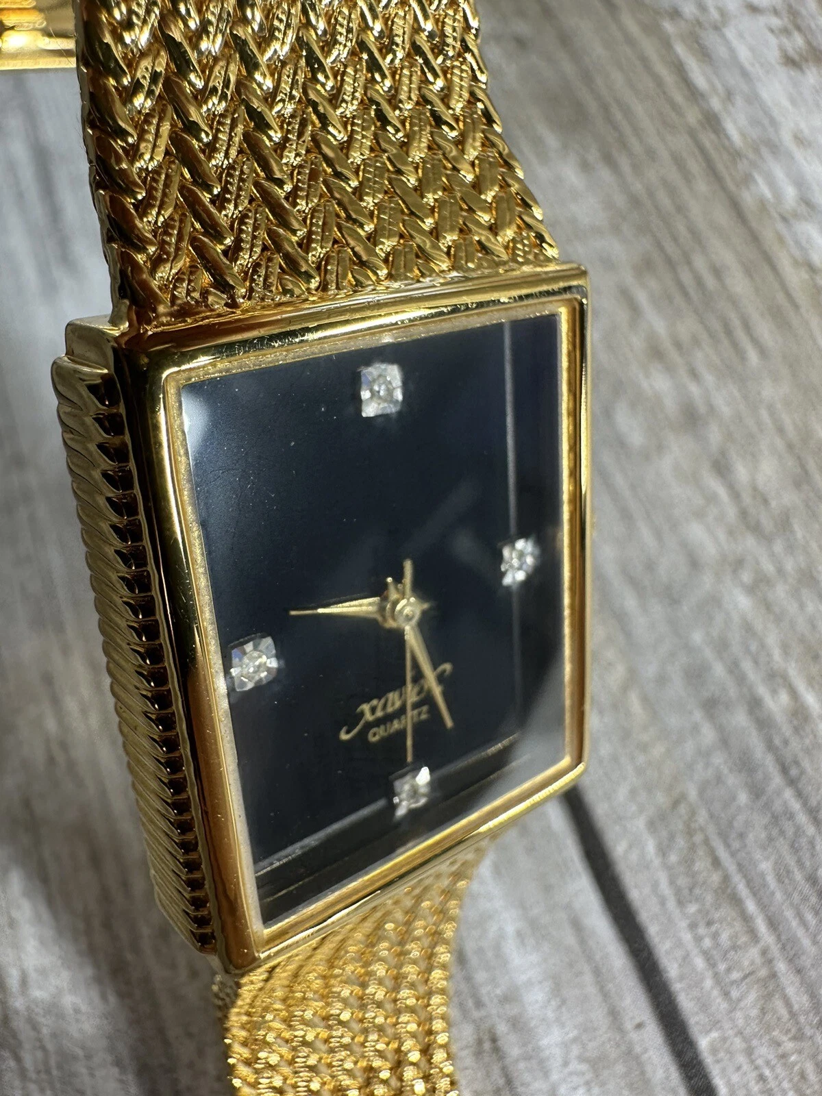 Vintage Xavier Quartz Men's Watch Masterpiece Diamond Swiss 80's Gold Plate Mint