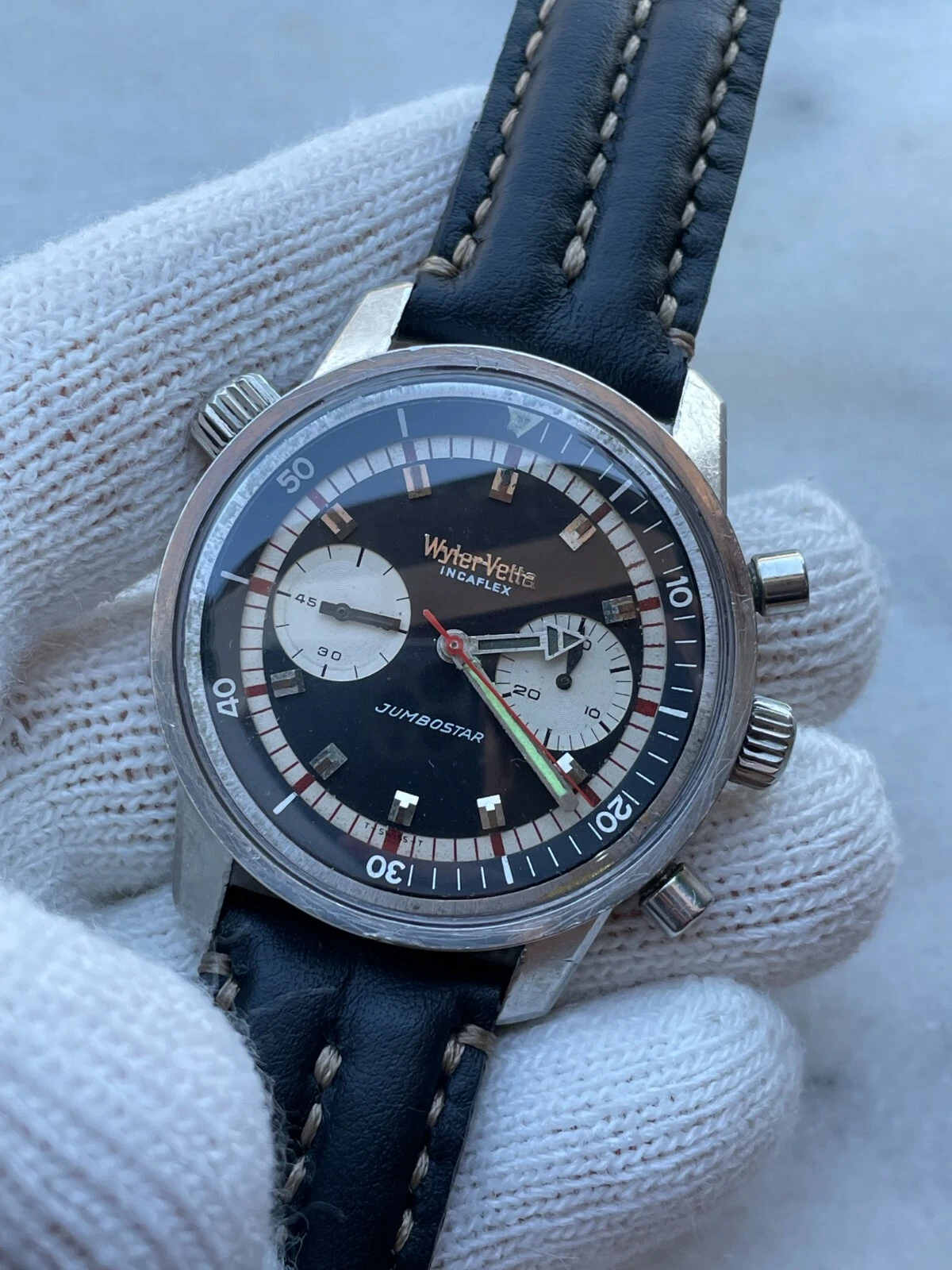 Wyler Vetta Jumbostar Vintage Chronograph Manual Valjoux 23 Mens 40.5mm Swiss