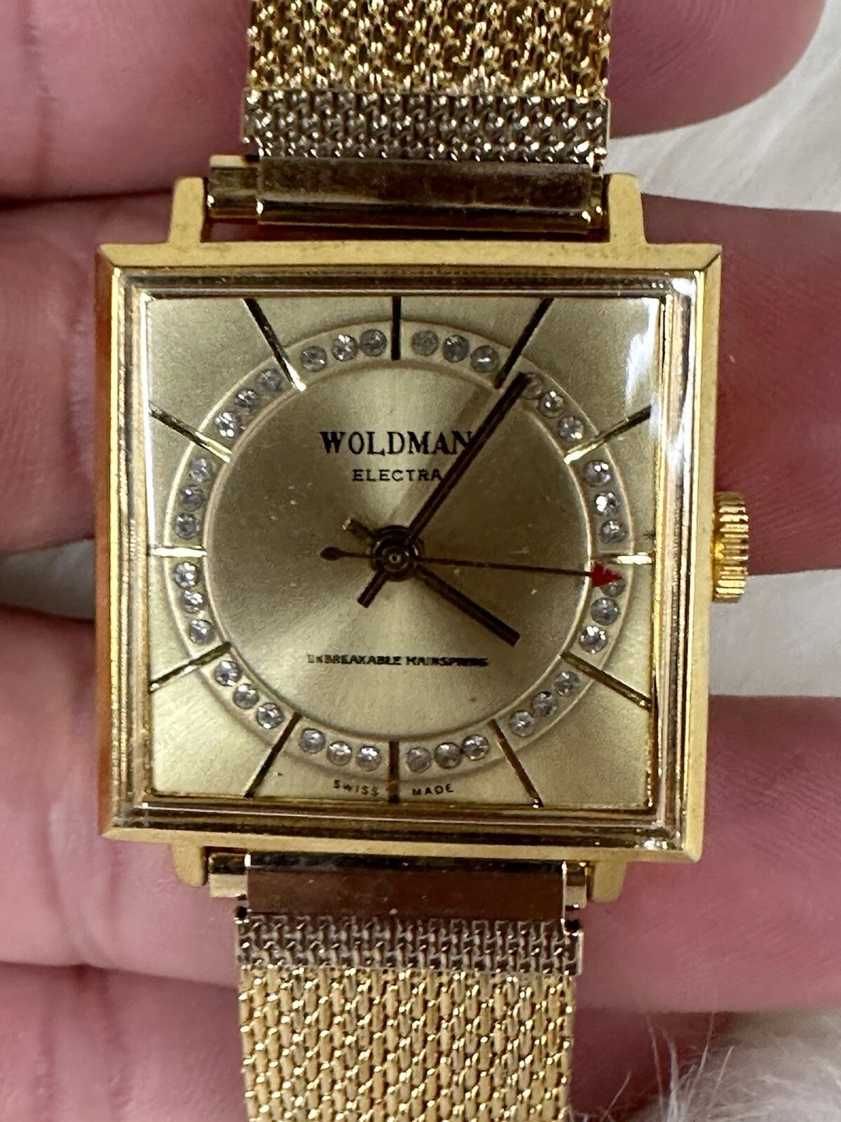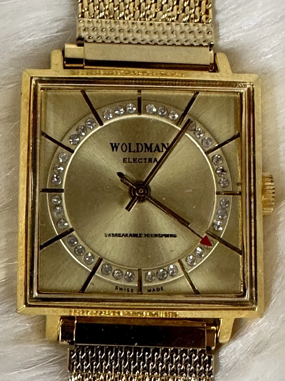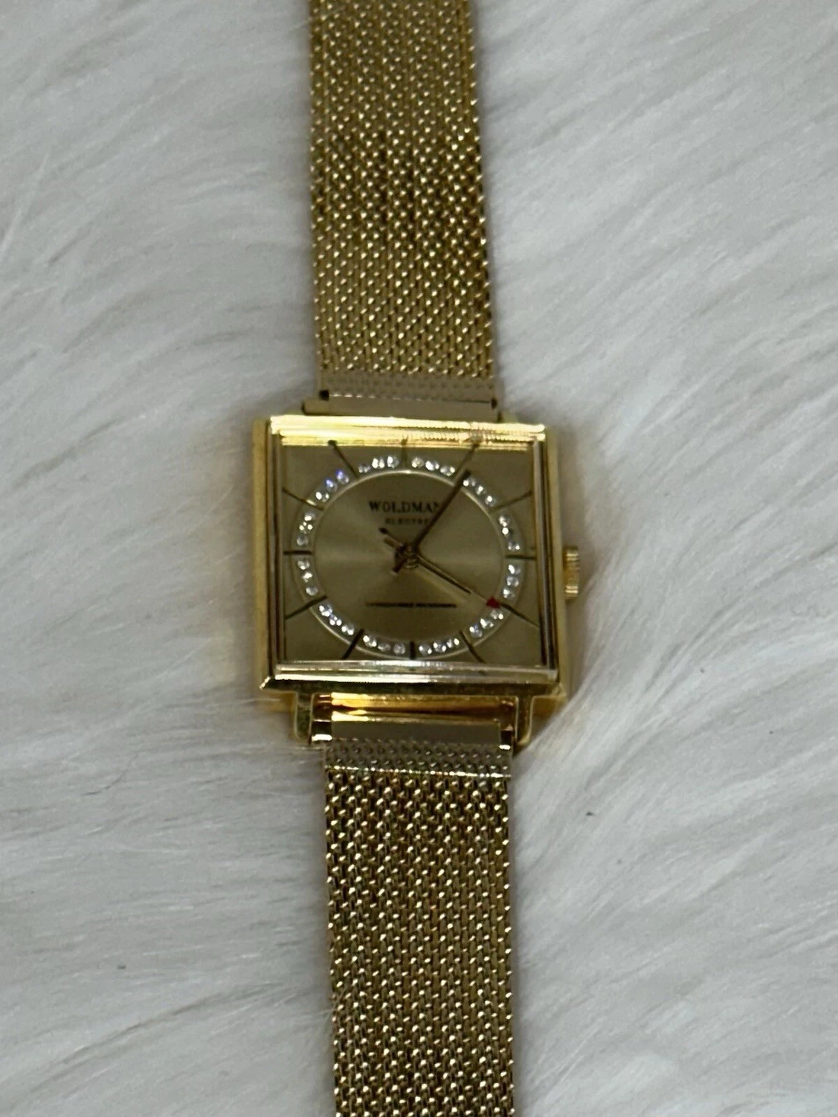 Men's Woldman Electra Watch Gold Tone Jeweled Quartz Gold Band
