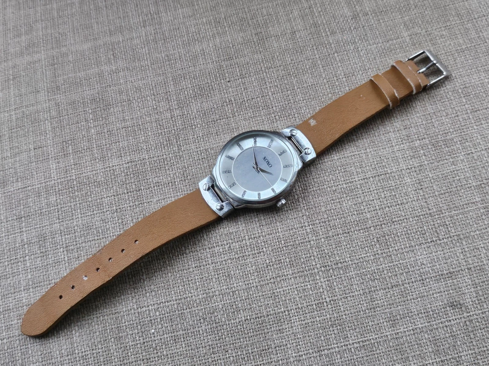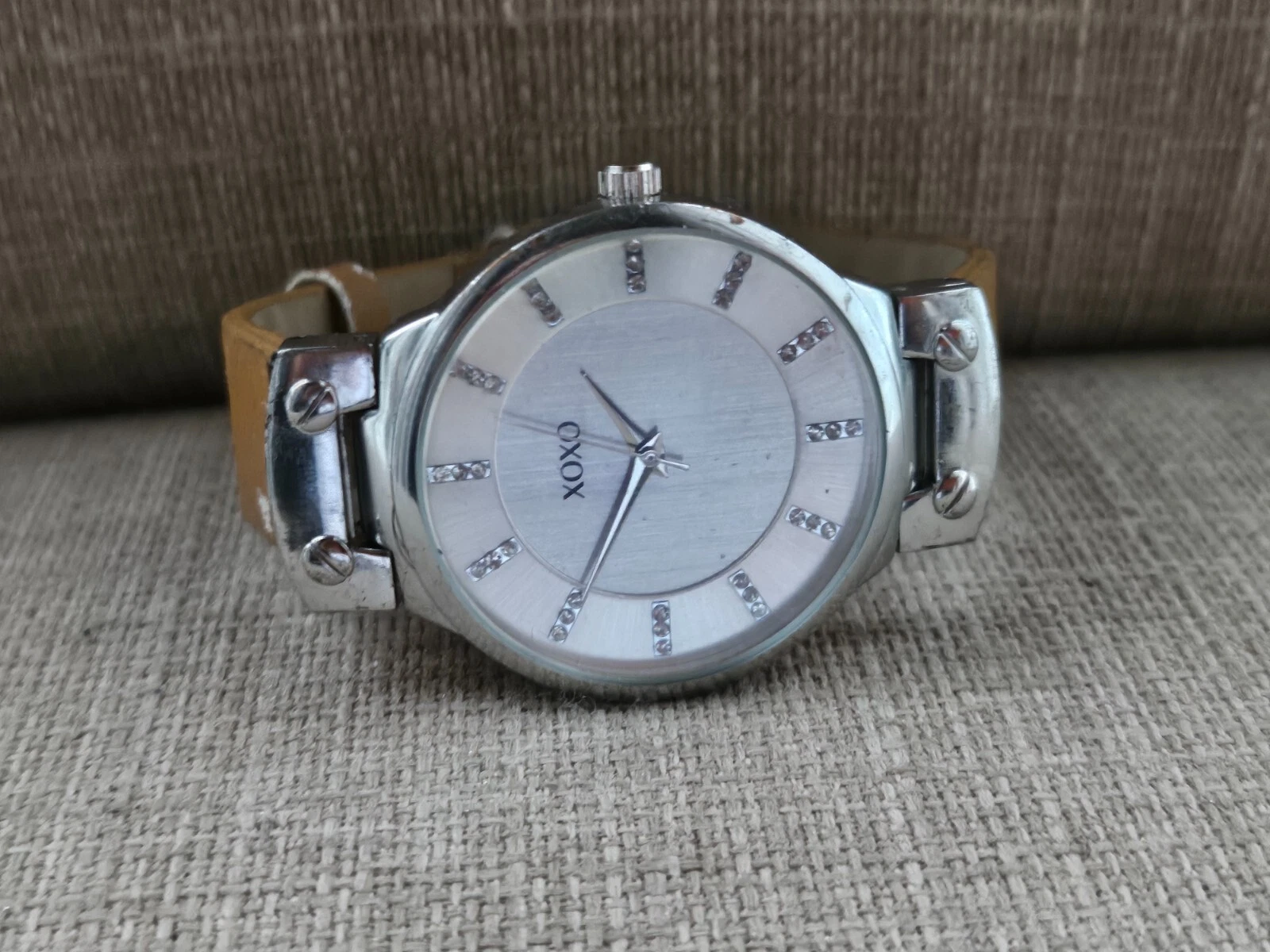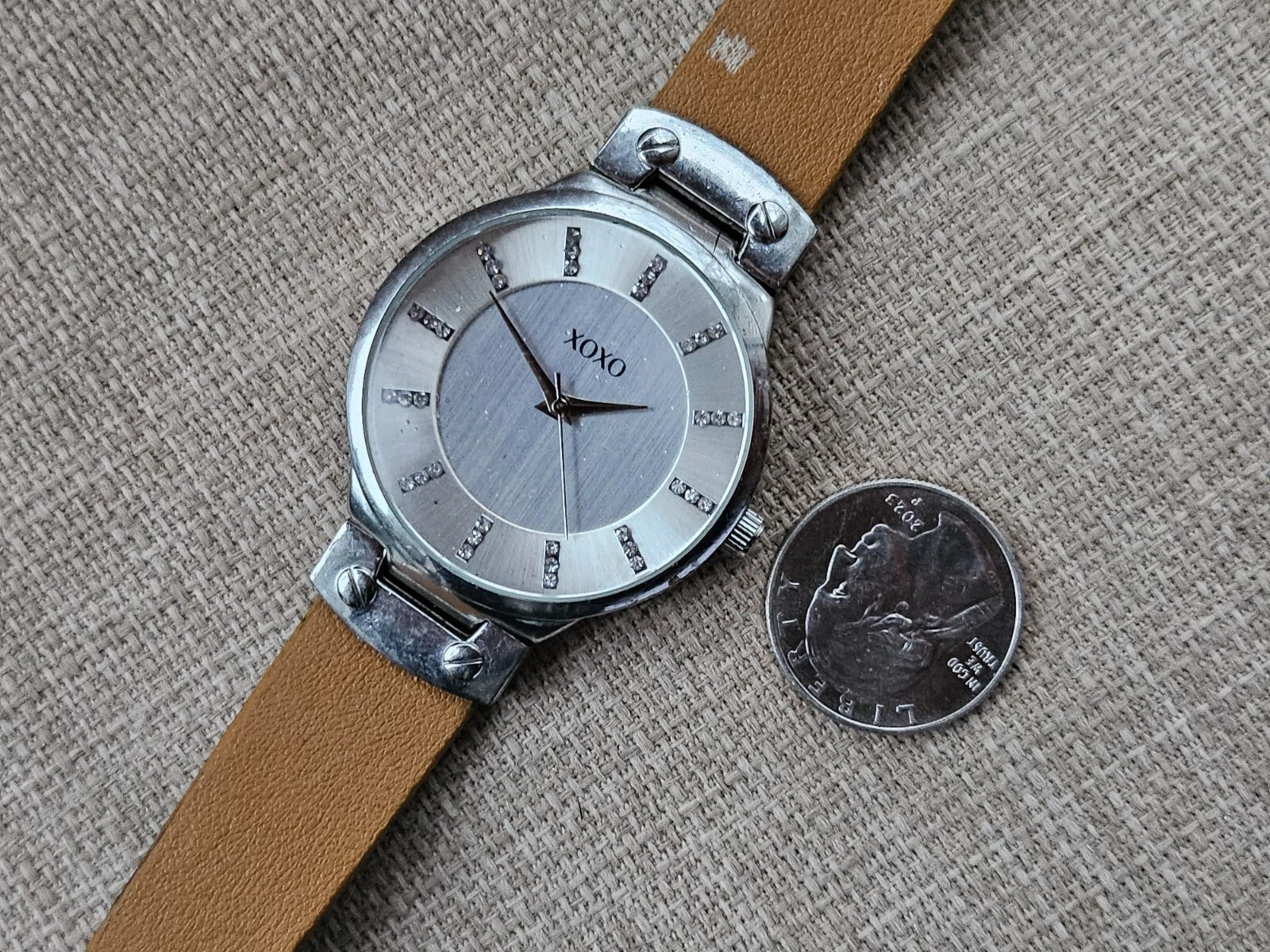 XOXO Wristwatch Tan Faux Leather Strap Silver Tone Case Wrist Watch