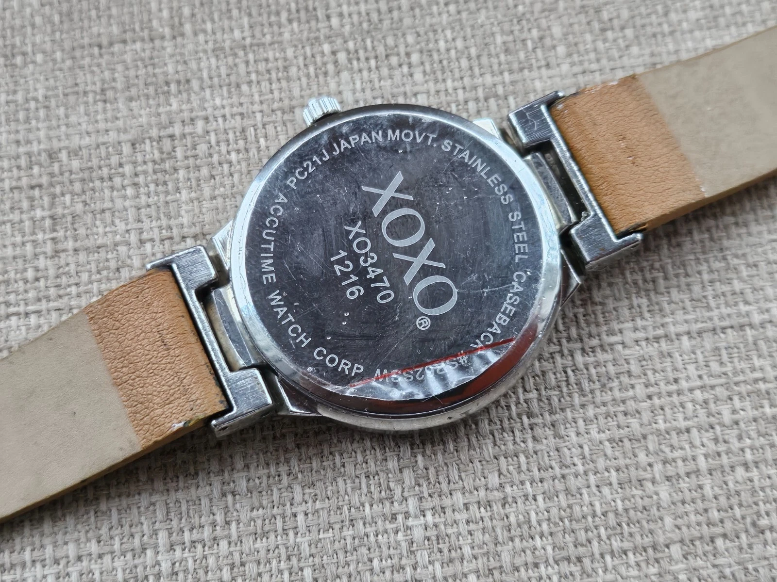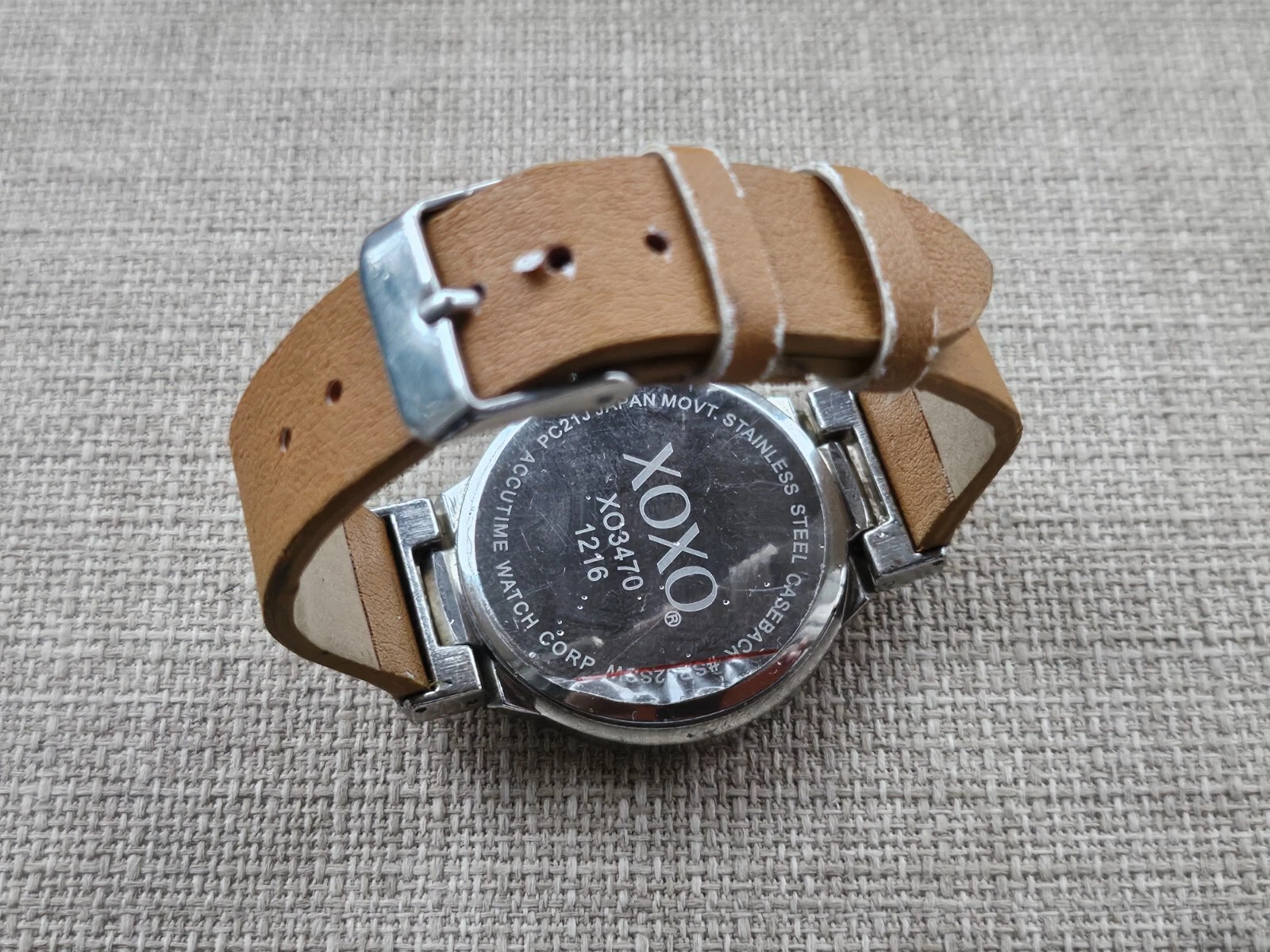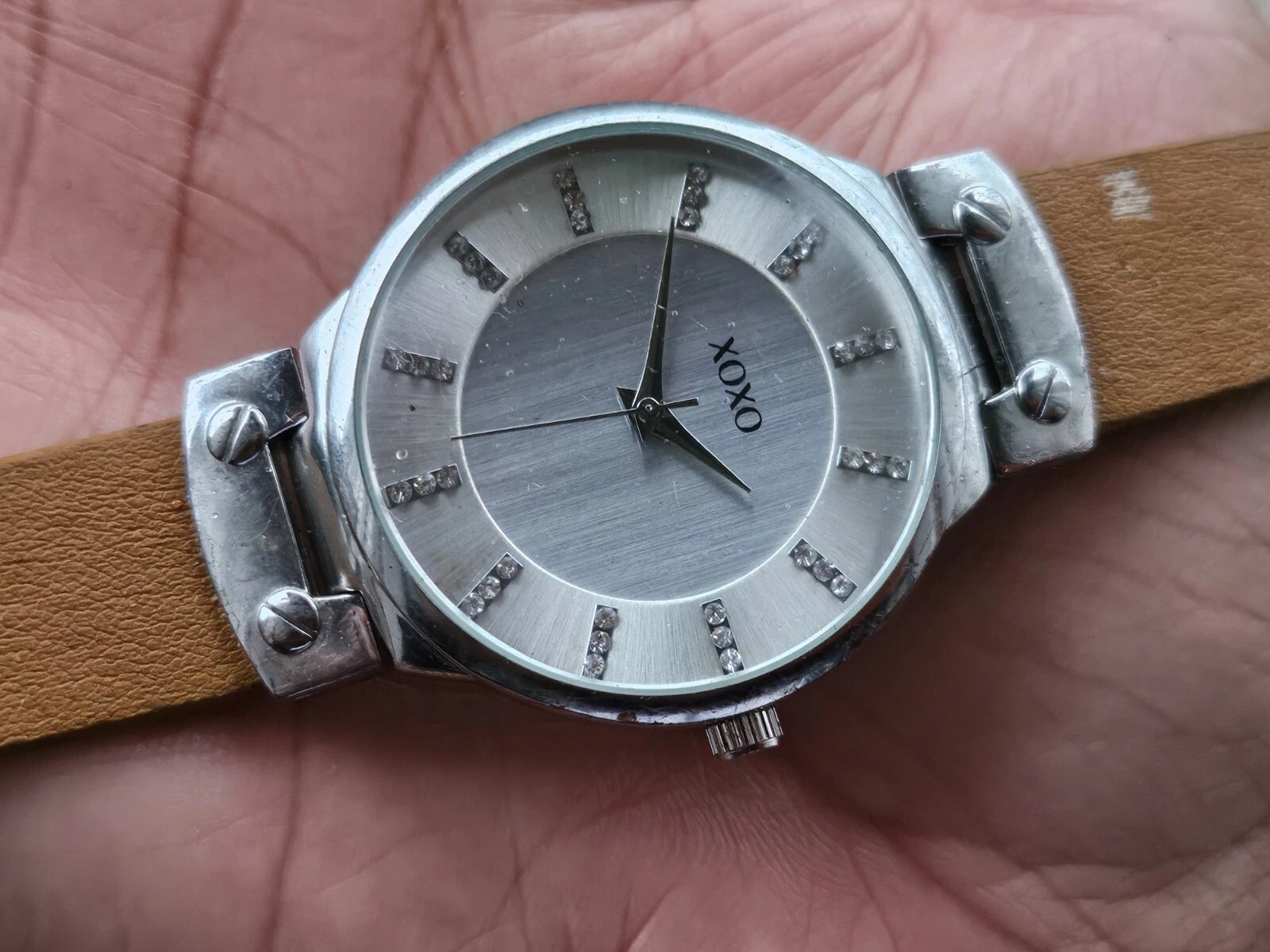 XOXO Wristwatch Tan Faux Leather Strap Silver Tone Case Wrist Watch