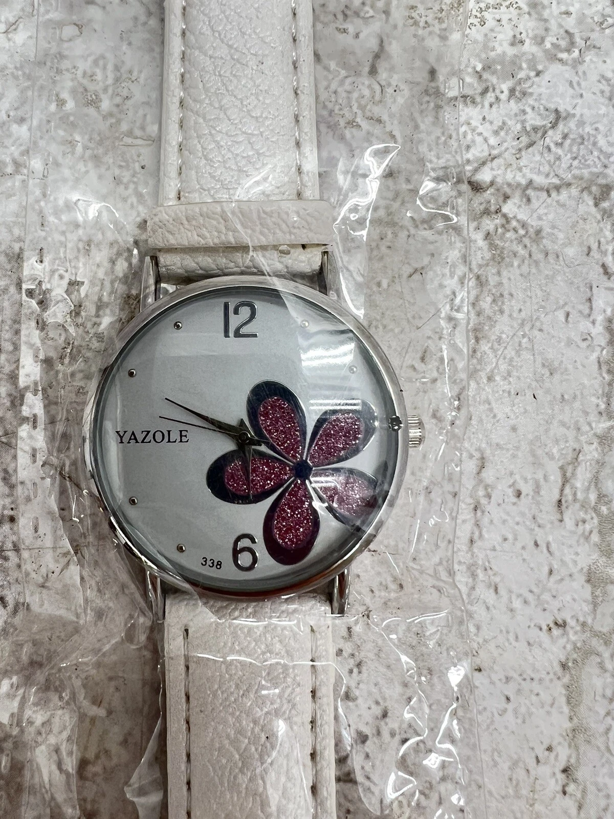 Watch White Flower Face White Faux Leather Strap Yazole Quartz