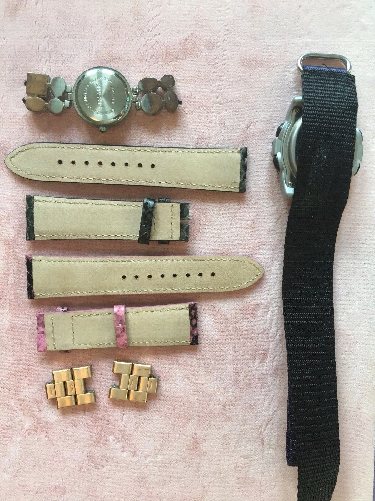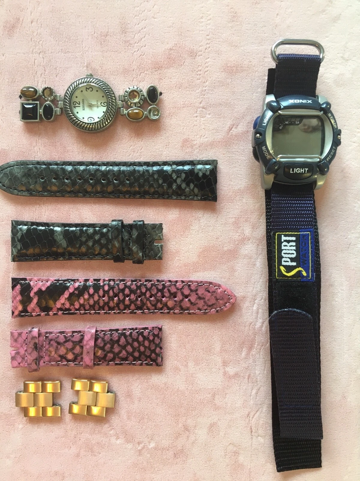 Lot of Watch Pieces for Repair: New Leather Wrist Bands, Kessaris Watch, Xonix