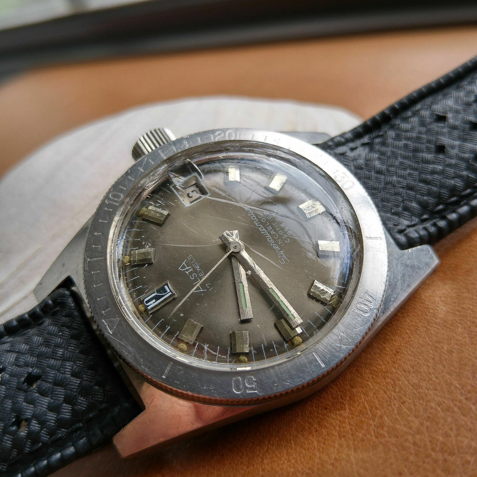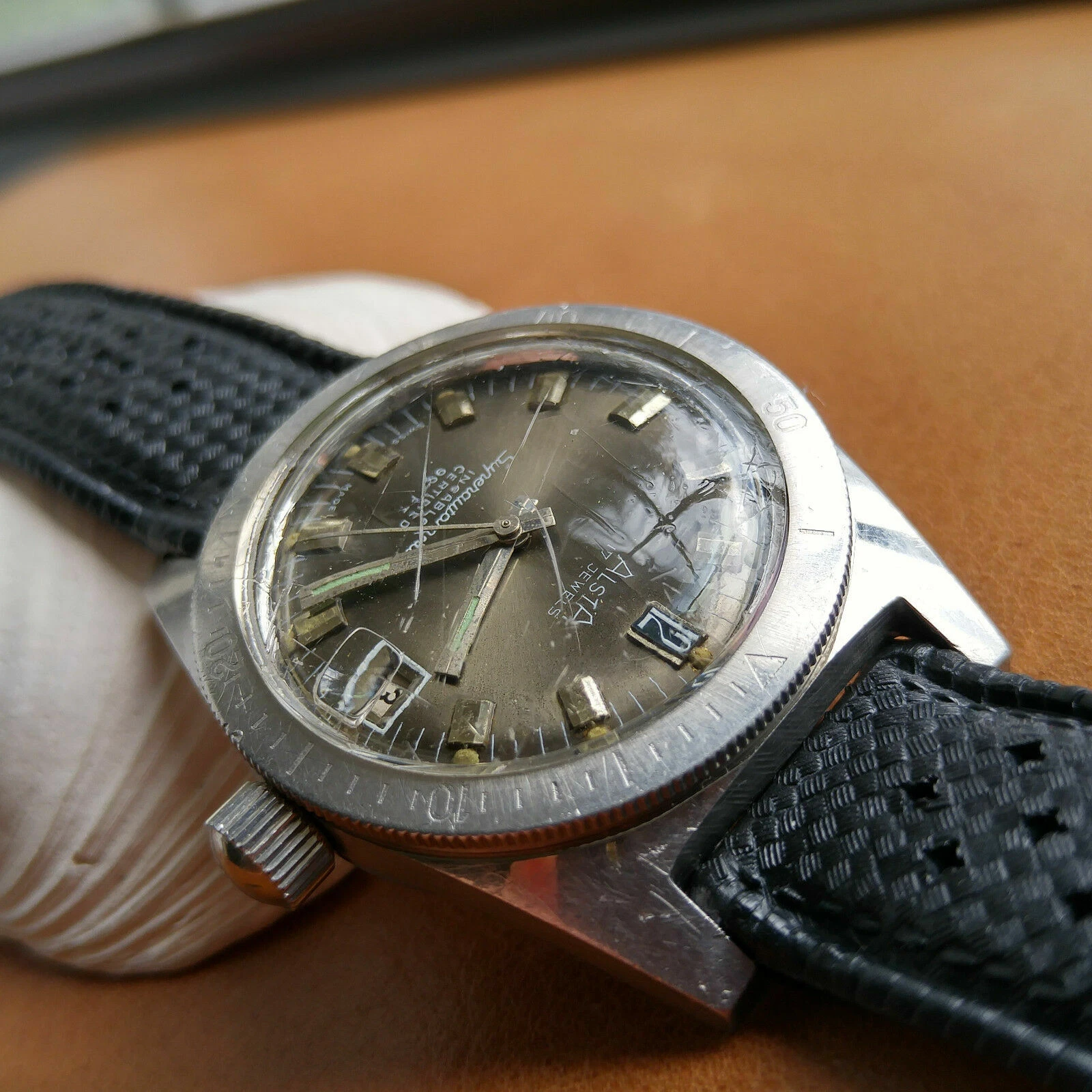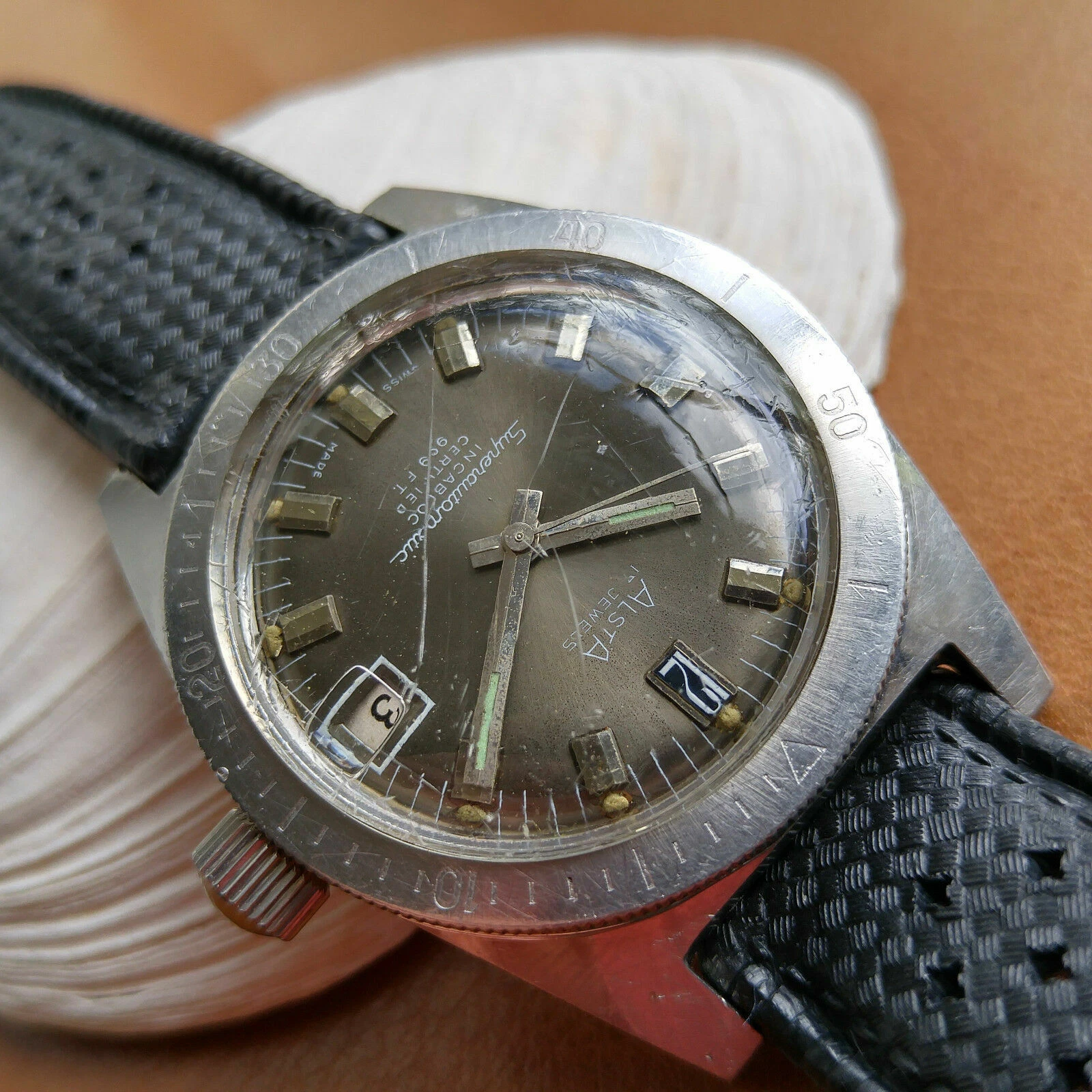 Vintage 1960's Alsta Nautoscaph 30 ATM All SS Diver w/Aged Dial,ETA 2452 Mvmt