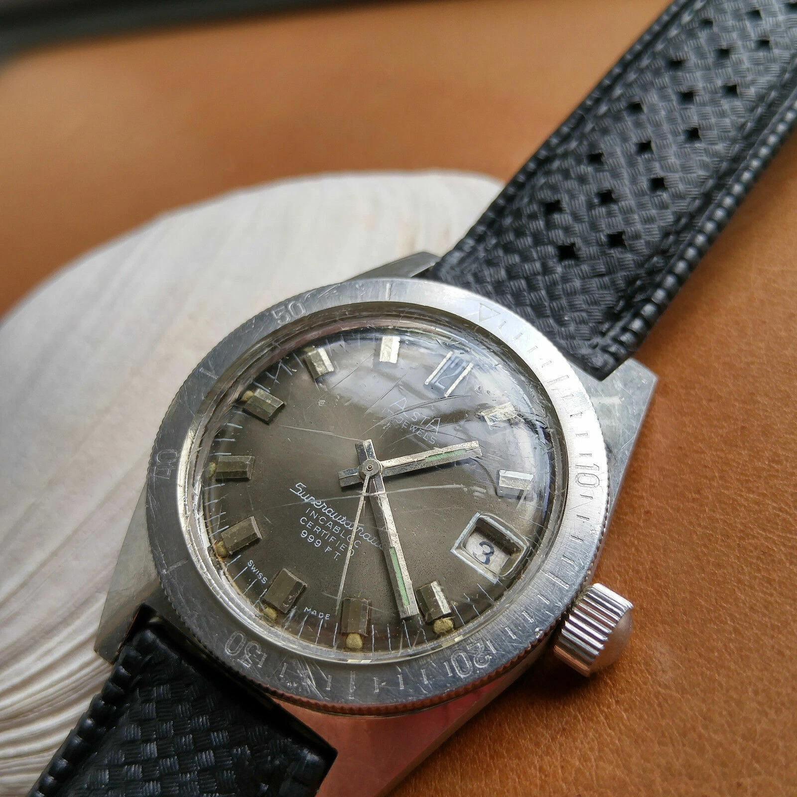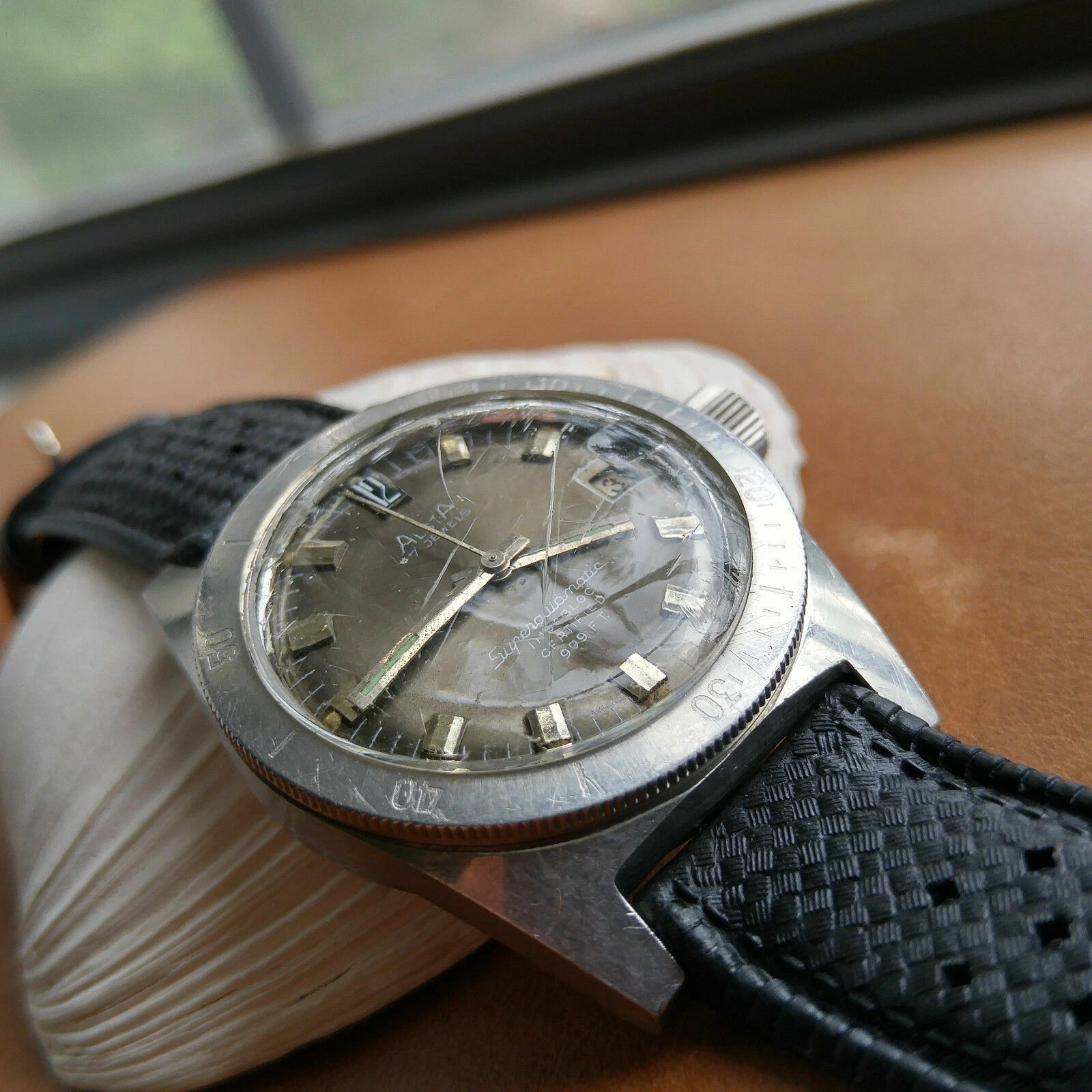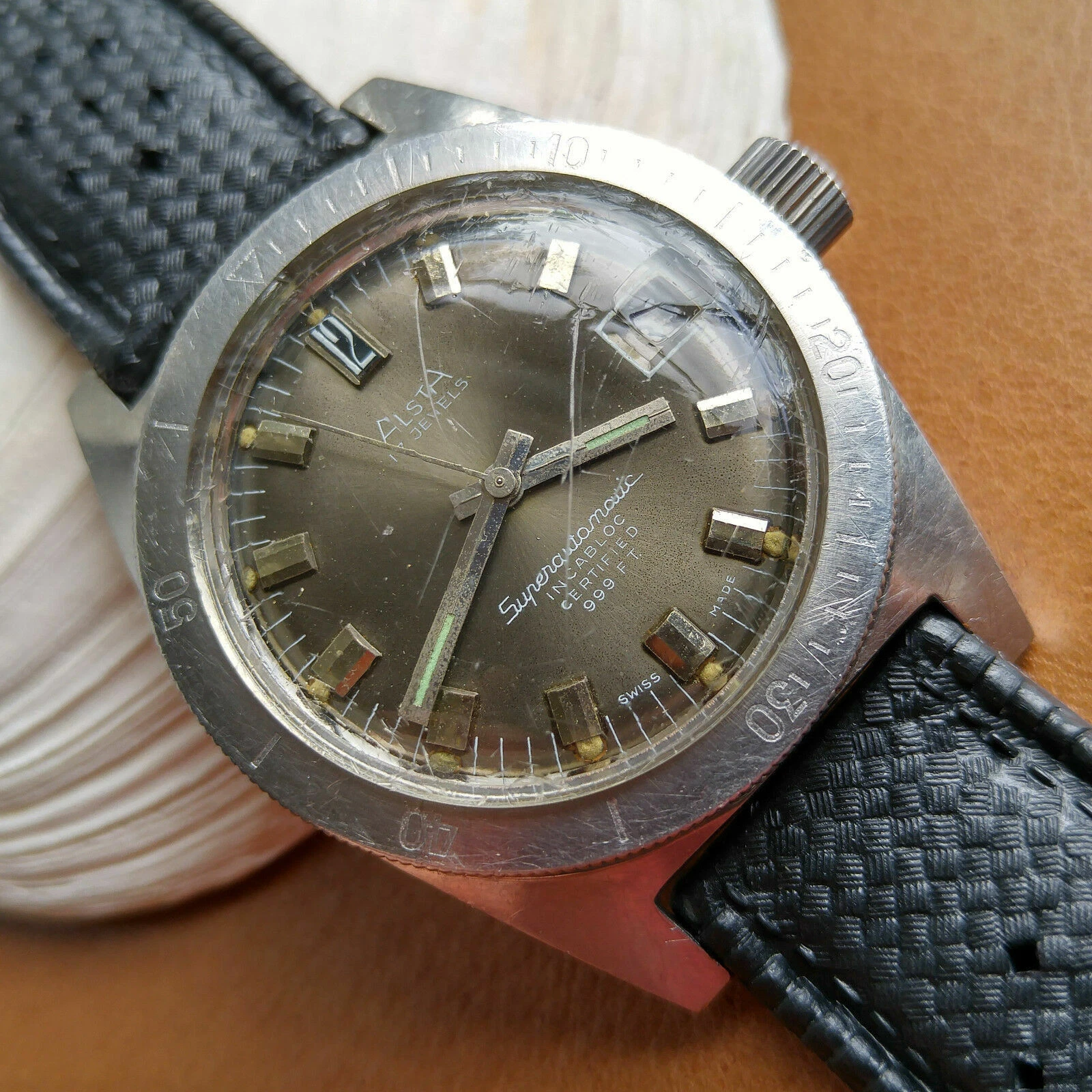 Vintage 1960's Alsta Nautoscaph 30 ATM All SS Diver w/Aged Dial,ETA 2452 Mvmt