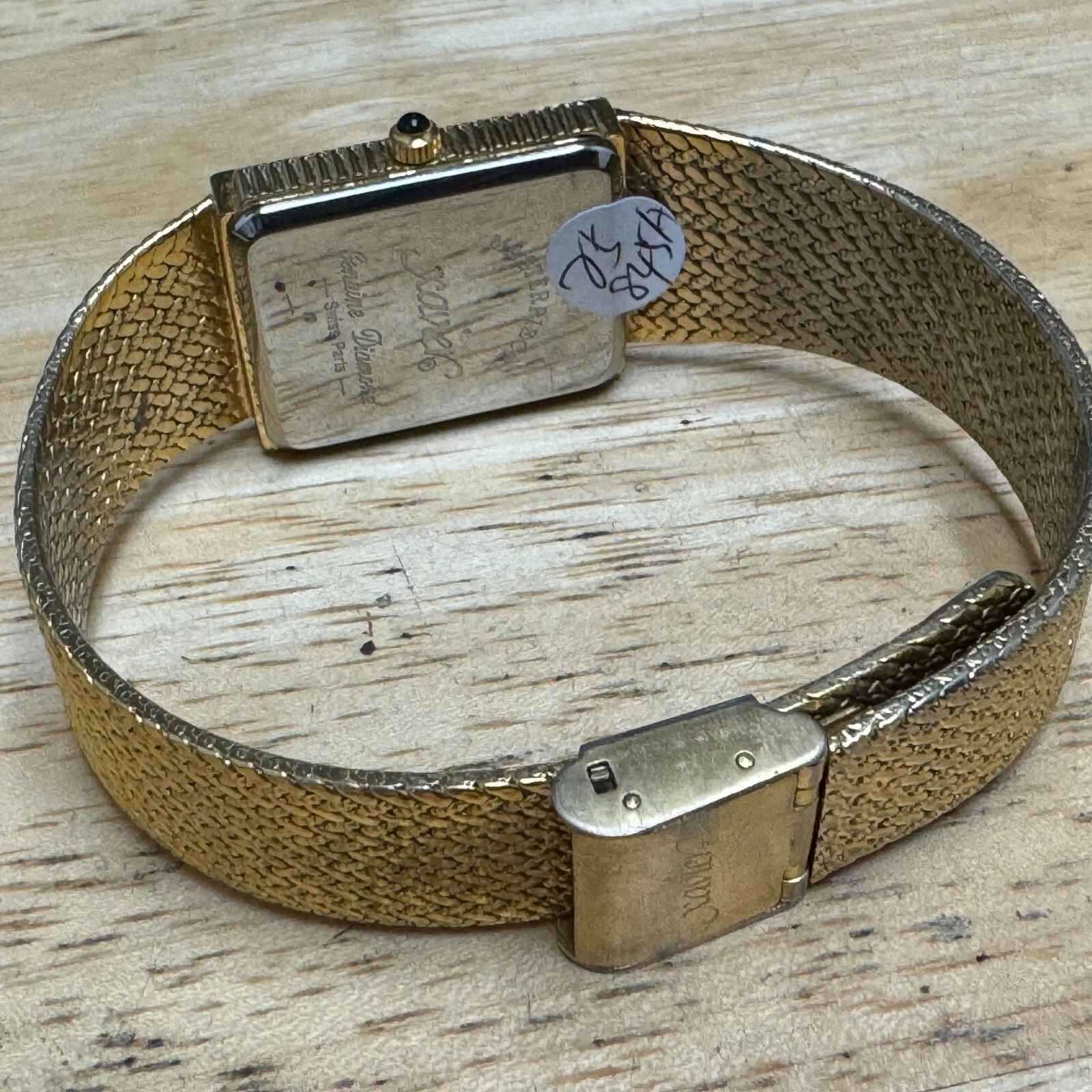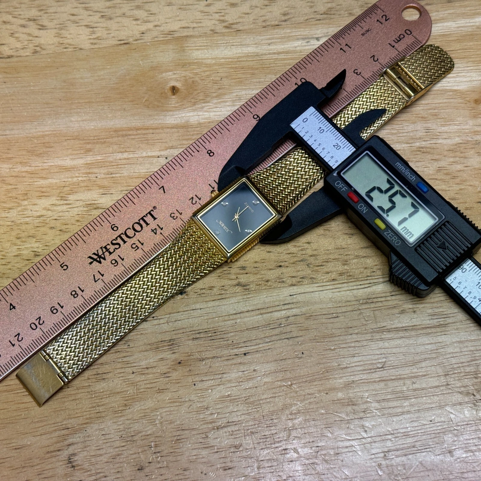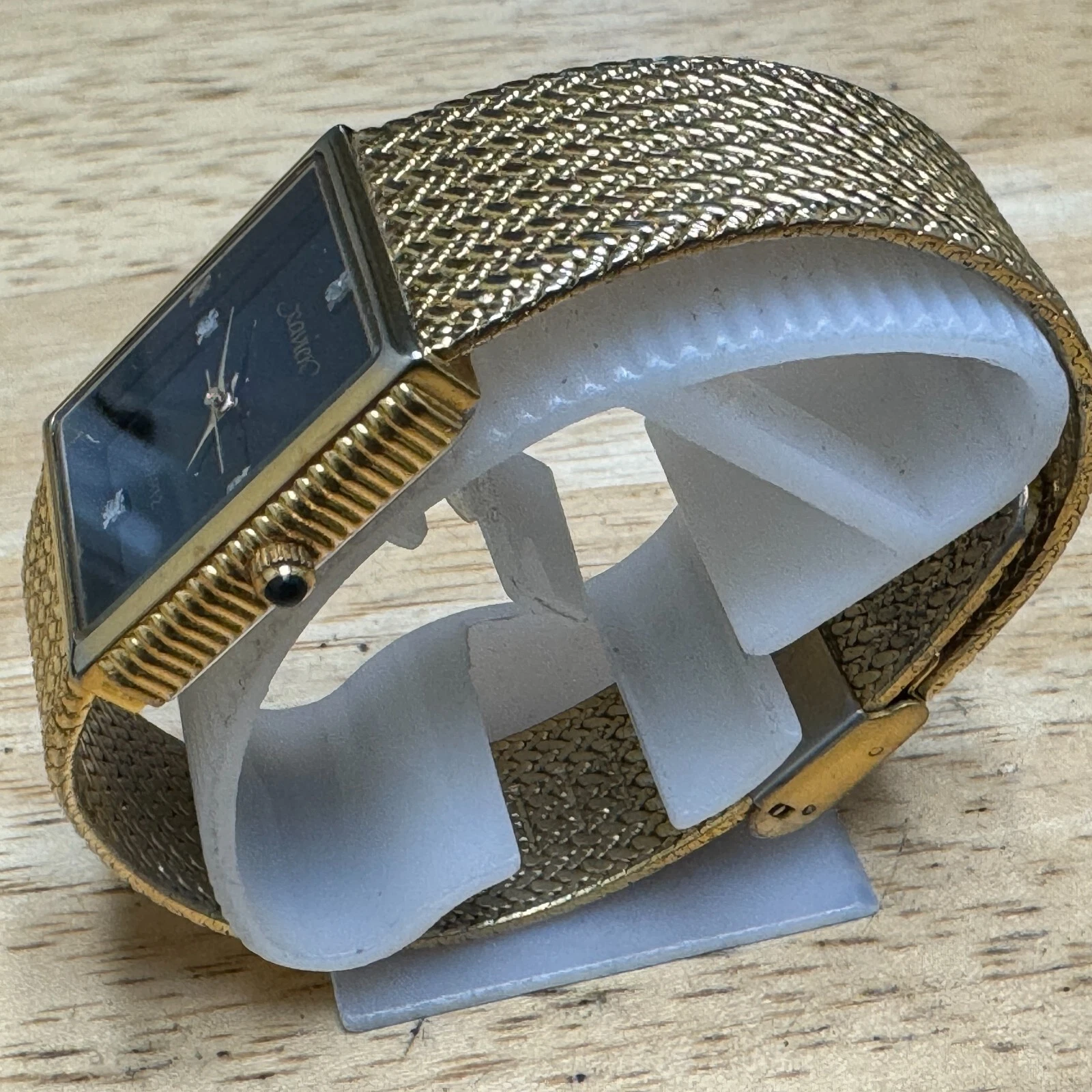 Xavier Quartz Watch Men Swiss Parts Gold Tone Black Rectangle Diamond New Batter