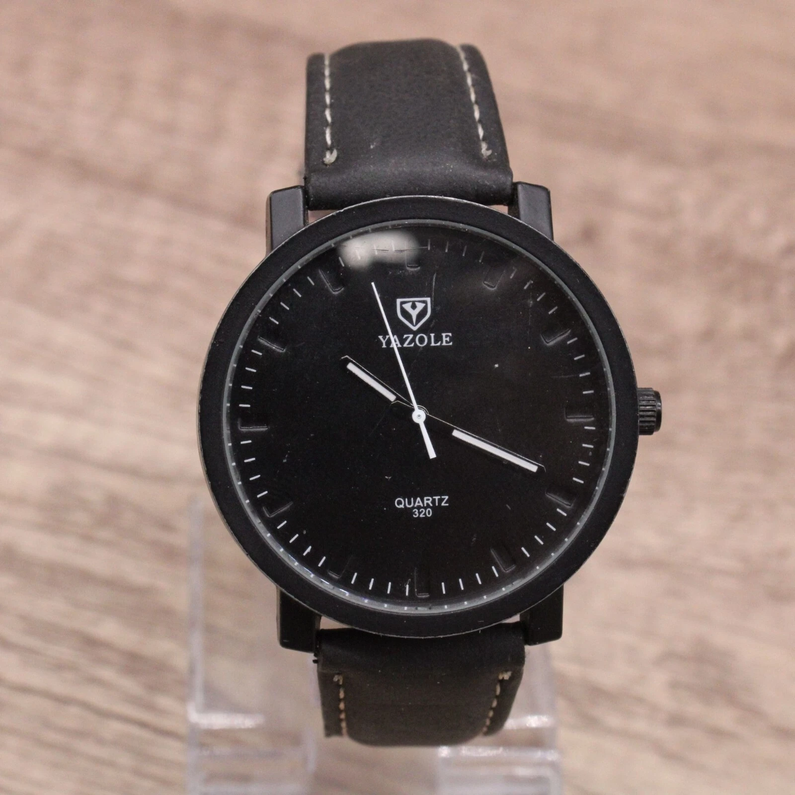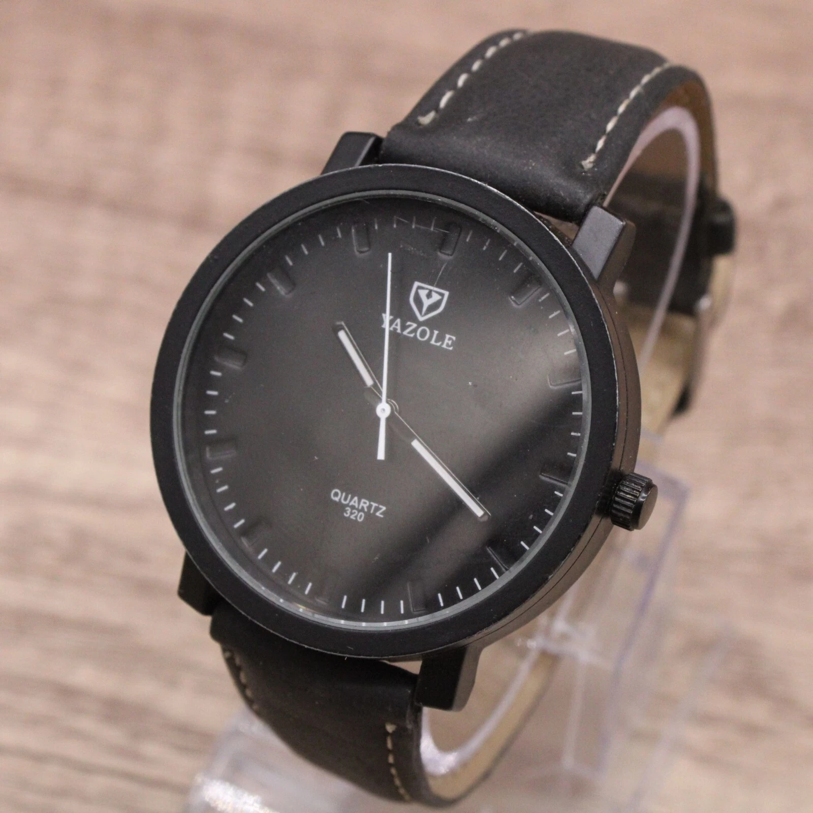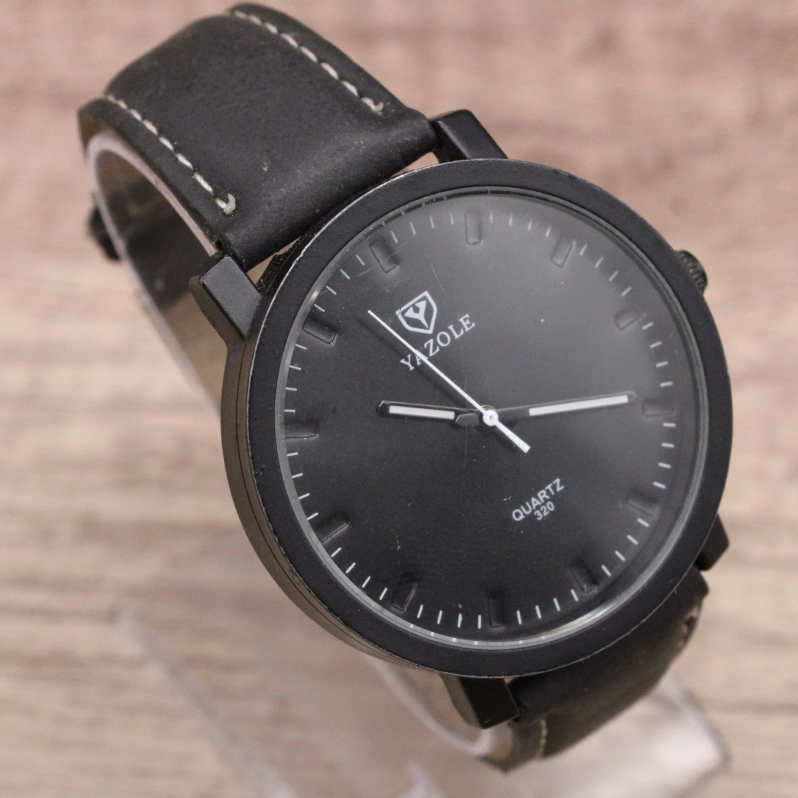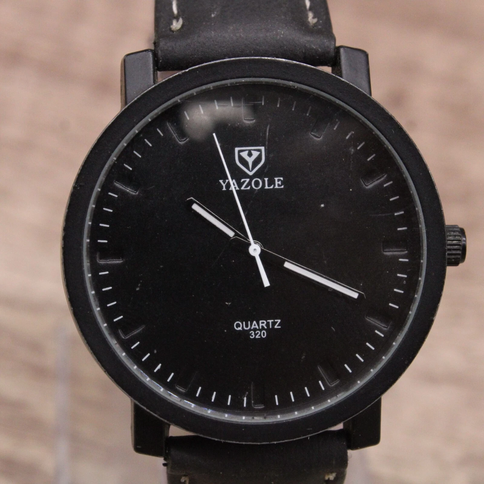 Yazole Watch Mens Black Tone Stainless Steel Quartz Classic Black Leather Band