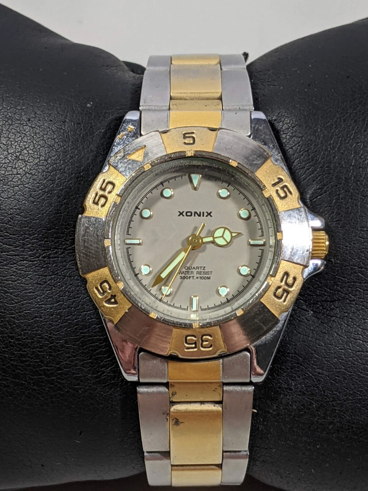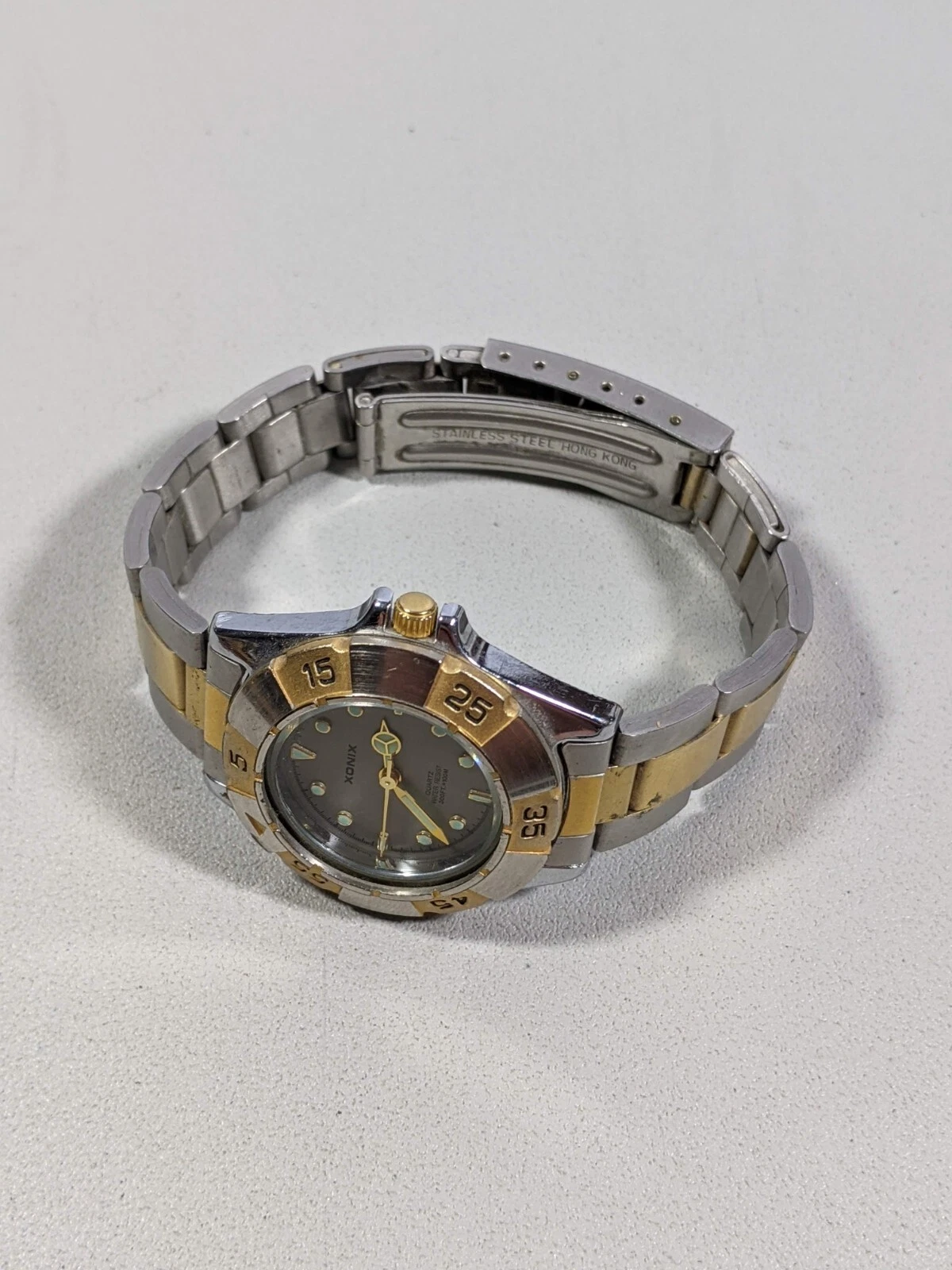 Xonix Gray Dial Rotating Bezel Round Case 29 mm SS Bracelet Band Watch 6 Inch