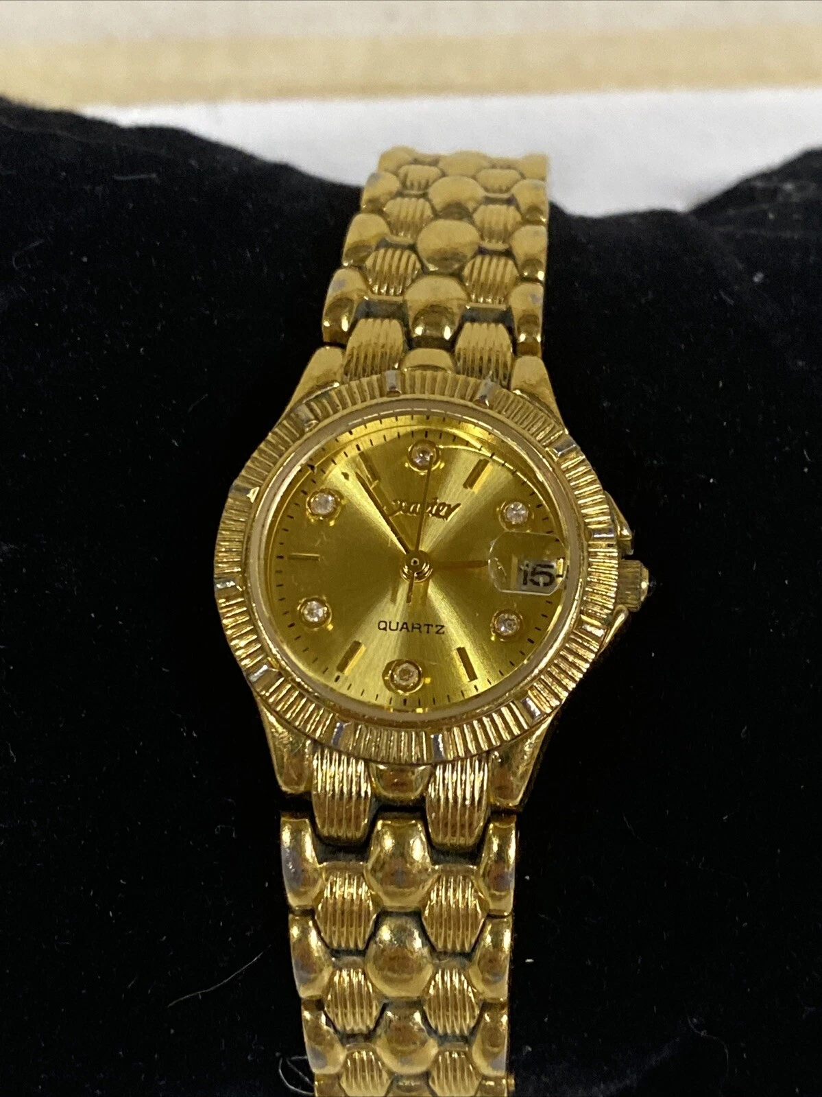 Vintage Xavier Gold Tone Watch Dial 25mm Max Wrist 7" New Battery