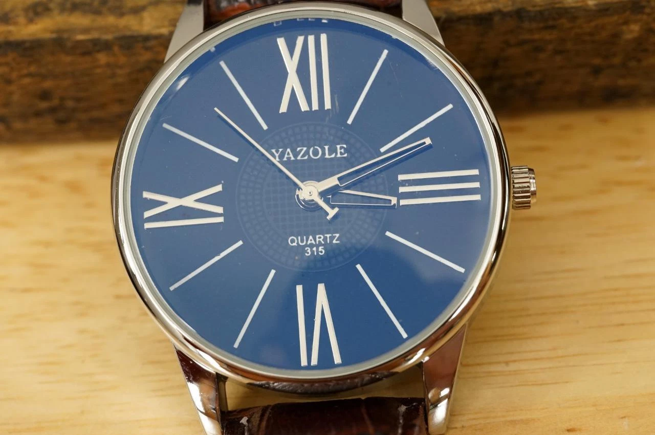 MODERN Costume Jewelry YAZOLE Quartz Watch Blue Face Mock Croc Brown Band