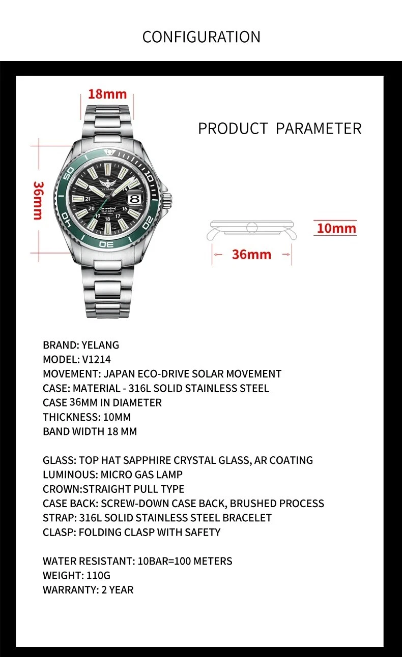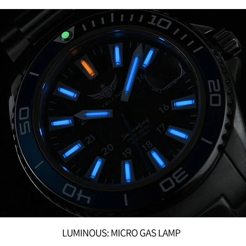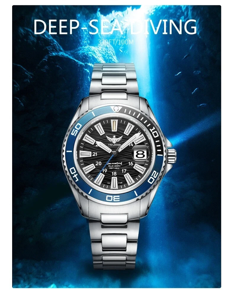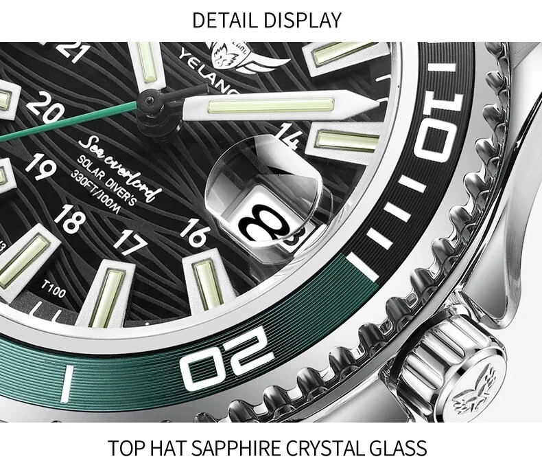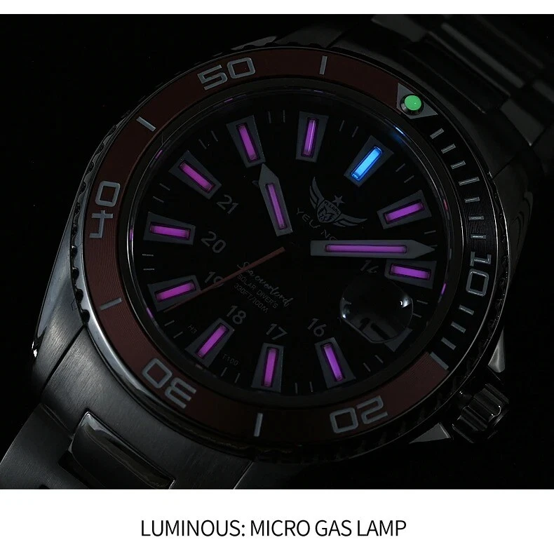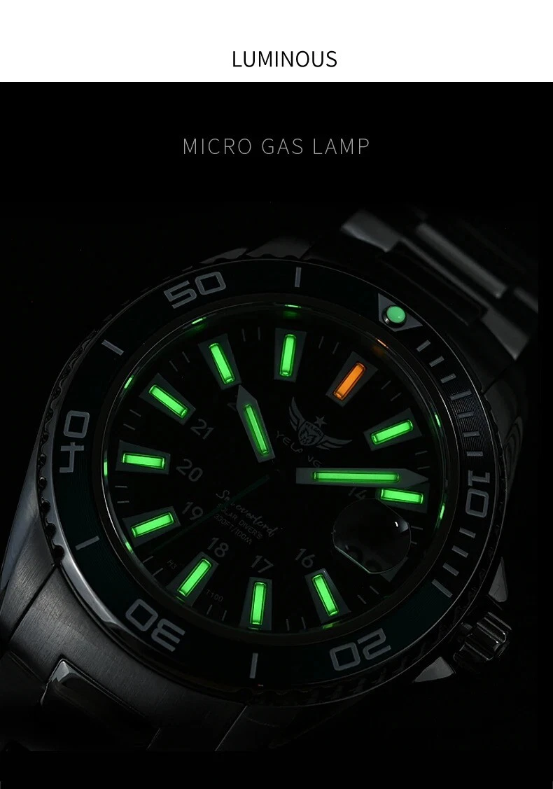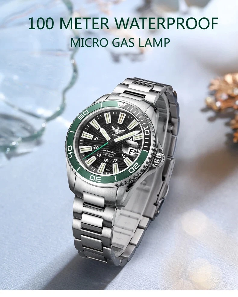 Yelang Women Solar Power Watch Japan Mov't Quartz WR100M Military Date Sapphire