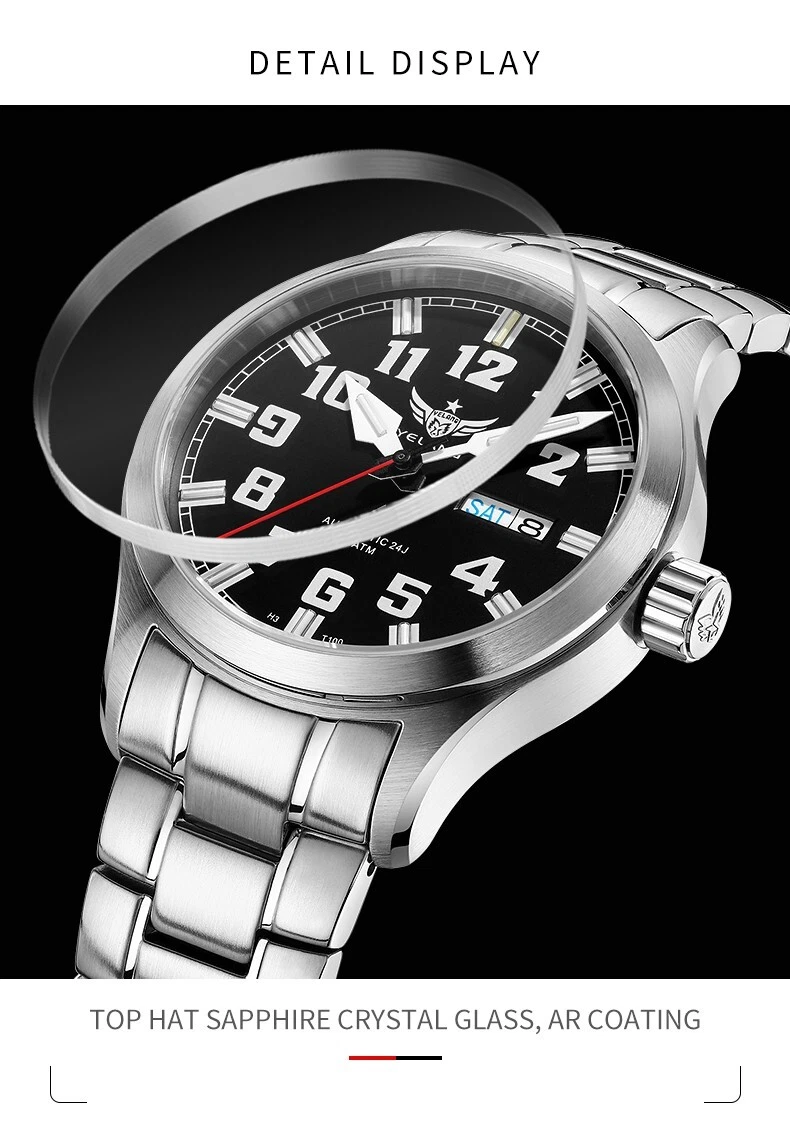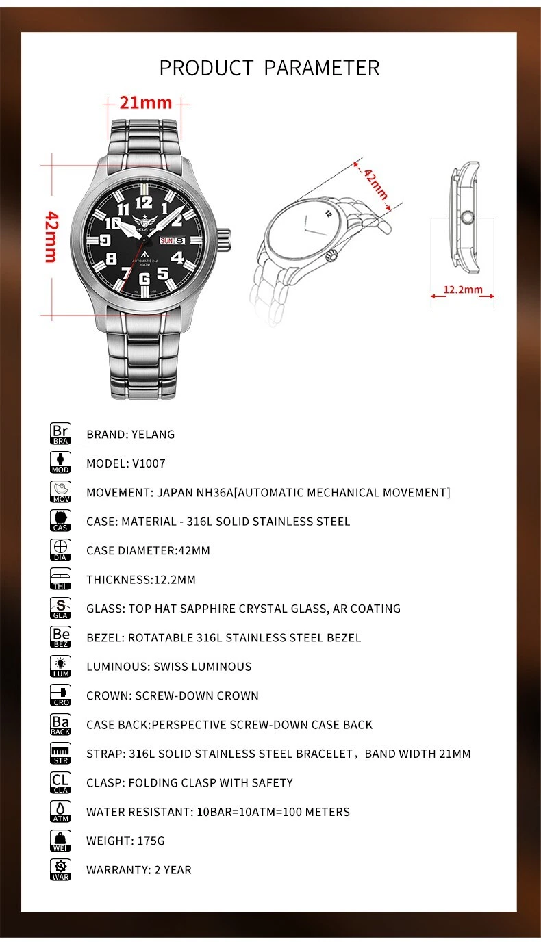 YELANG Men Diver Watch 42mm Pilot Automatic Wristwatch Luminous 10ATM NH36 Sport