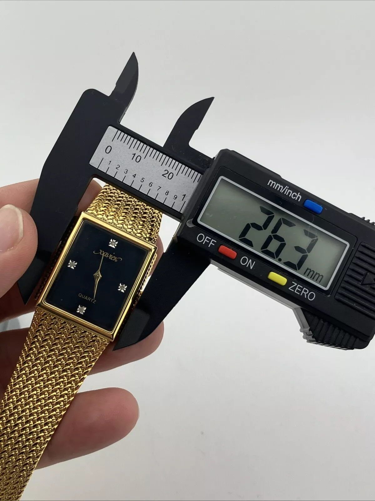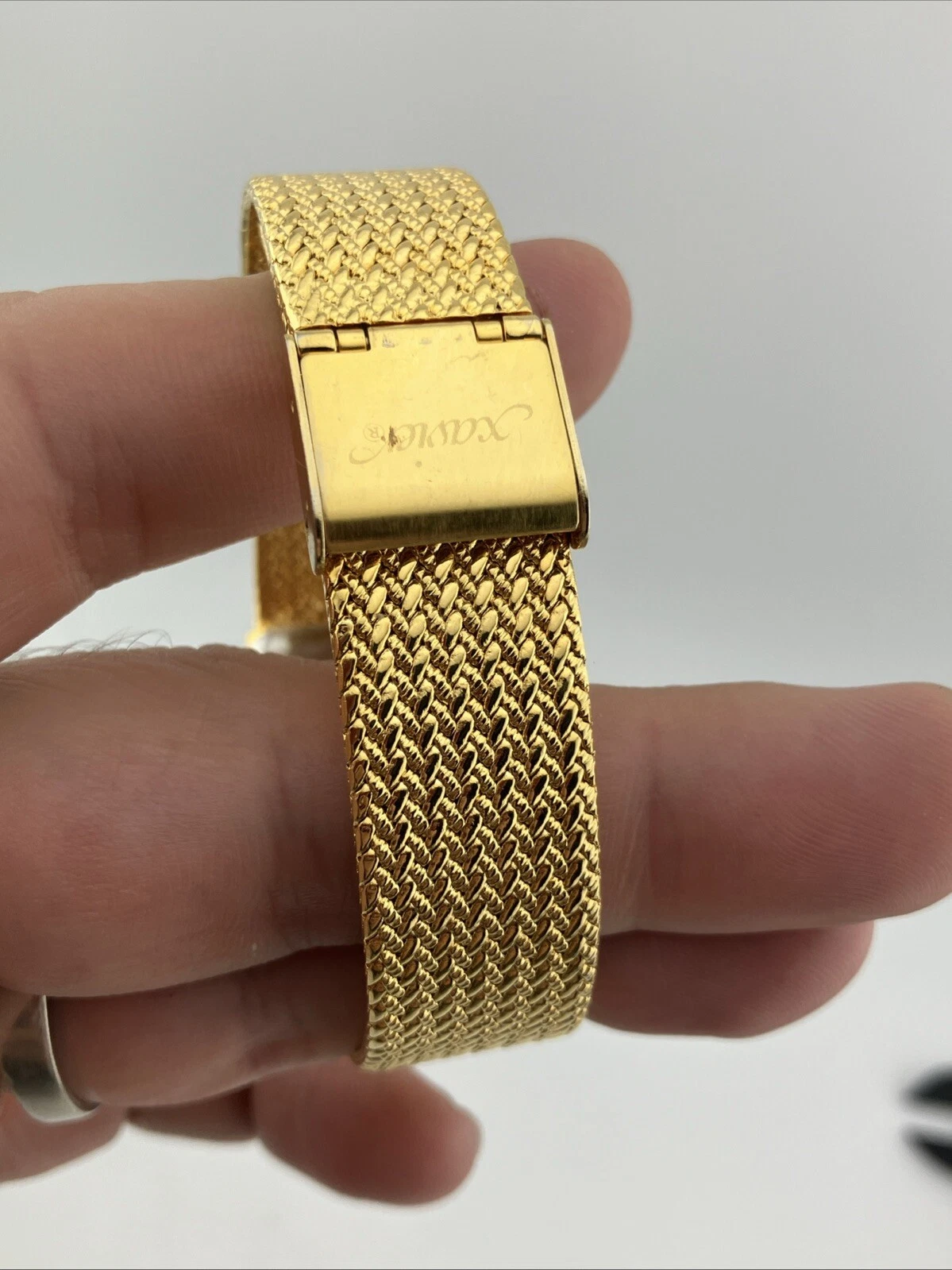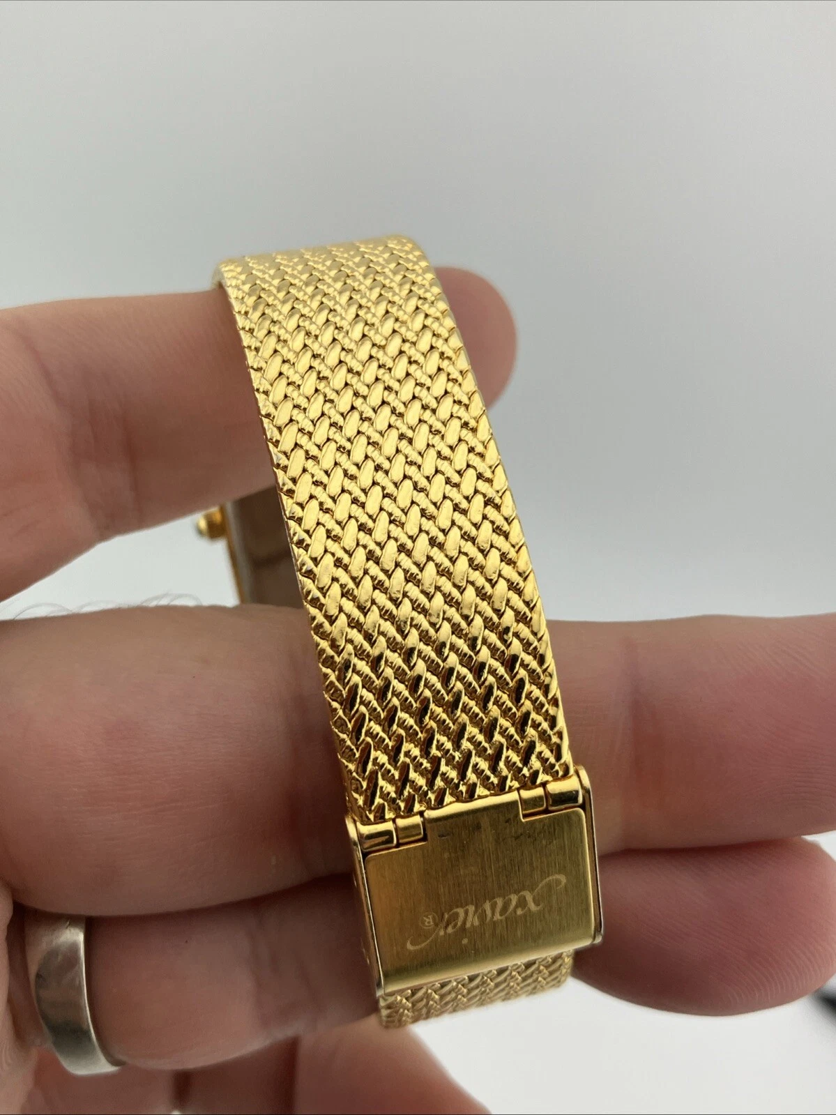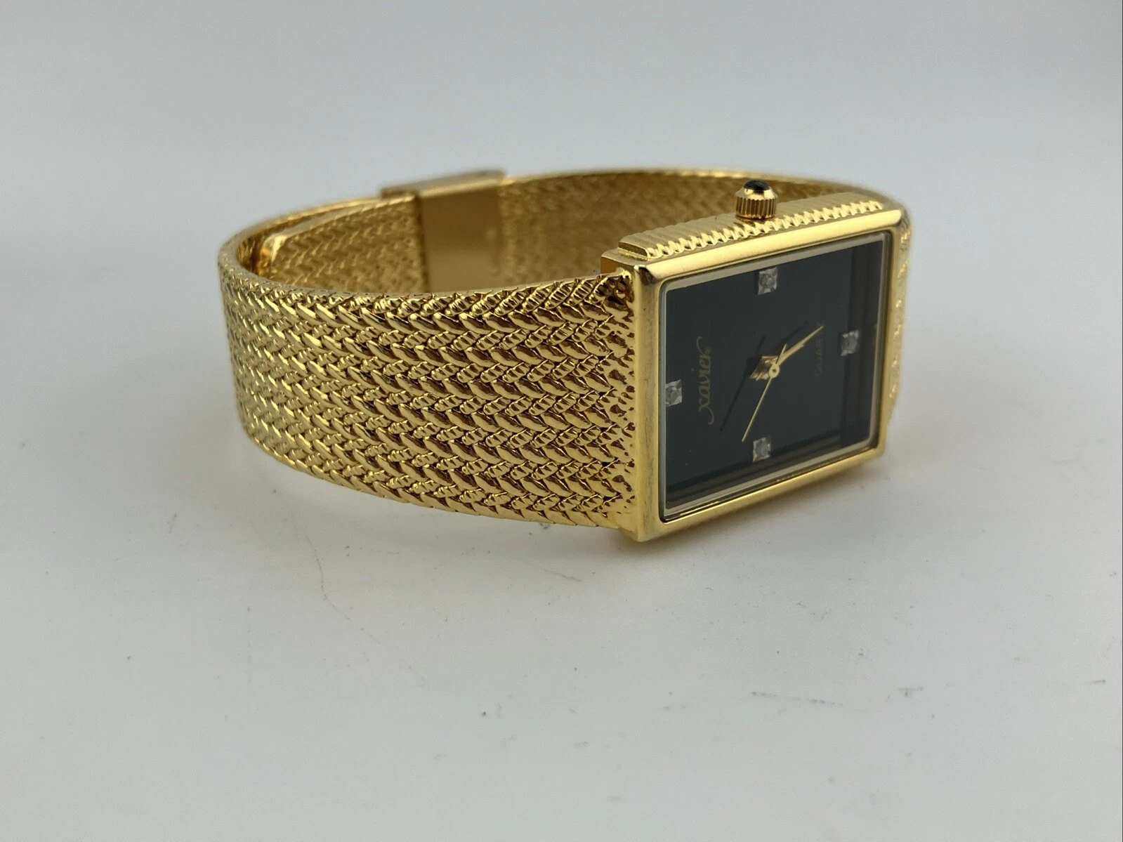Vtg Xavier Ladies 26mm Watch Gold Tone Black Tank Dial Genuine Diamonds - RUNS