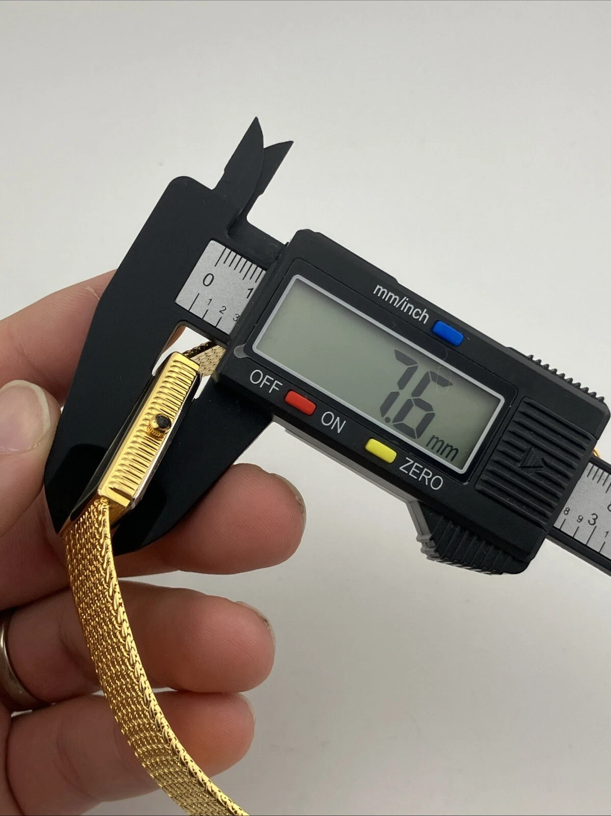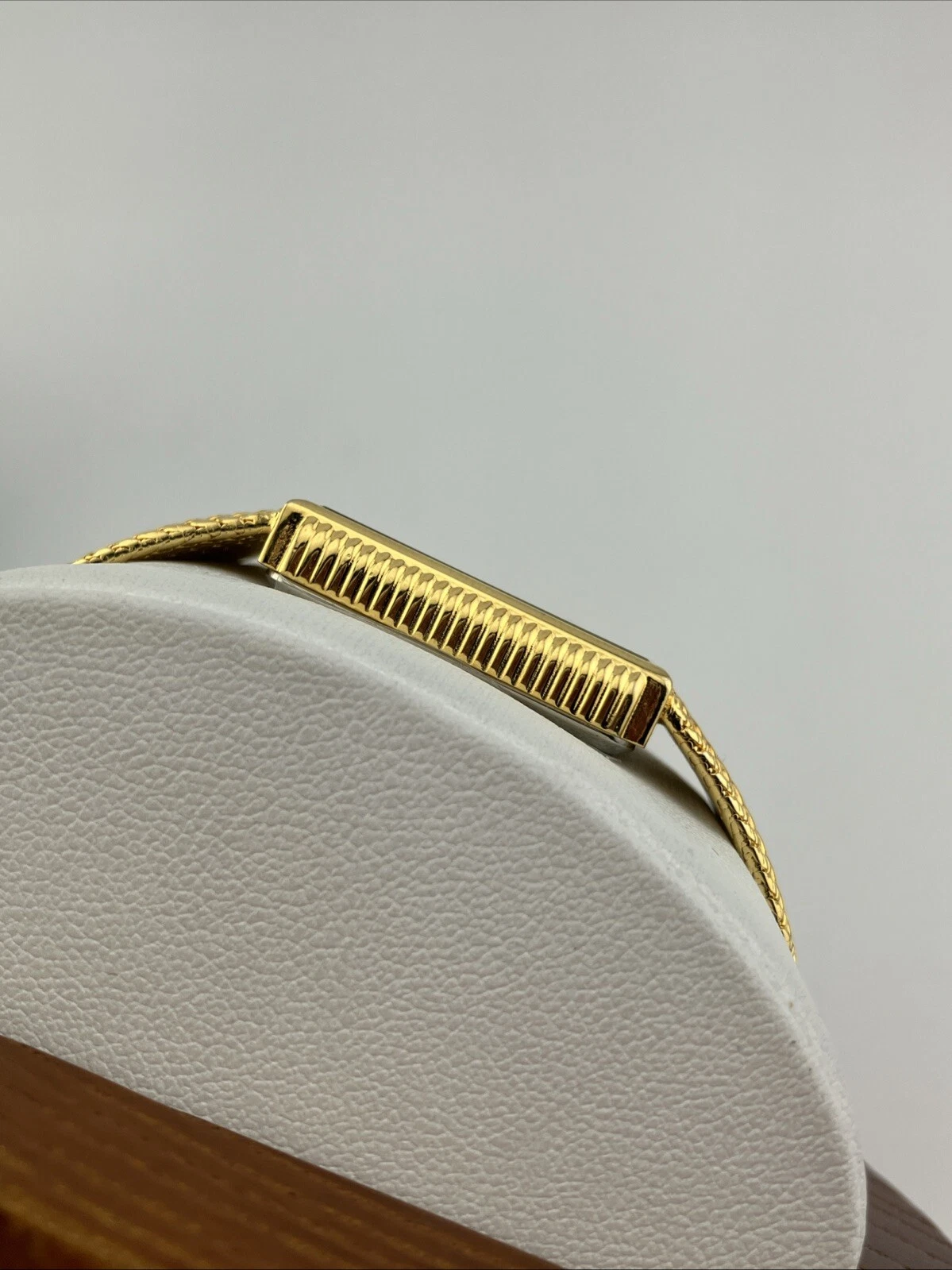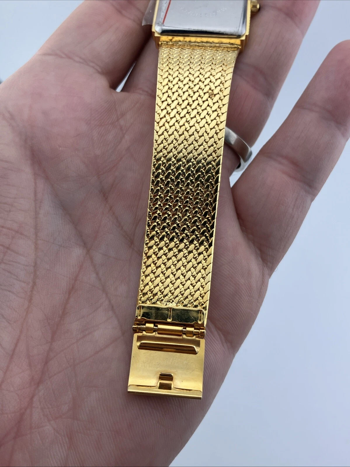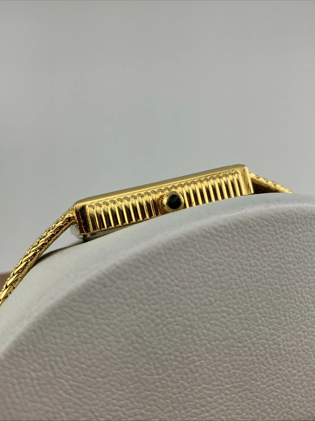 Vtg Xavier Ladies 26mm Watch Gold Tone Black Tank Dial Genuine Diamonds - RUNS