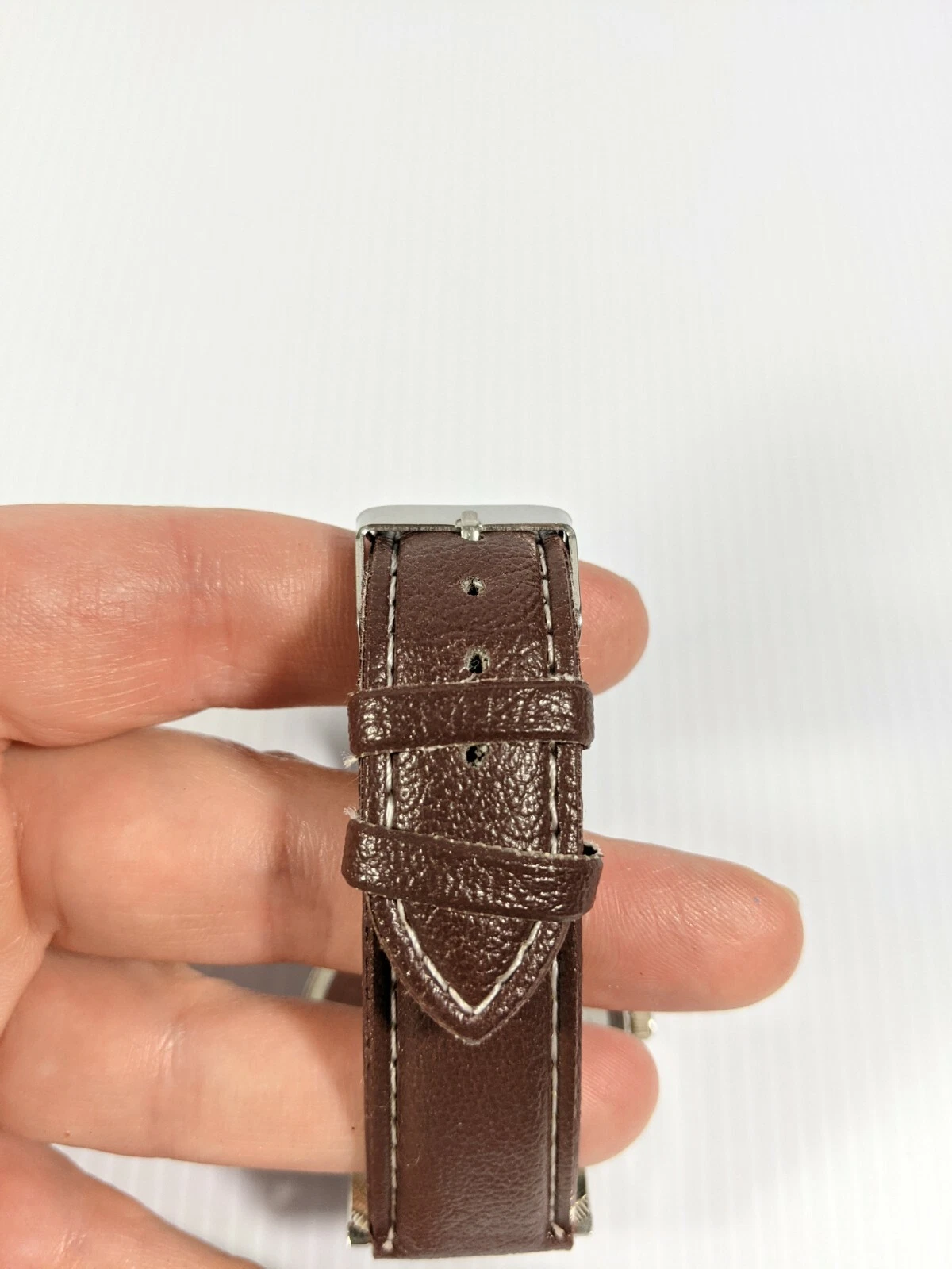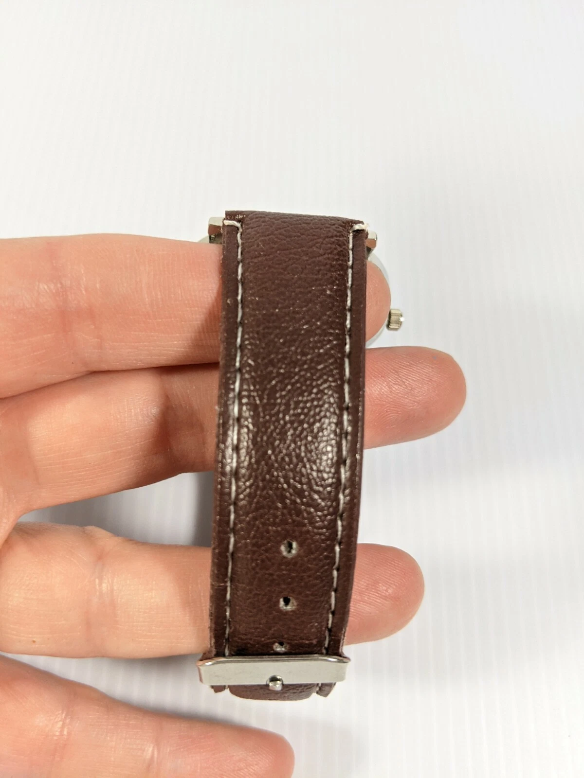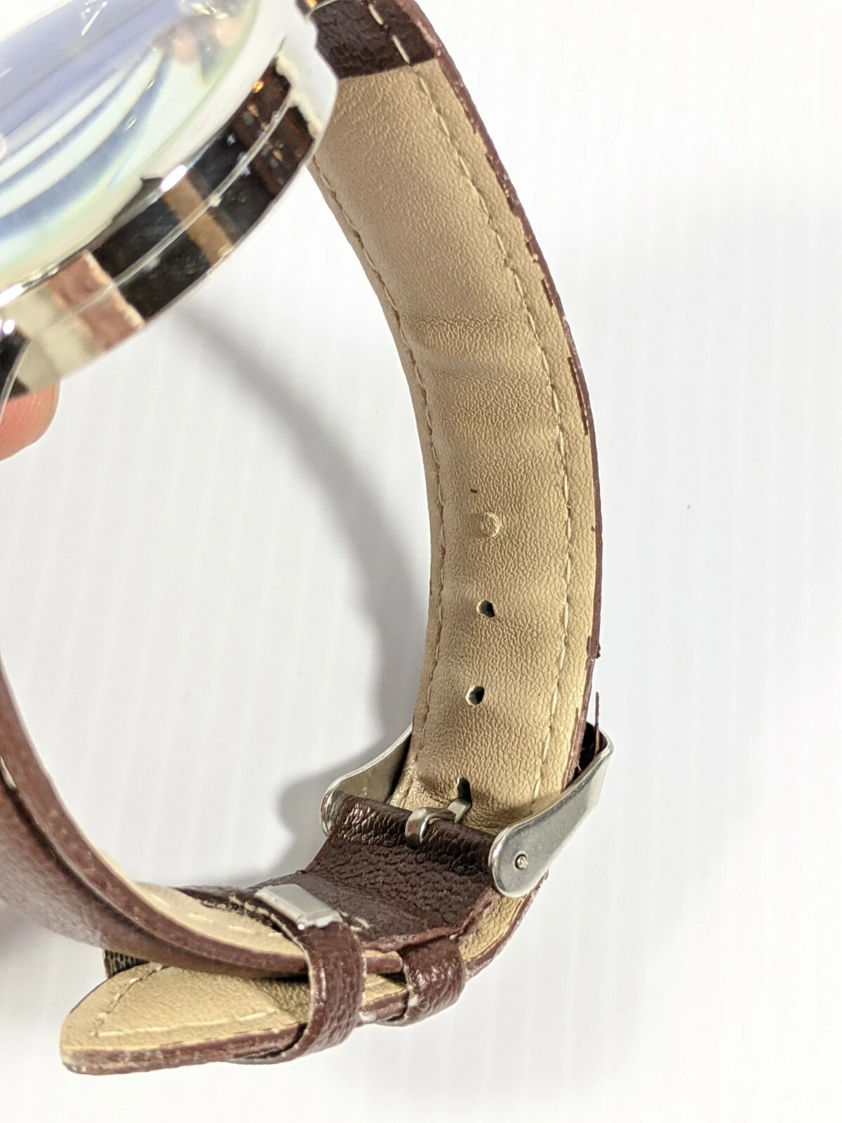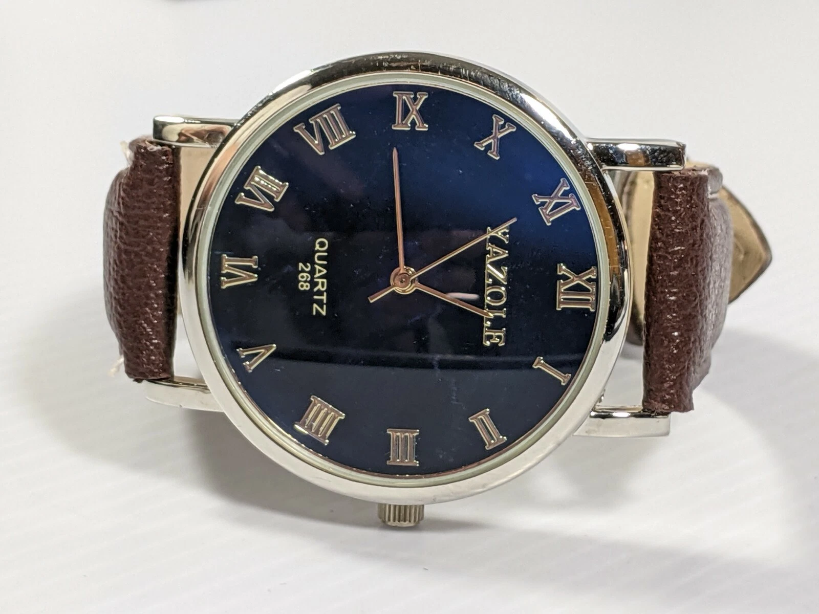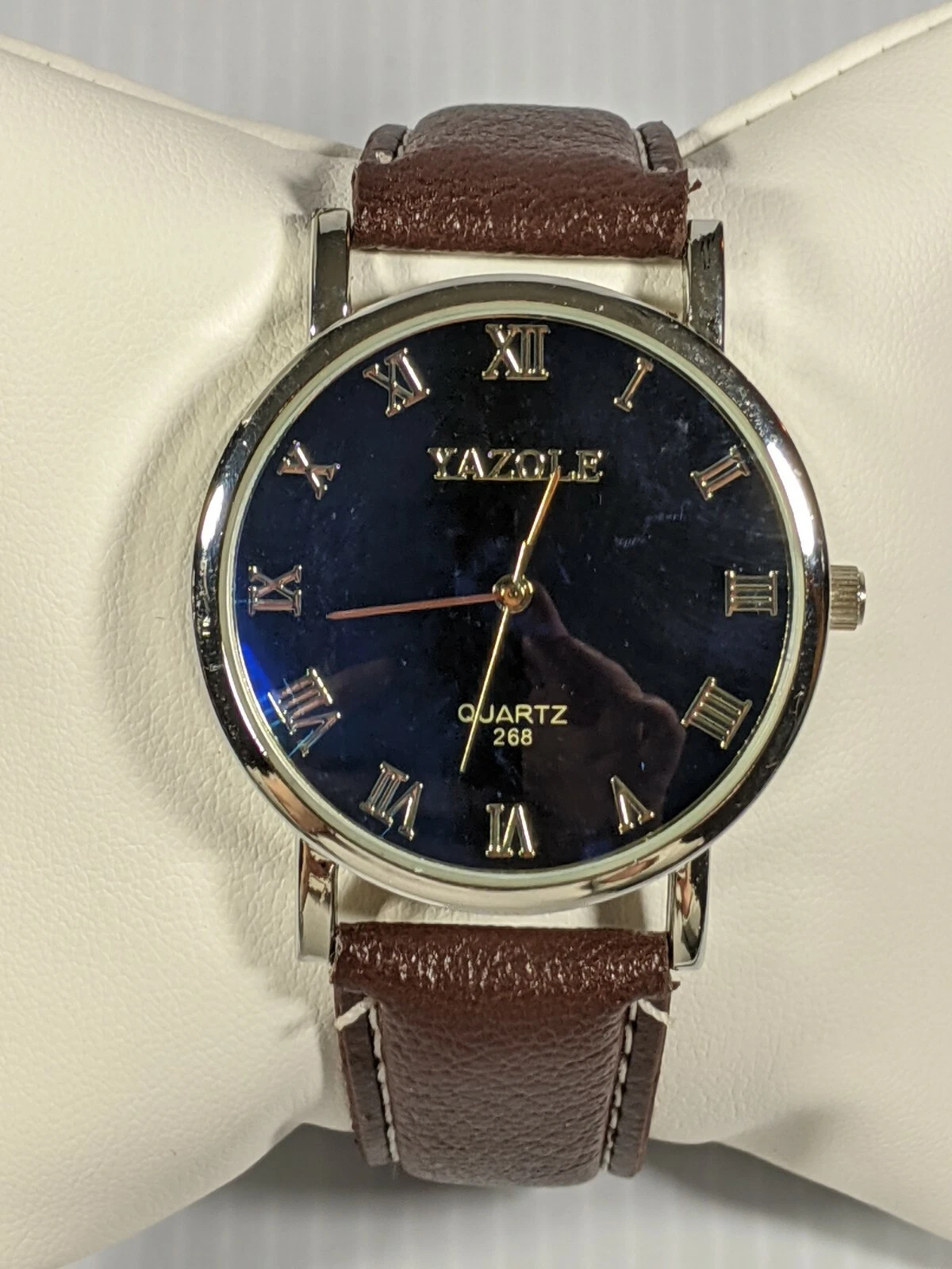Yazole Silver Tone Blue Pearlized Brown Faux Leather Band Watch