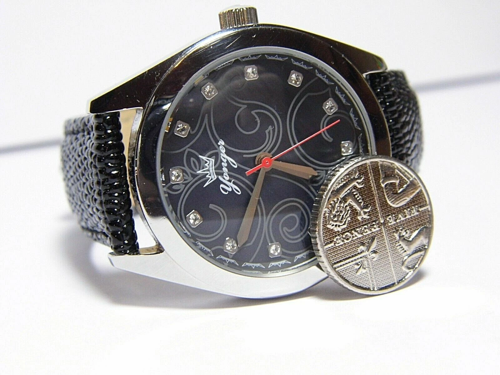 YONGER & BRESSON DSC1493 'POUR ELLE' S/STEEL QUARTZ MVMT WATCH BLACK M.O.P.FACE