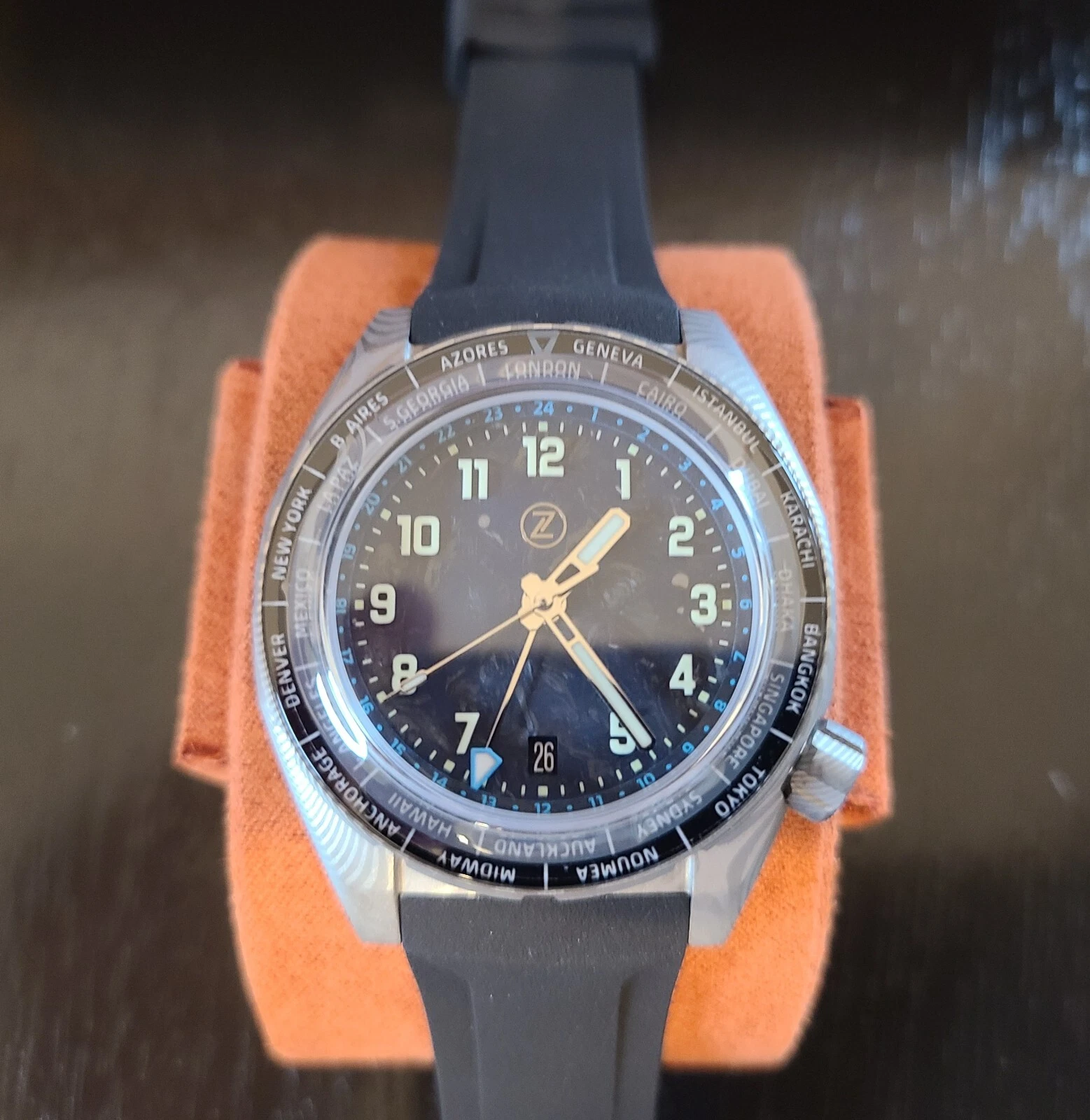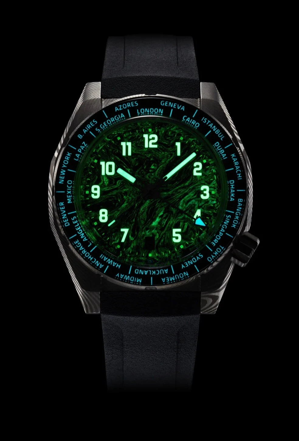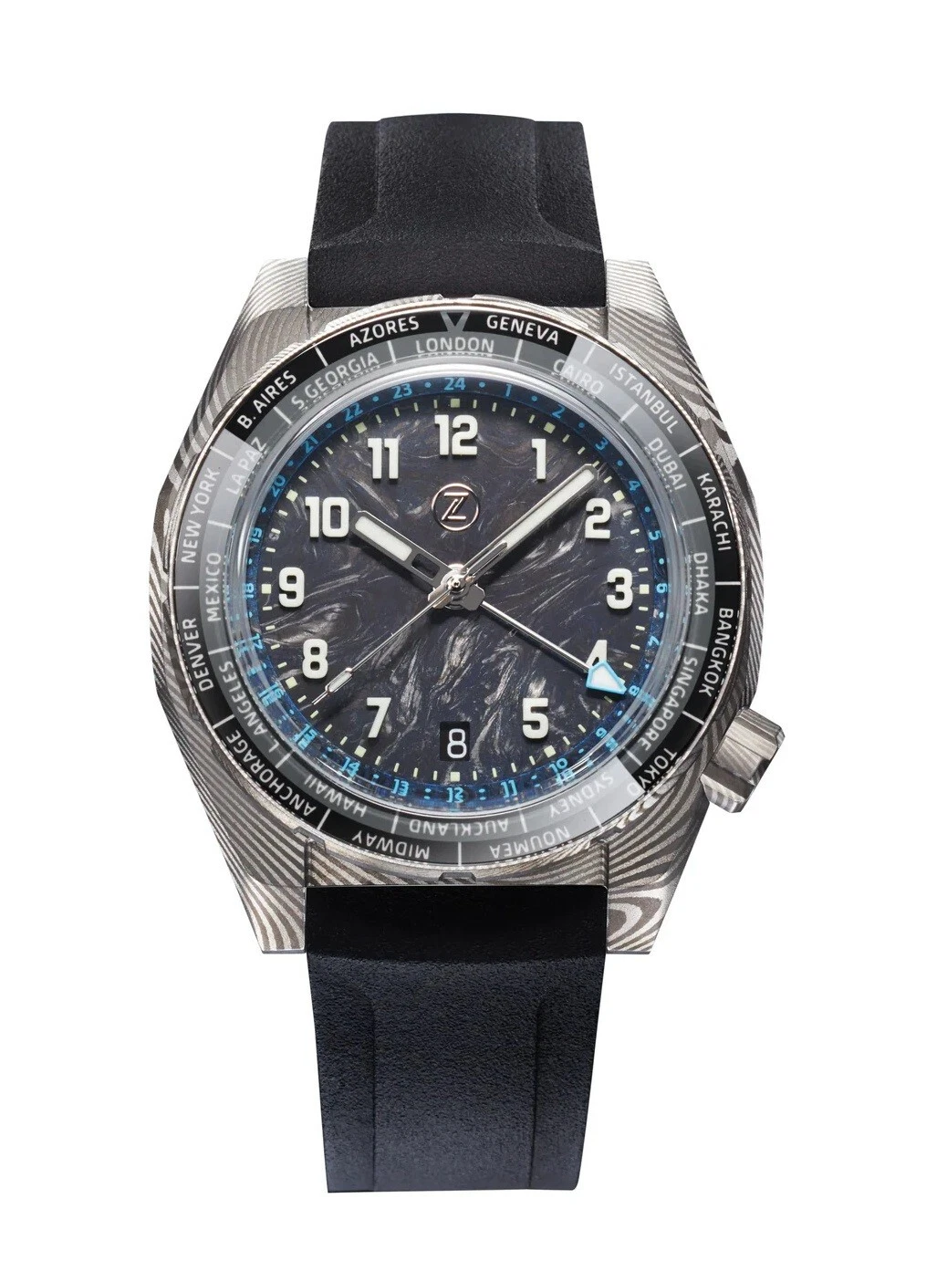 **** ZELOS THRESHER DAMASCUS LIMITED EDITION LUMED CARBON DIAL WATCH (NEW) ****