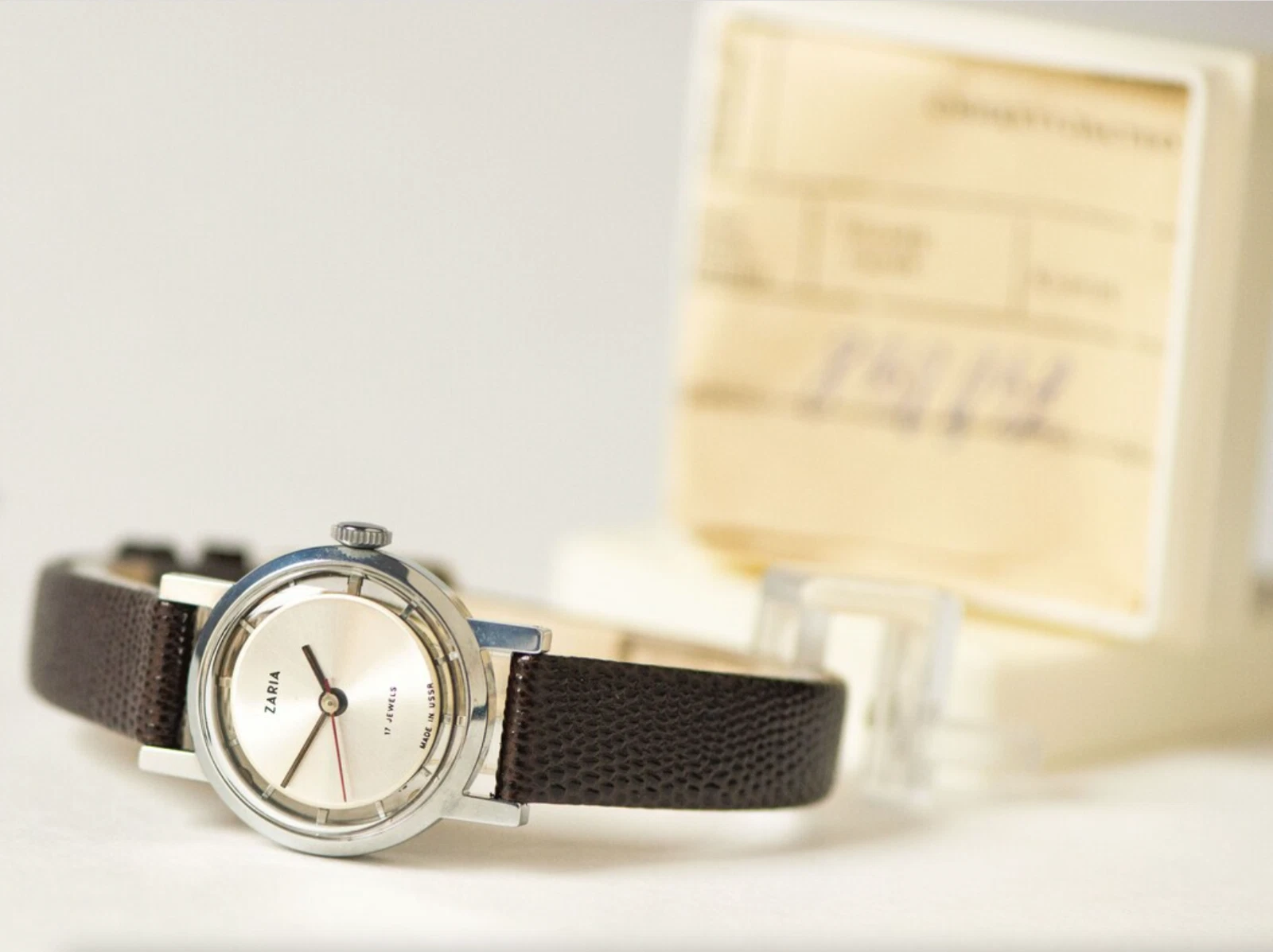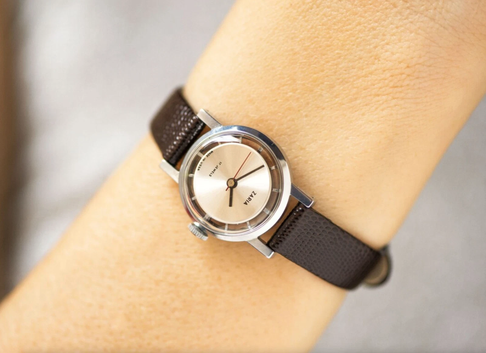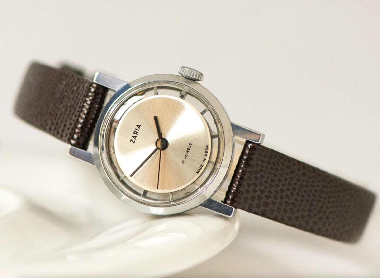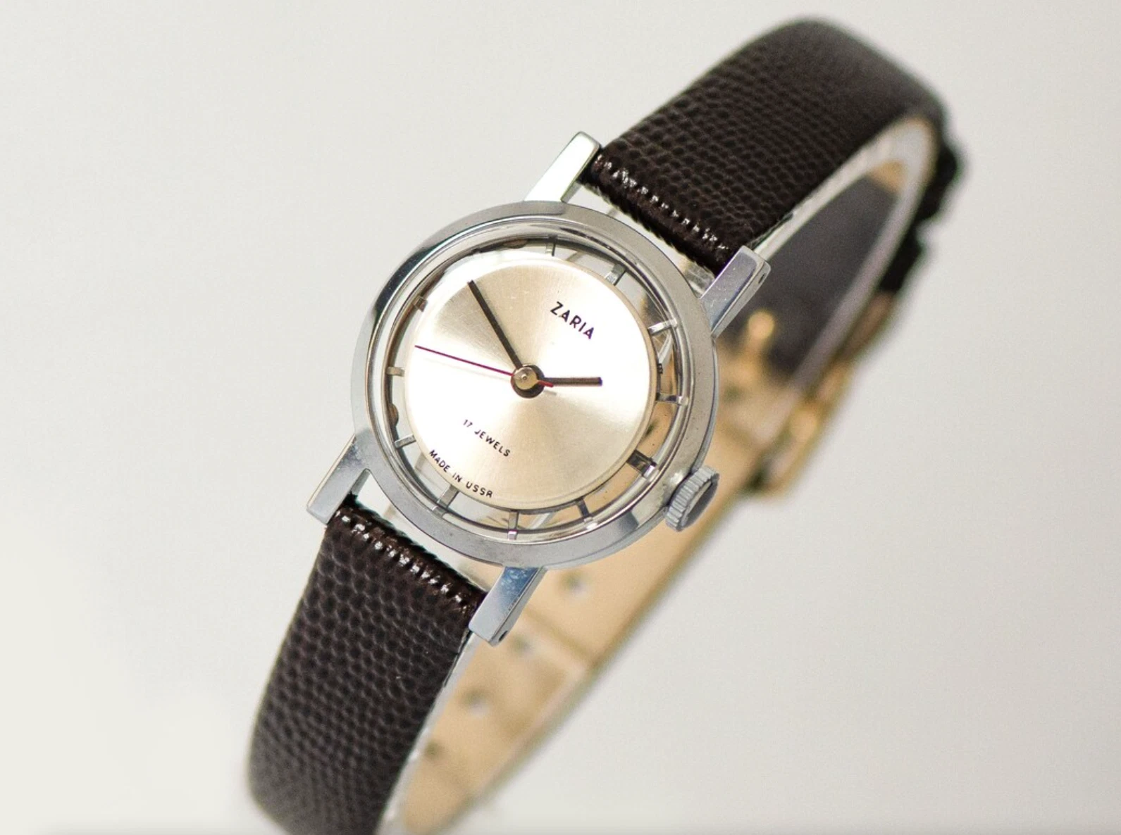Unused skeleton watch for women ZARIA vintage silver shade luxury leather strap
