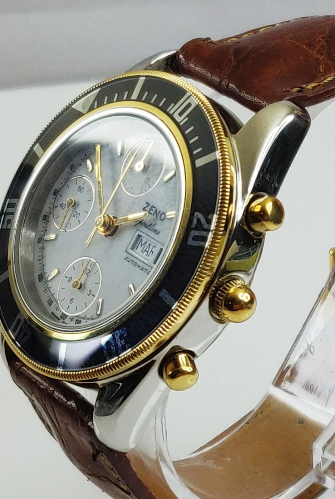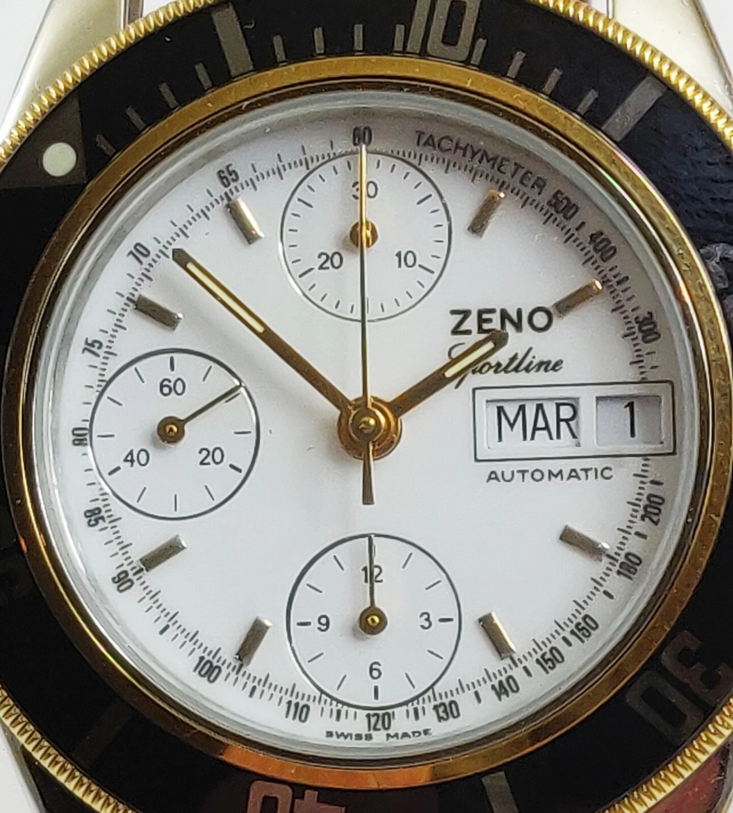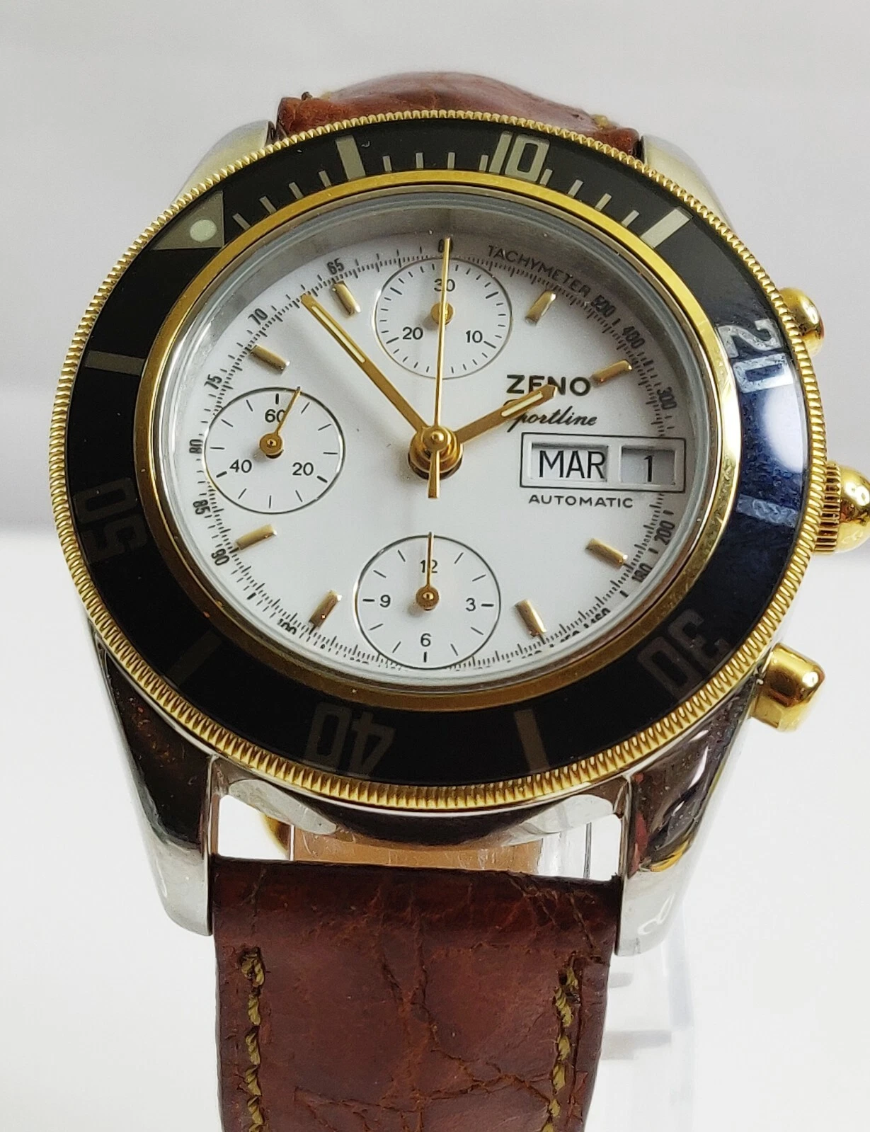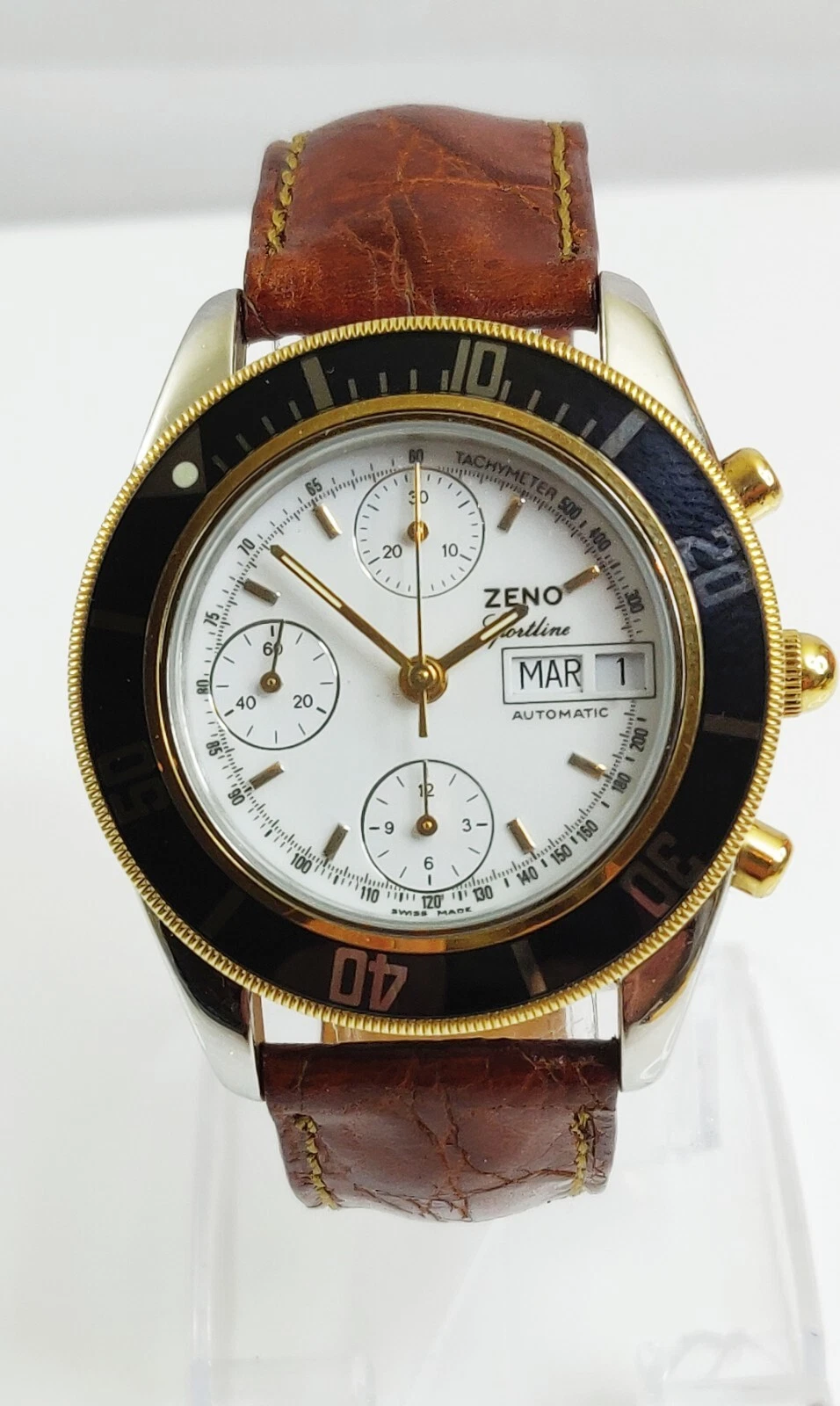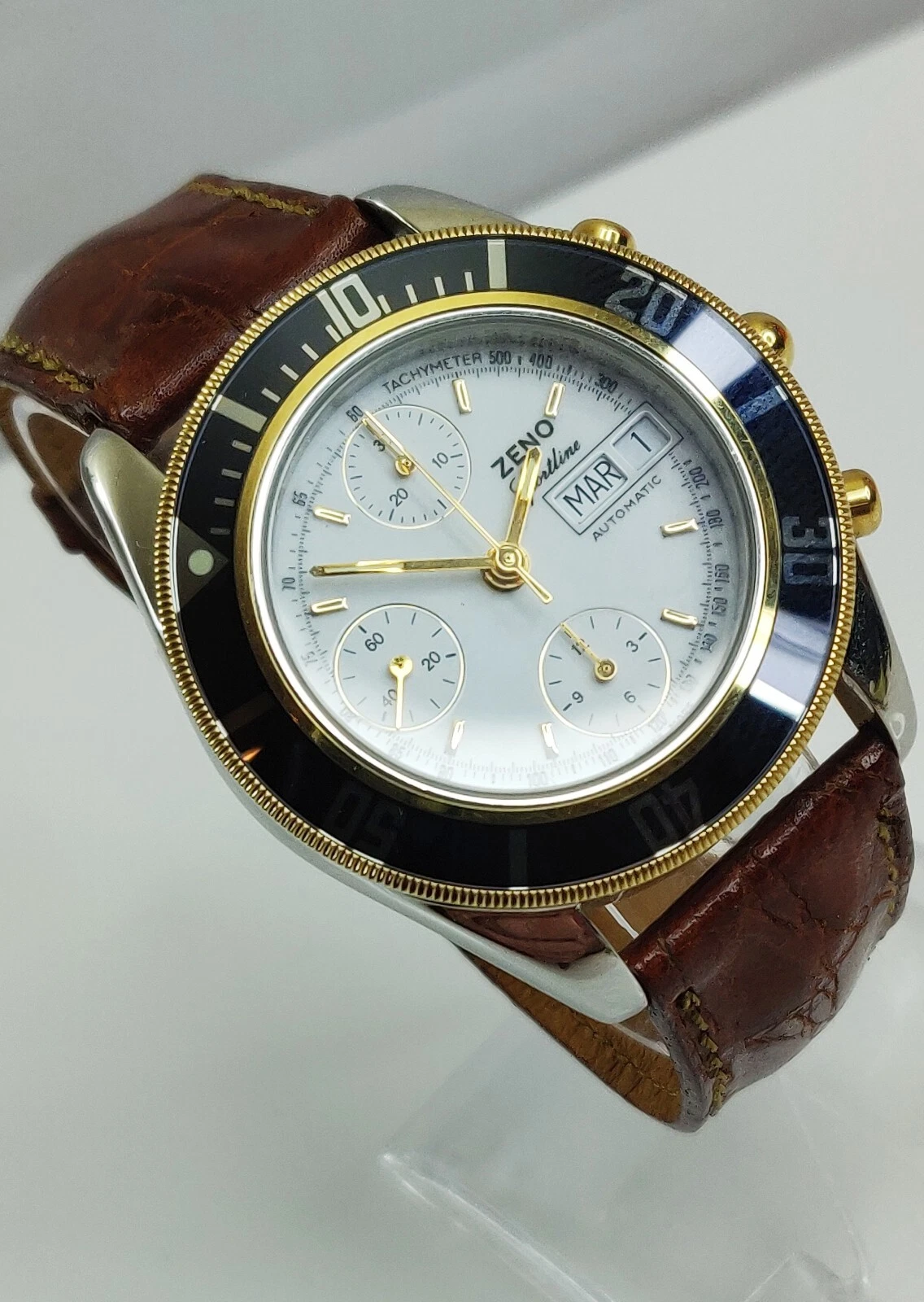 Vintage Rare Zeno Automatic Chronograph Watch Valjoux 7750 Watch NOS 1980S