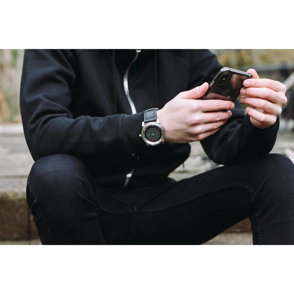 Zinvo silver Turbine Automatique Acier Gris argen Noir Cuir Saphir Montre Homme