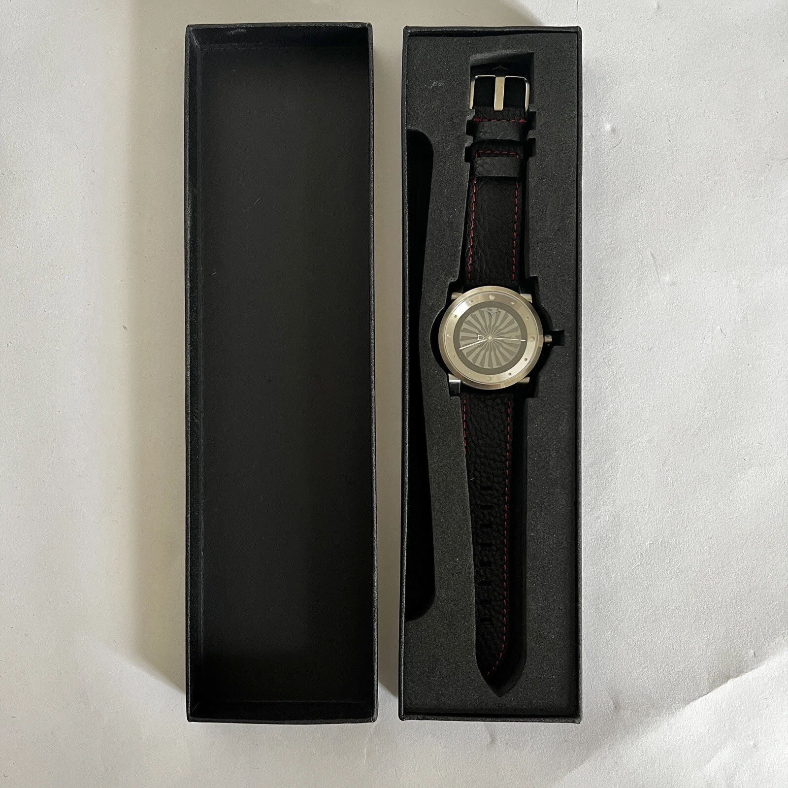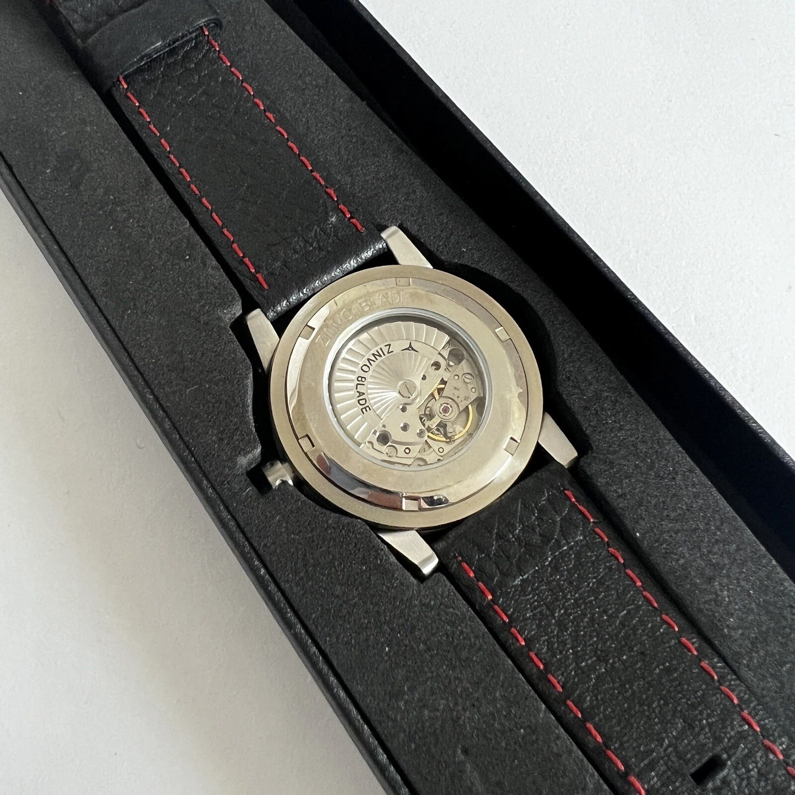 Zinvo Blade Men’s Watch Black Leather with Red Stitching