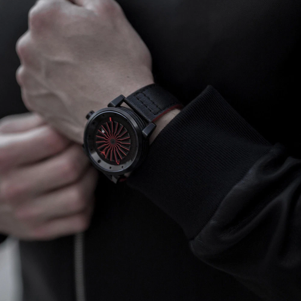 Zinvo Corsa Turbine Automatique Acier Noir Rouge Cuir Gris Saphir Montre Homme