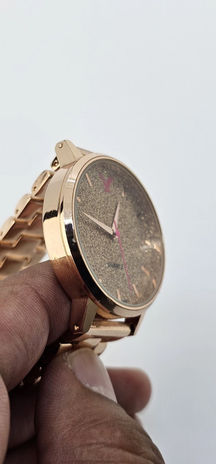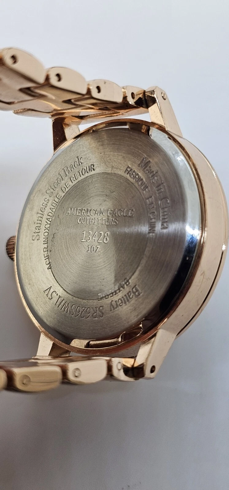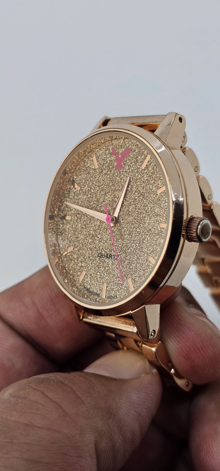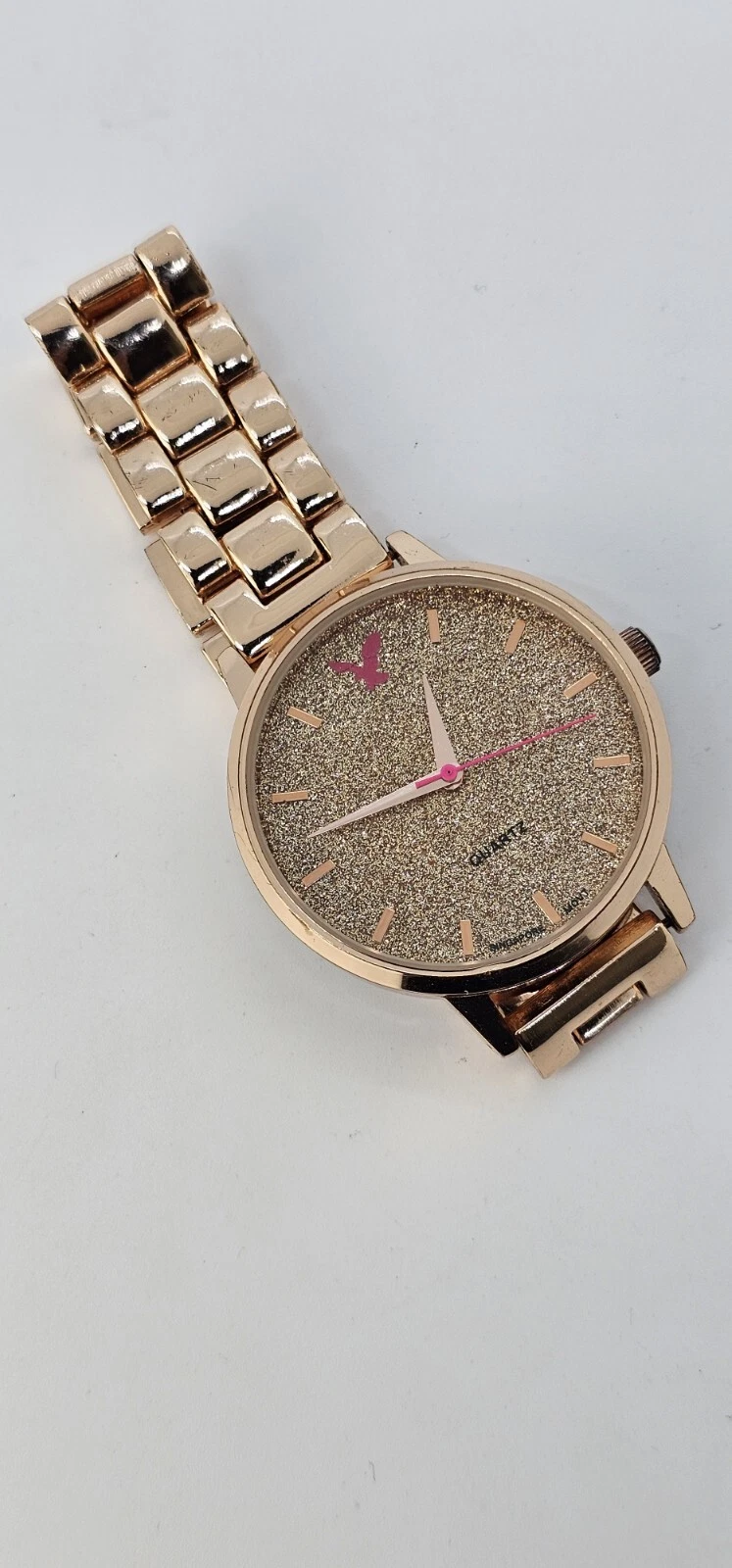 American Eagle Women's Watch 37MM Gold Glitter Dial Gold Band 5.75" New Battery