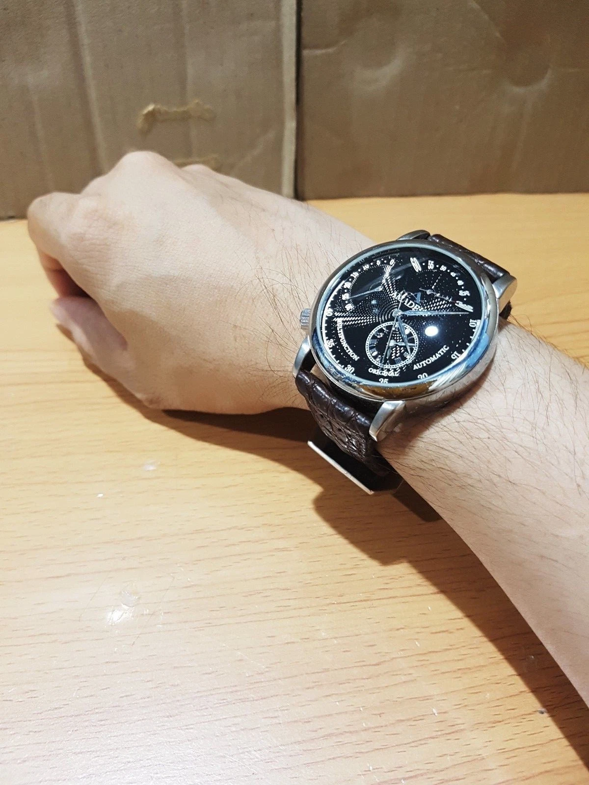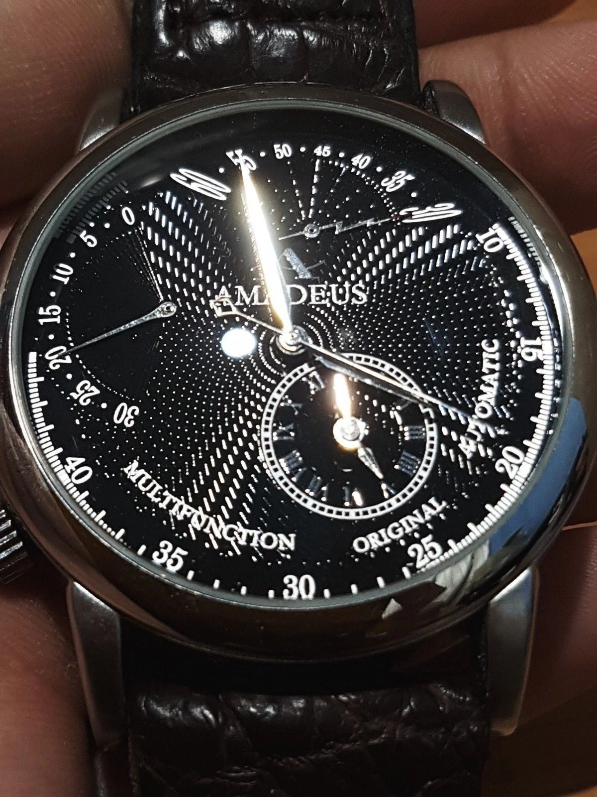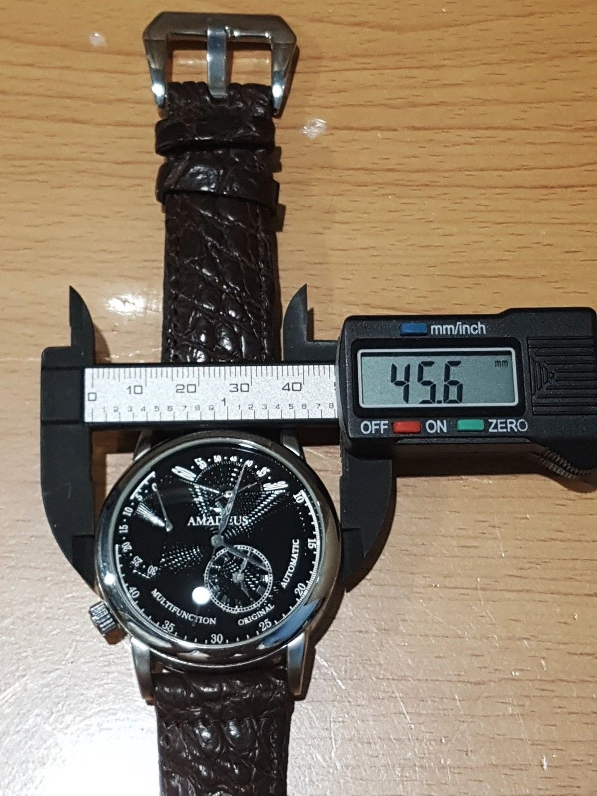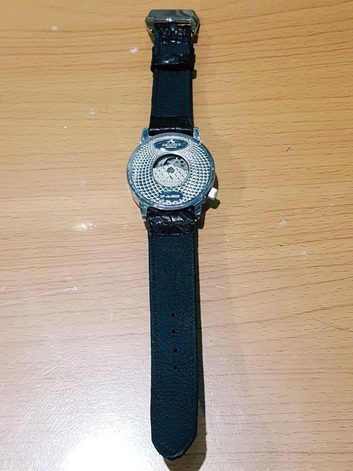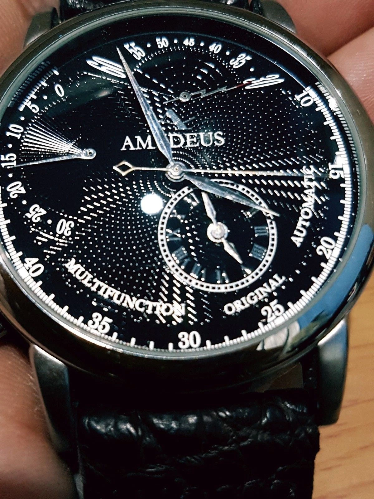 Amadeus Automatic Complex Mutifunction Watch Dual Time Genuine Crocodile Leather