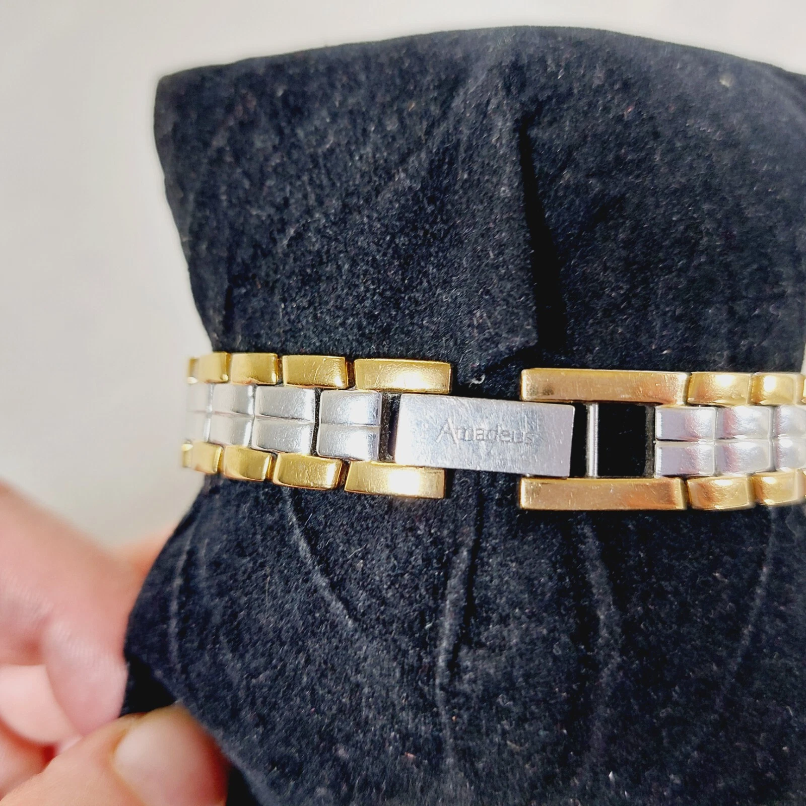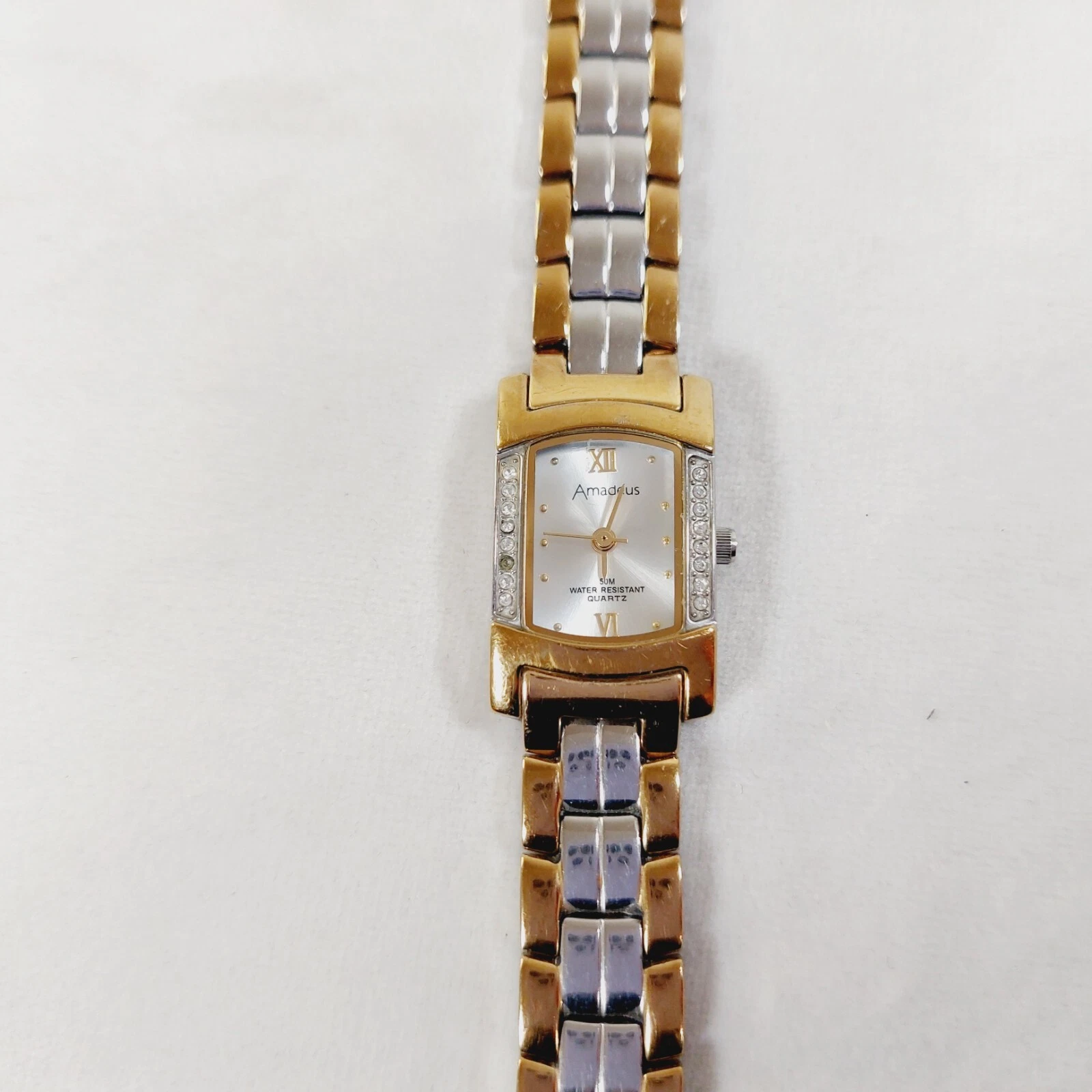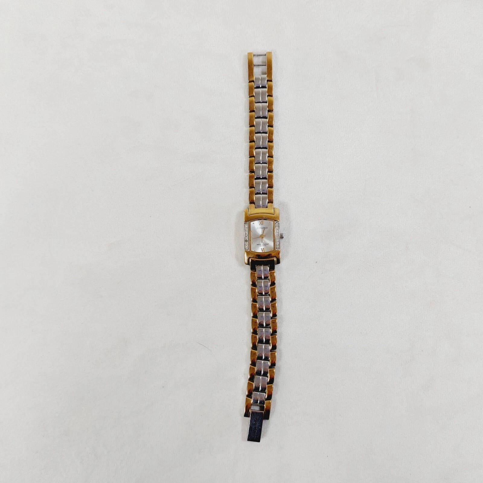 Amadeus Ladies Watch Gold & Silver Tone Bracelet Gemmed Rectangle Case Working