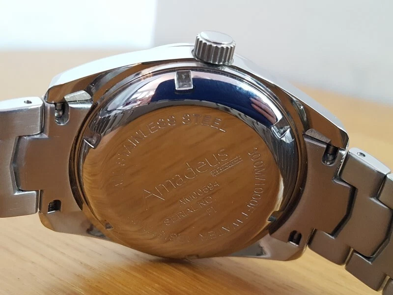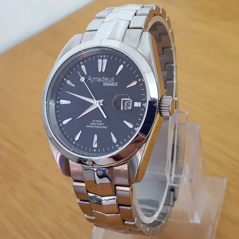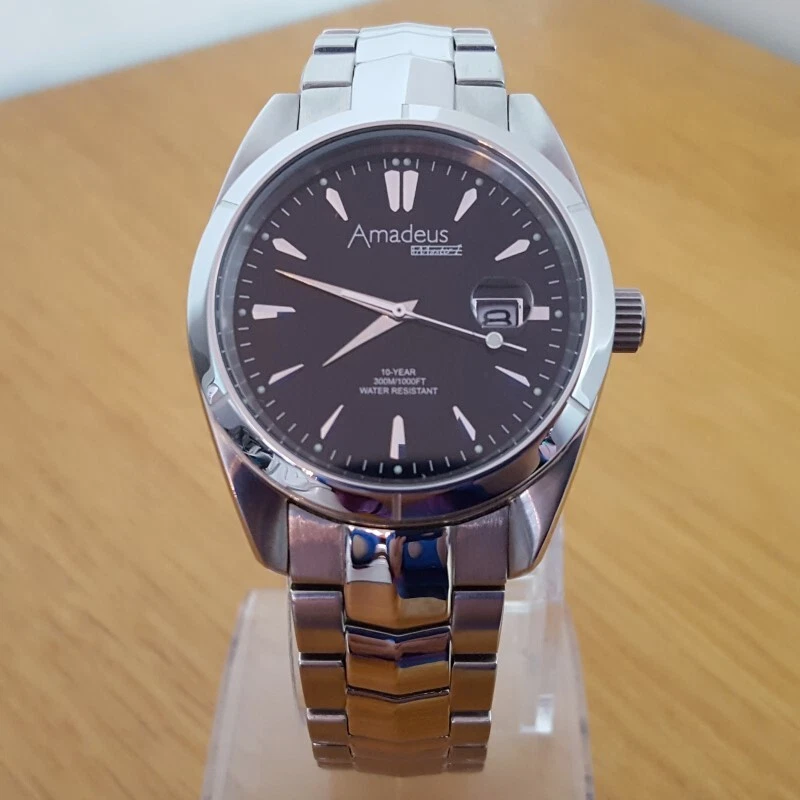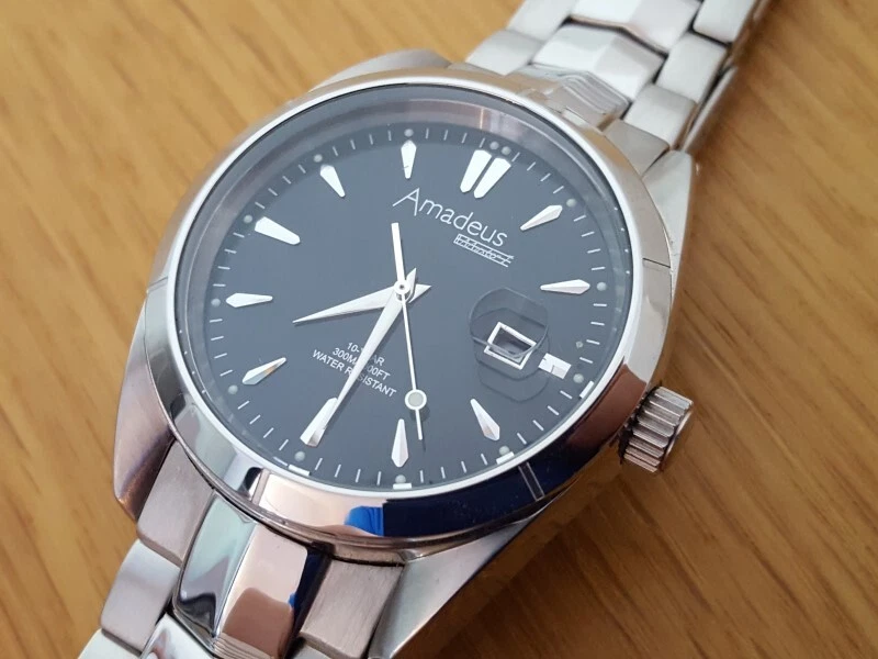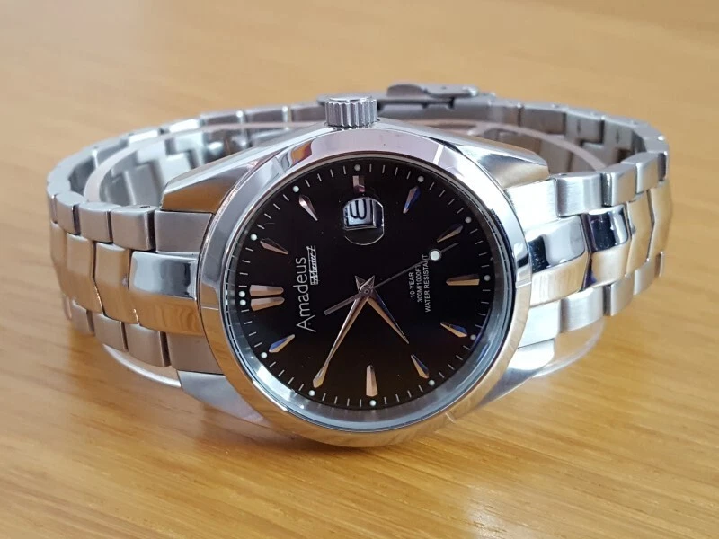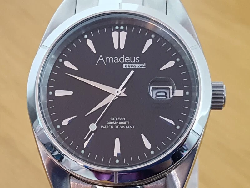 Mens Steel Bracelet Amadeus Master I 300m wr Black Luxury Divers Date Watch
