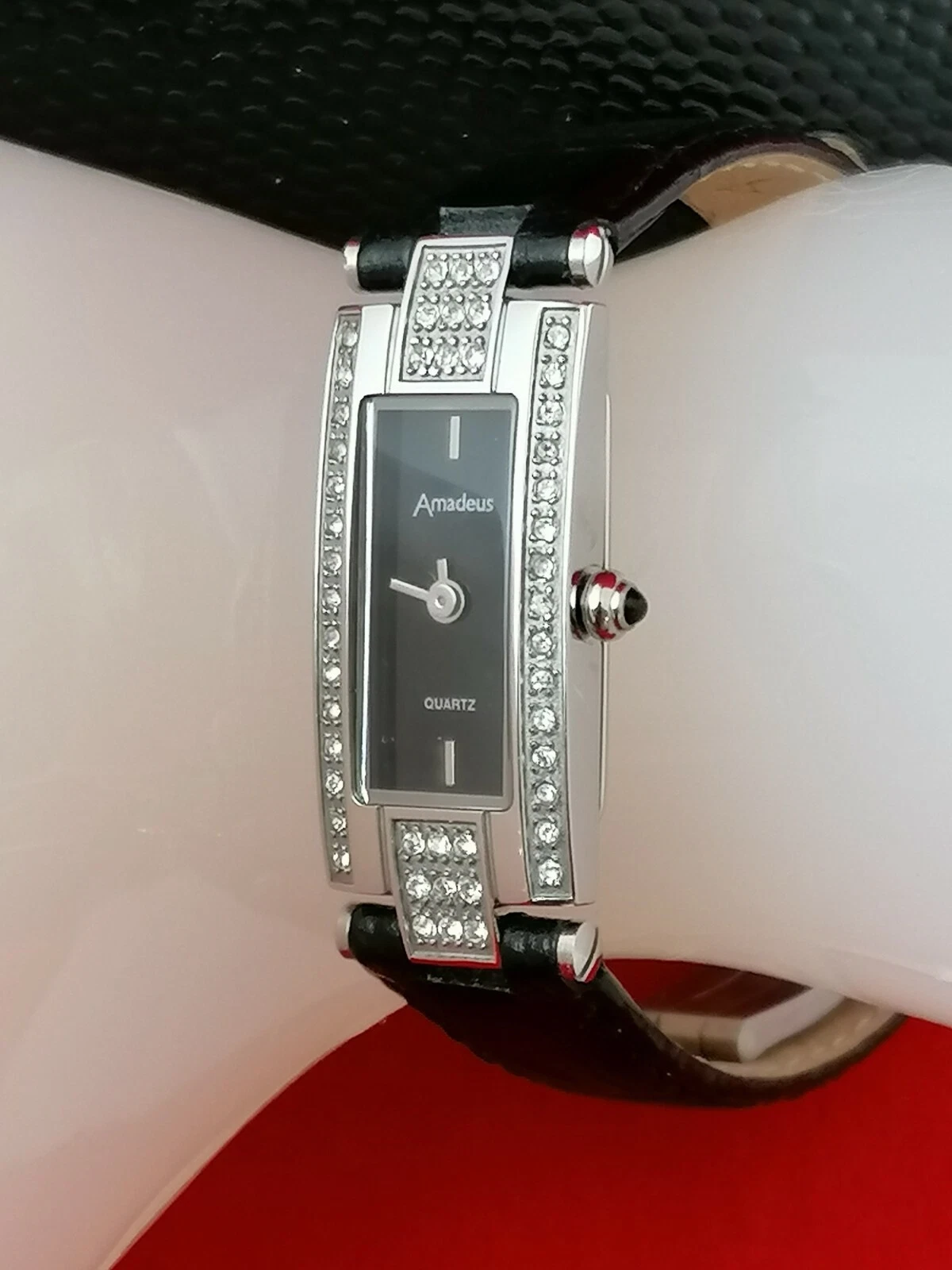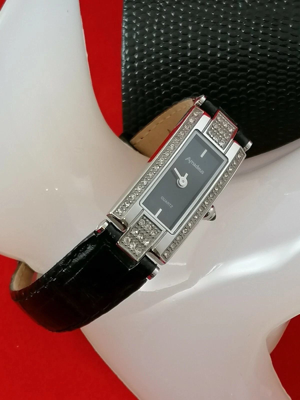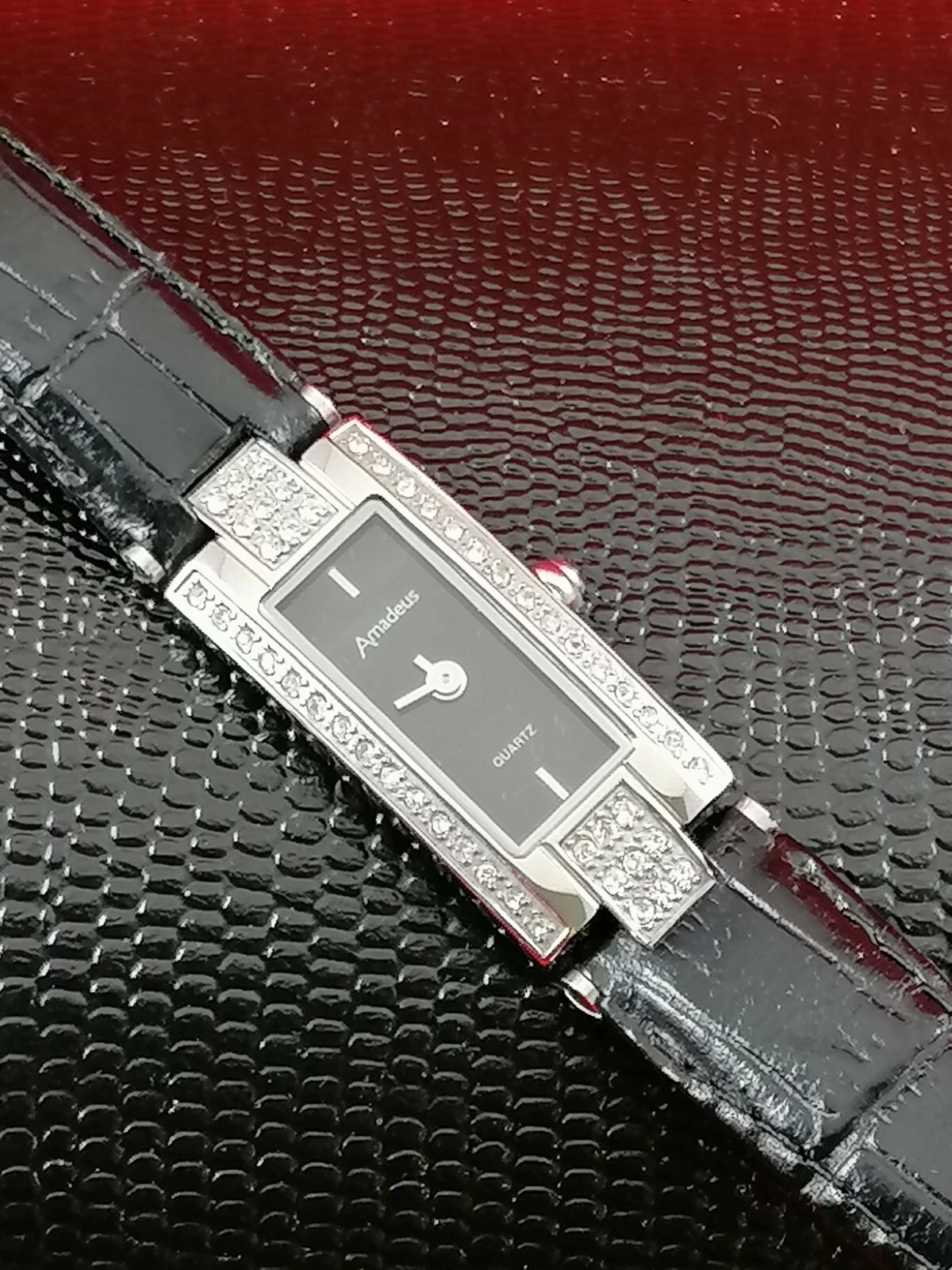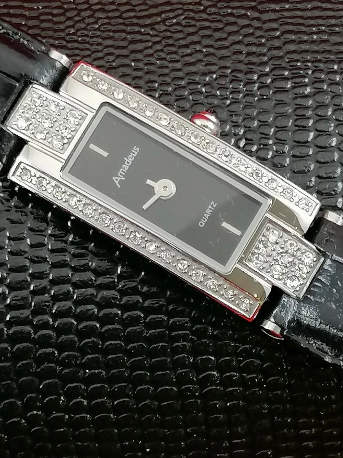 Stunning Stainless Steel Amadeus Quartz Ladies' Watch with Crystal Inlaid Bezel
