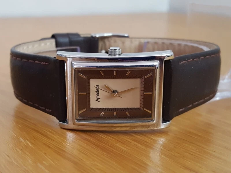 Ladies Retro Classic Brown Leather Amadeus Bronze Analogue Dress Watch AM016
