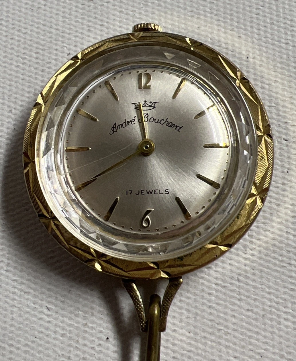 Beautiful Vintage Andre Bouchard 17J Gold Tone Pendant Watch Circular Working