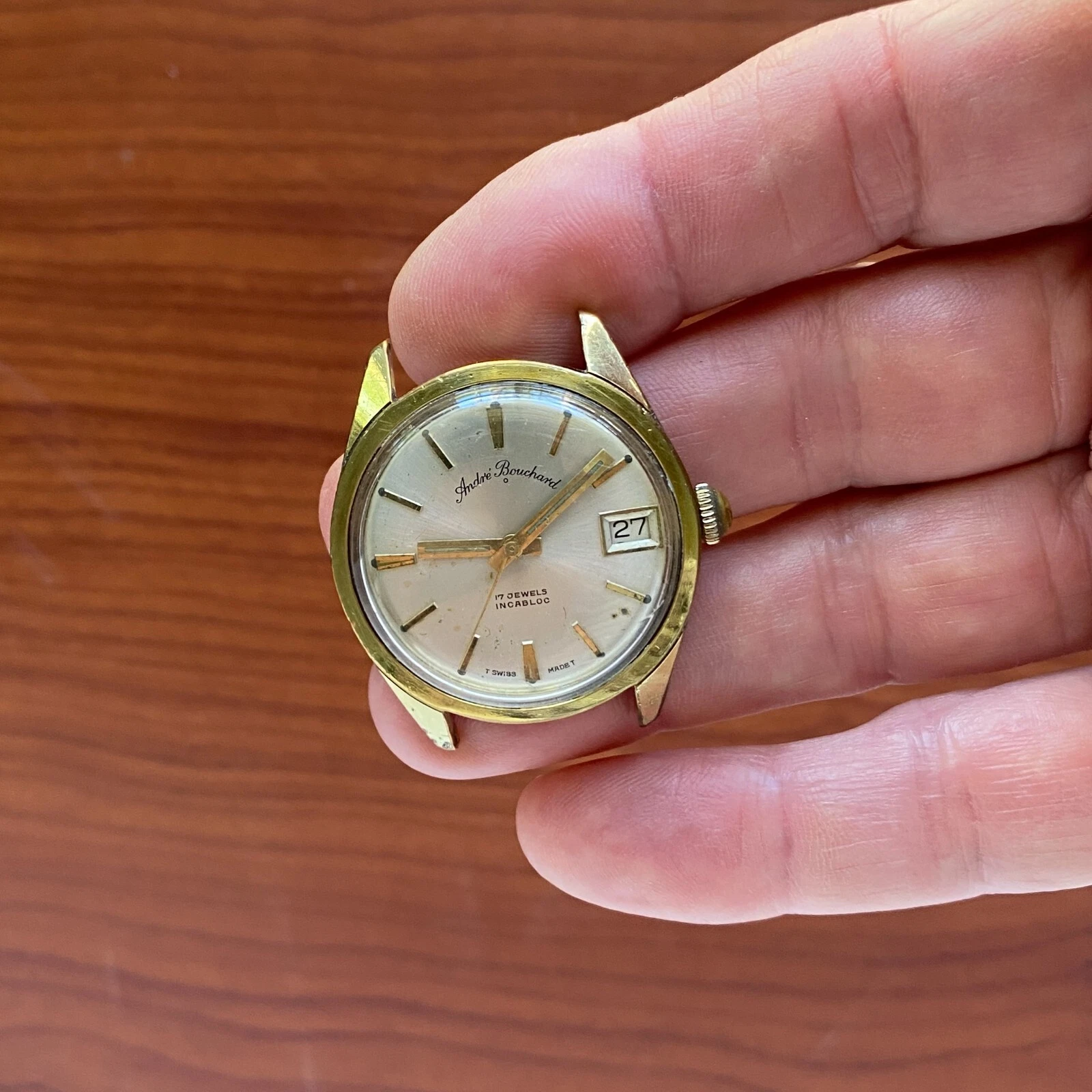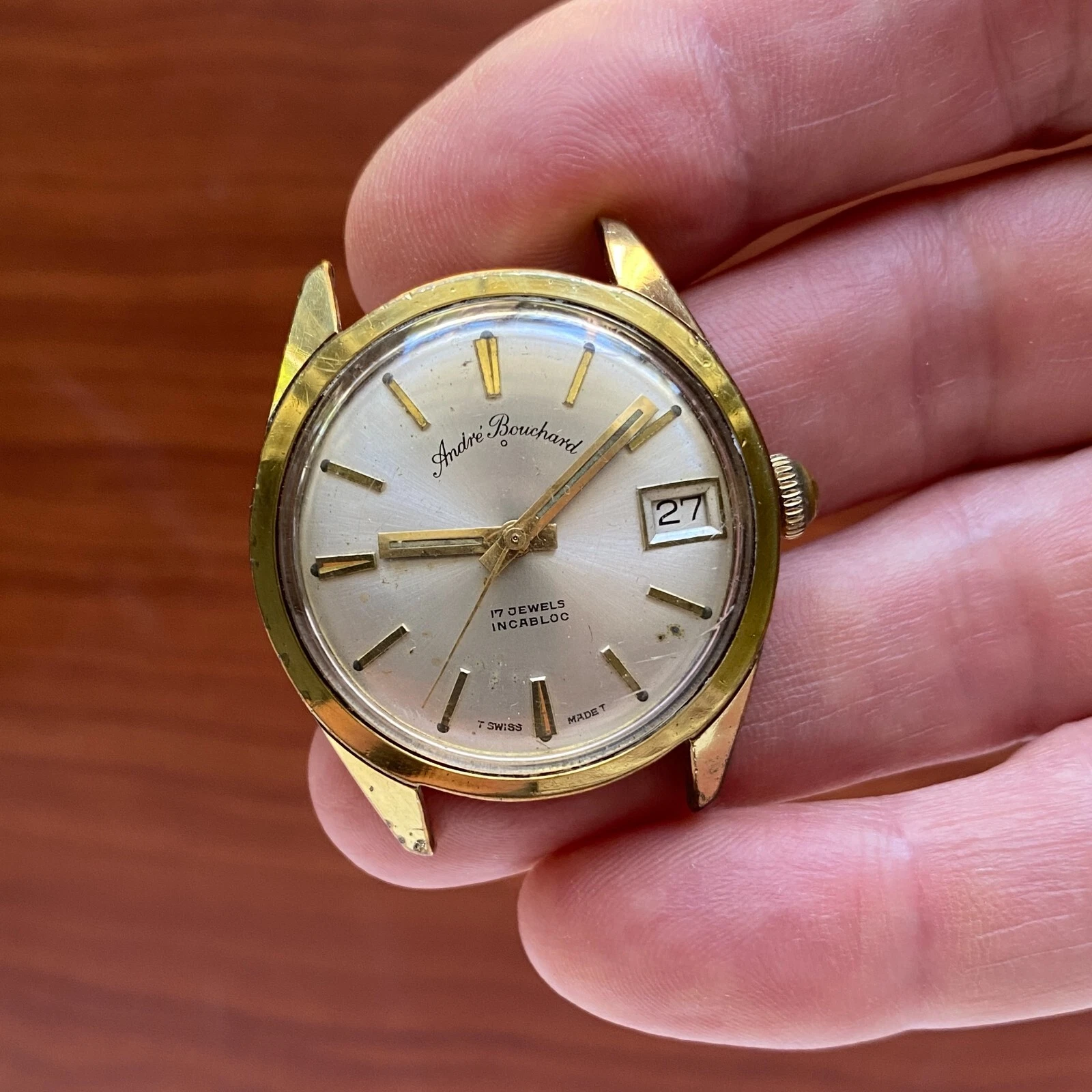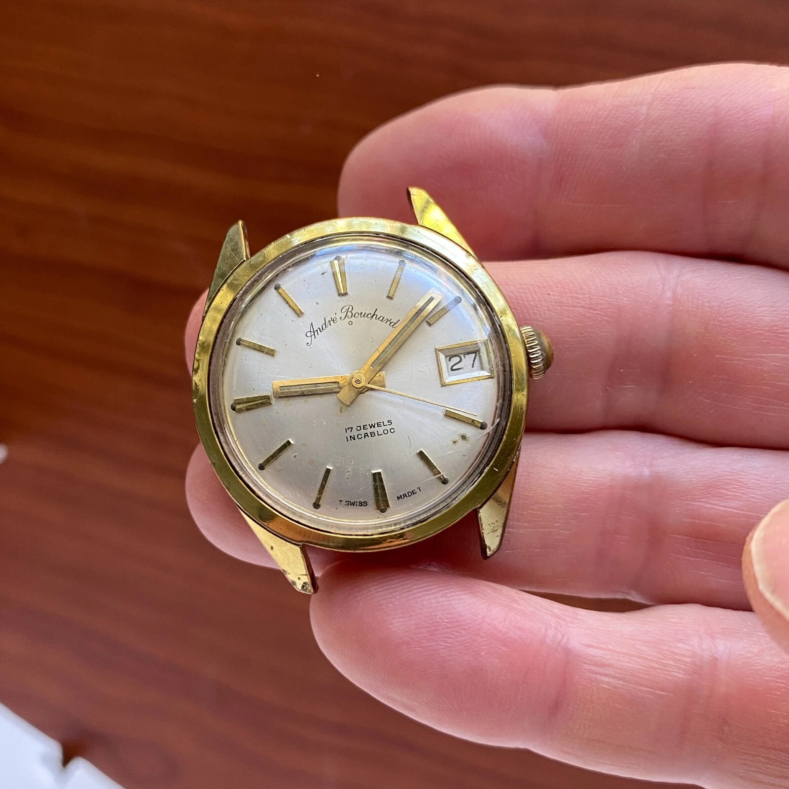Vintage Andre Bouchard 17 Jewels Incabloc Swiss Made w/ Date, Mens Wind-Up Watch