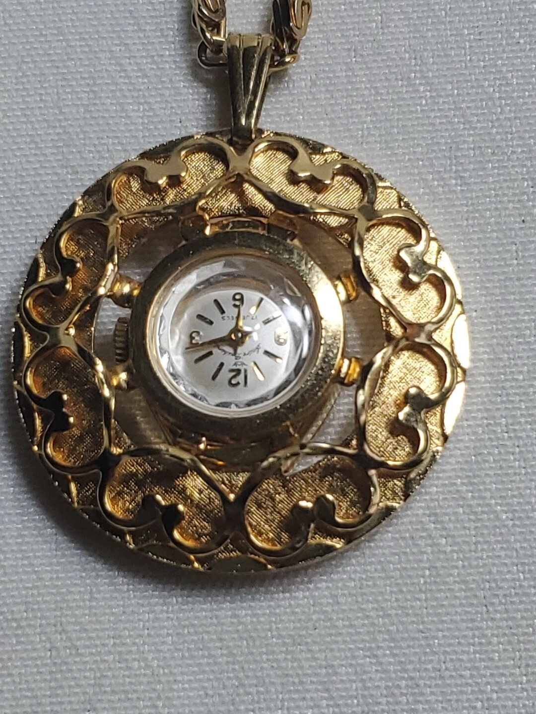 Vtg Andre Bouchard 17 Jewel Pendant Necklace Watch Women GoldTone Wind Up Works