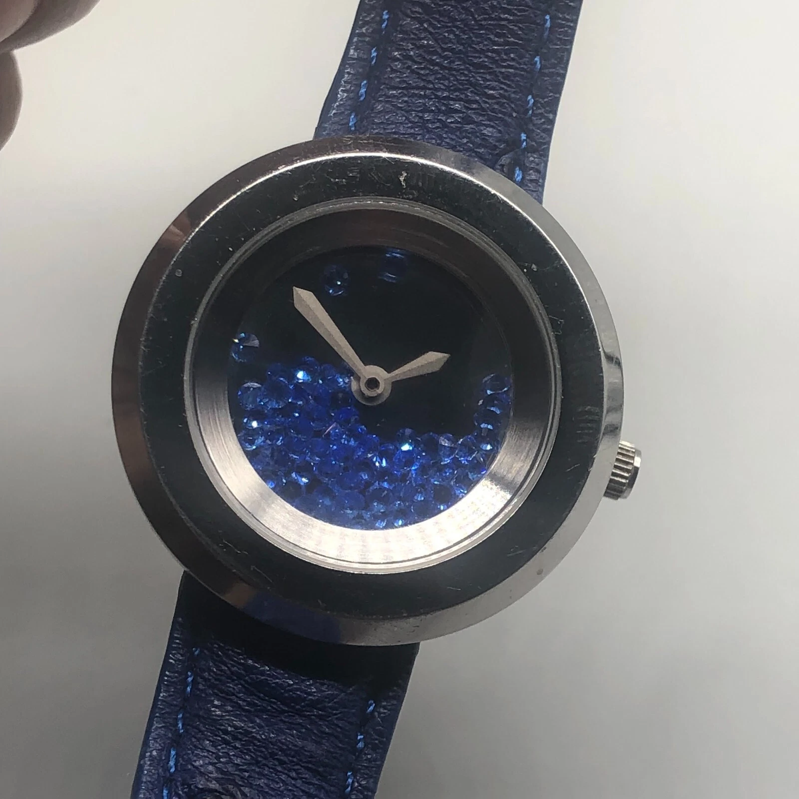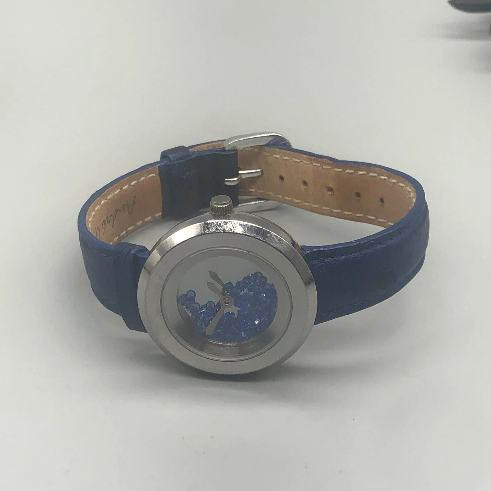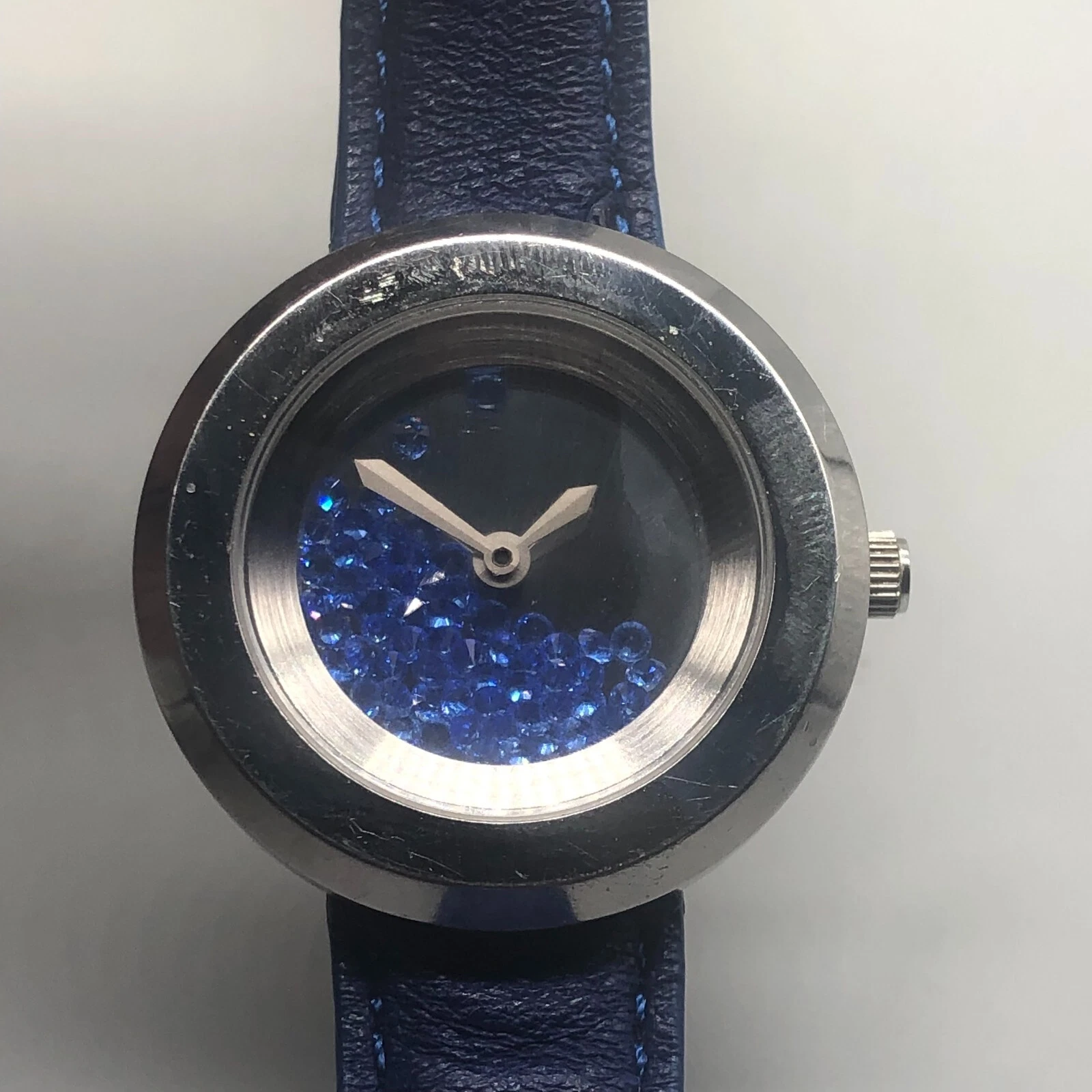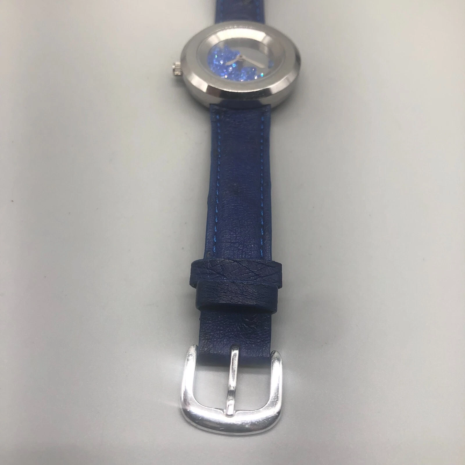 Andre Giroud Watch Women Silver Tone Blue Floating Crystals Leather New Battery