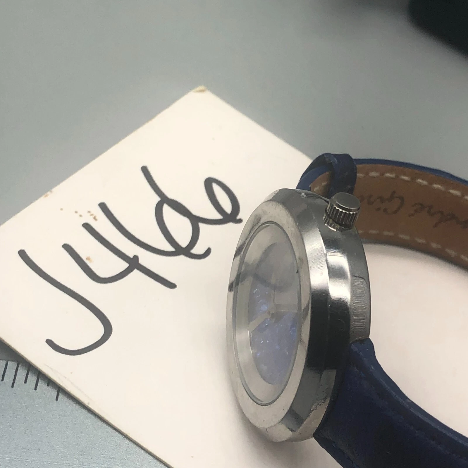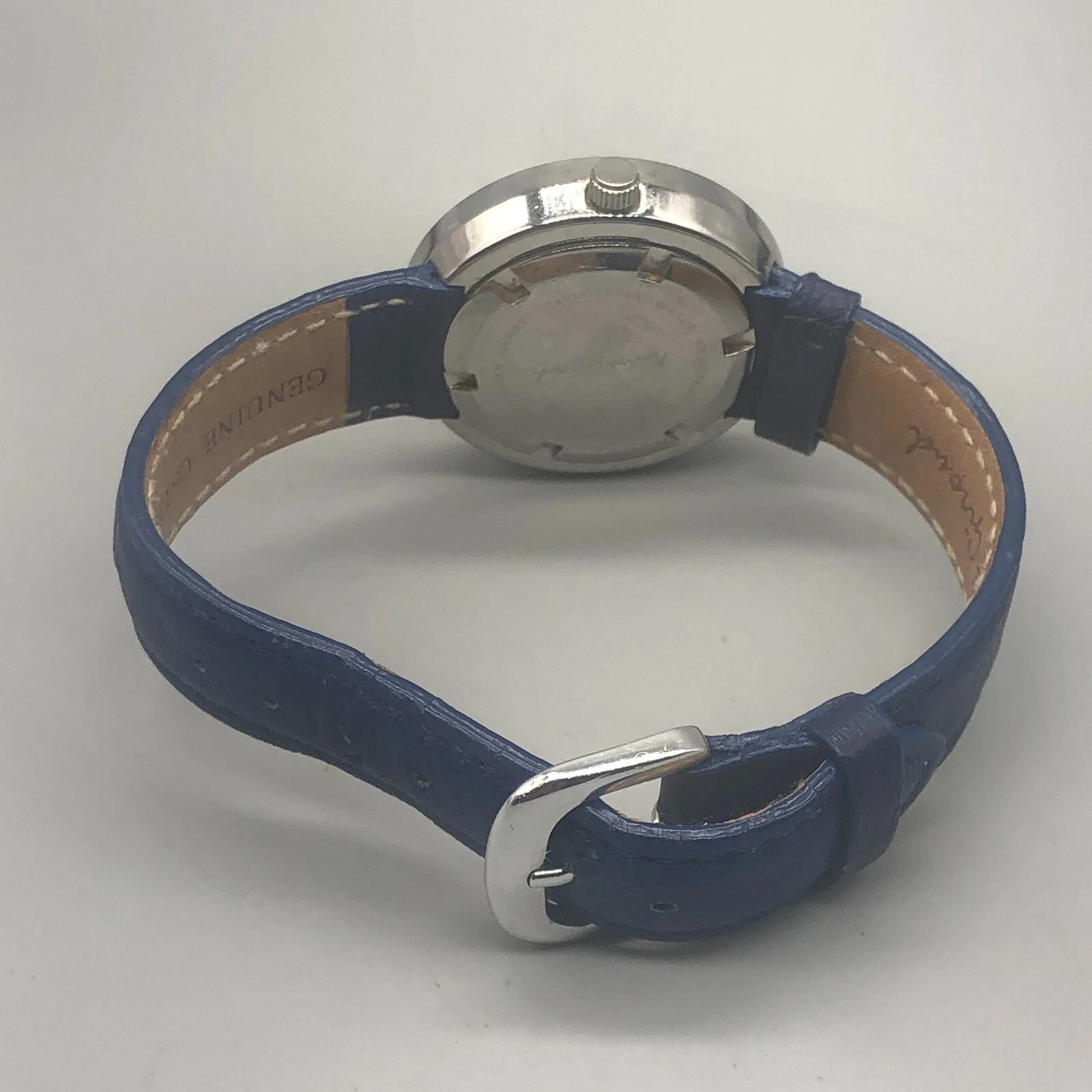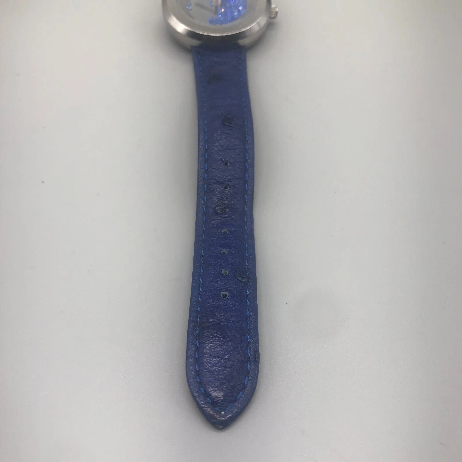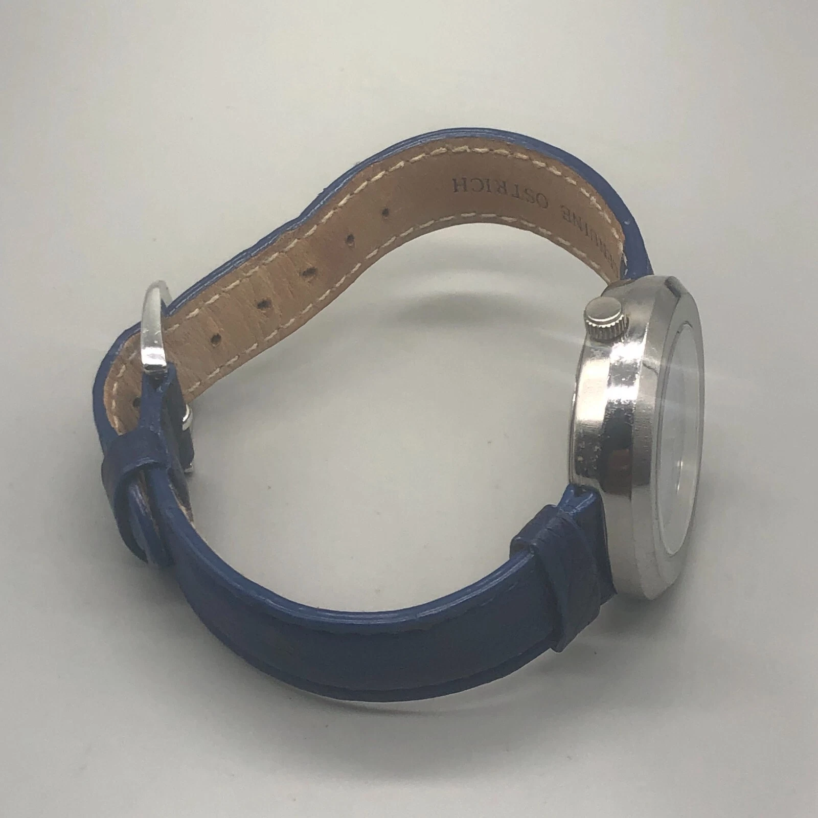 Andre Giroud Watch Women Silver Tone Blue Floating Crystals Leather New Battery