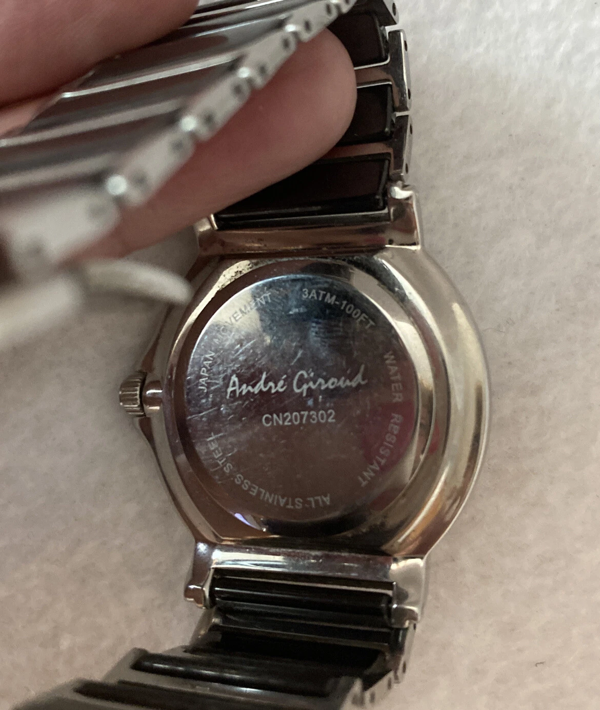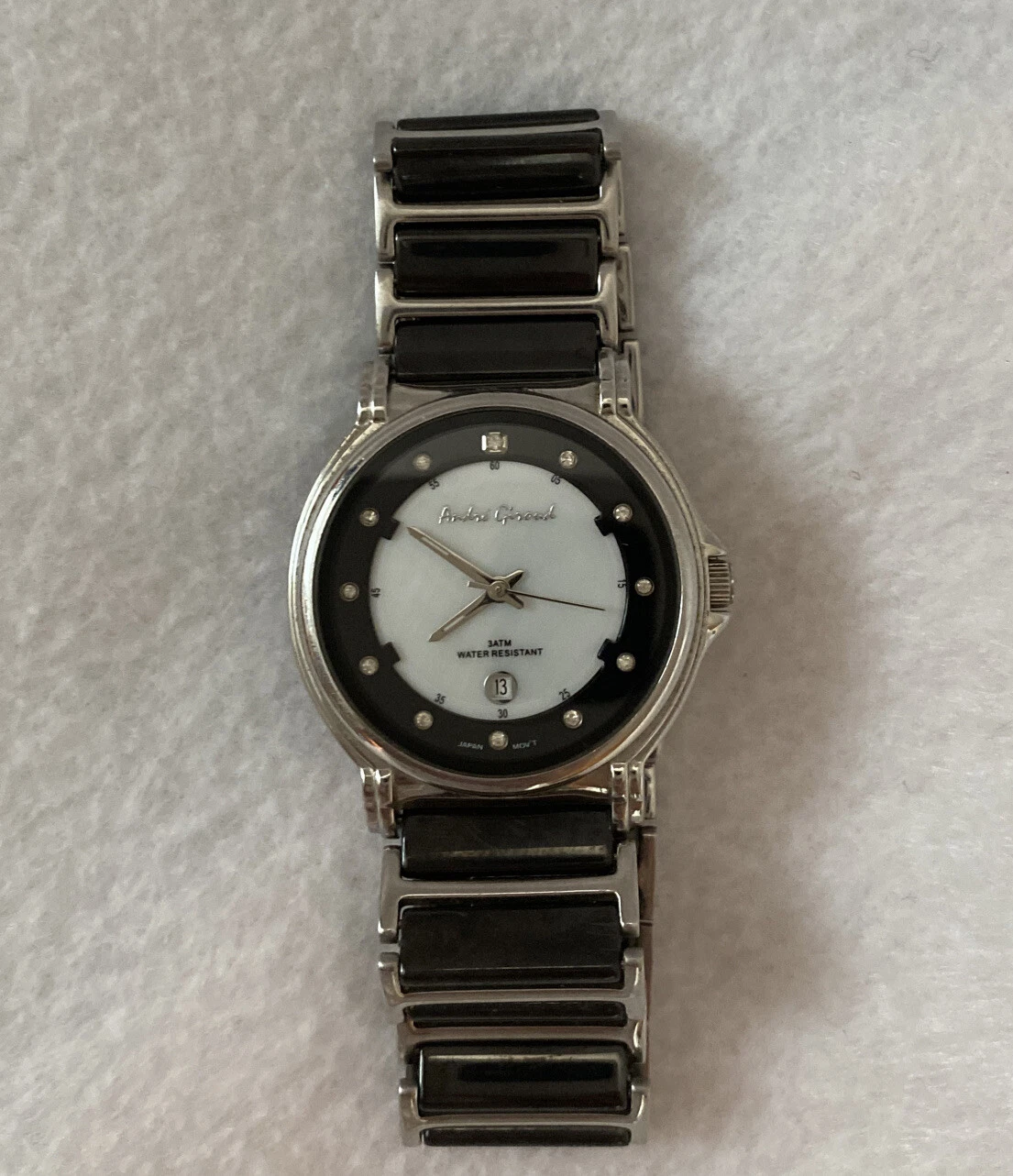 ANDRE GIROUD LADIES WATCH BLACK SILVER CRYSTAL SECOND DATE WATER RESISTANT