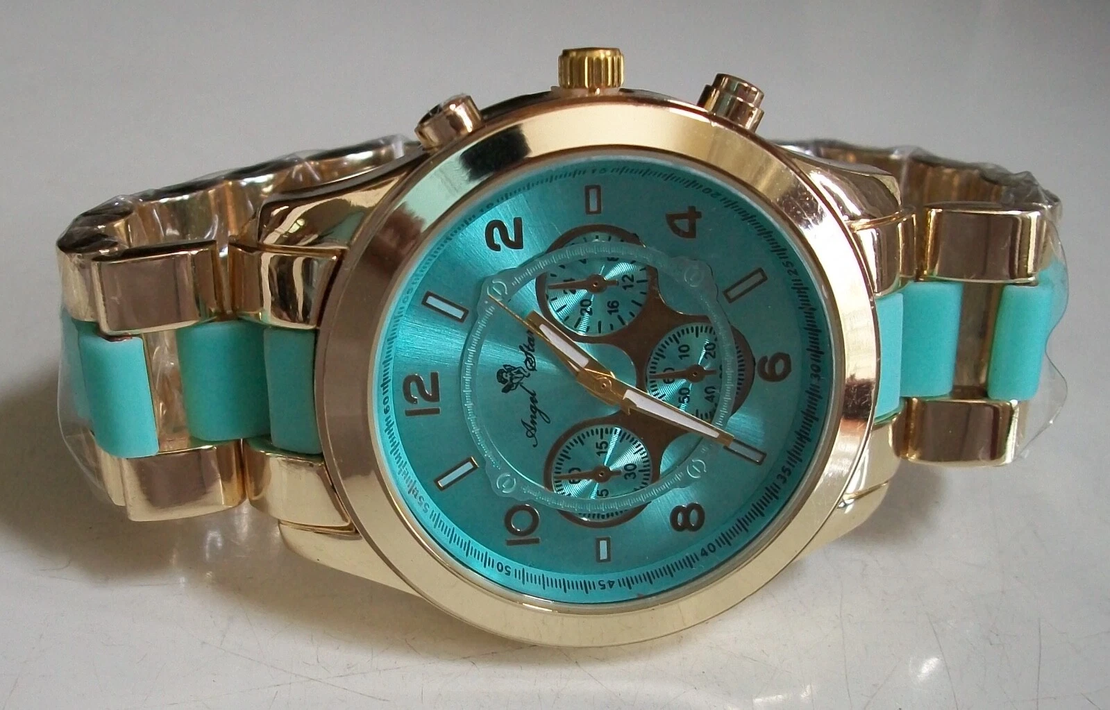 Unisex Gold/Mint finish fashion dressy/casual big dial watch