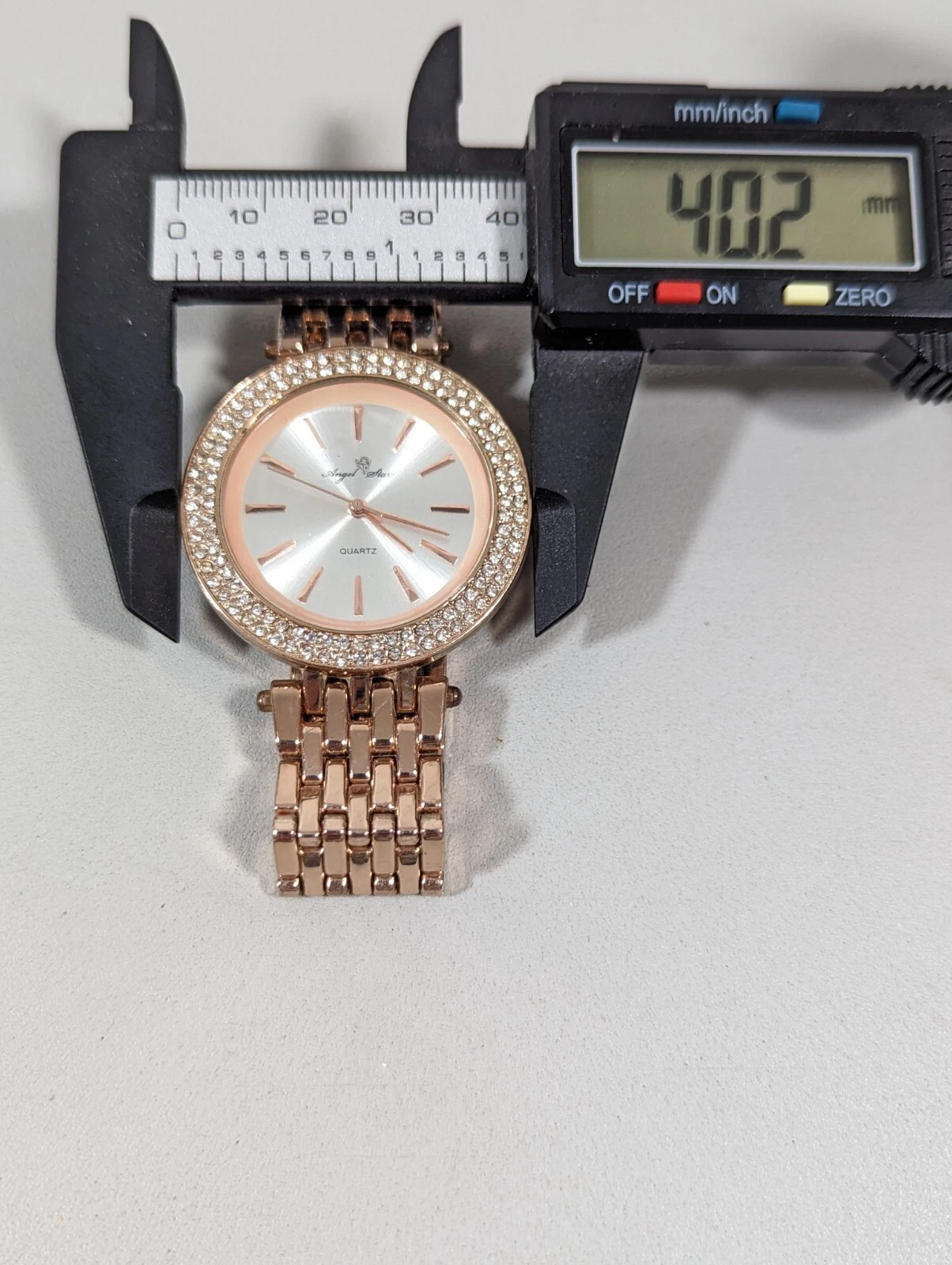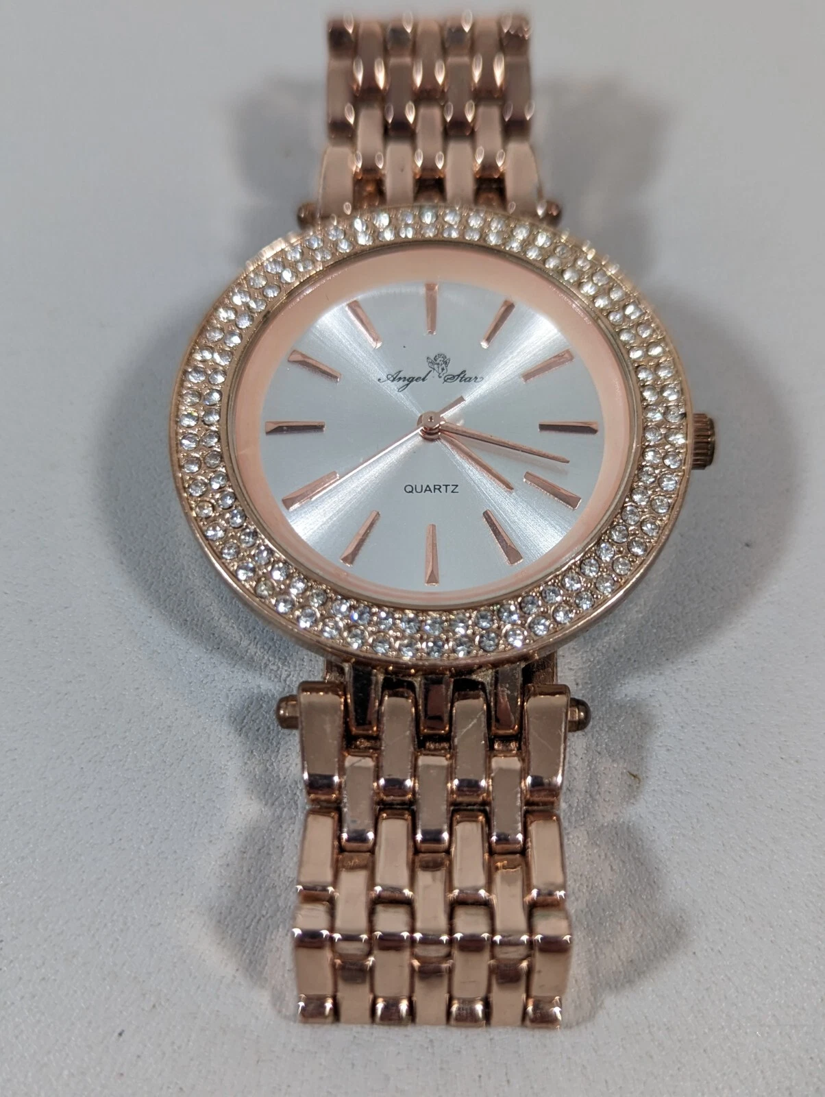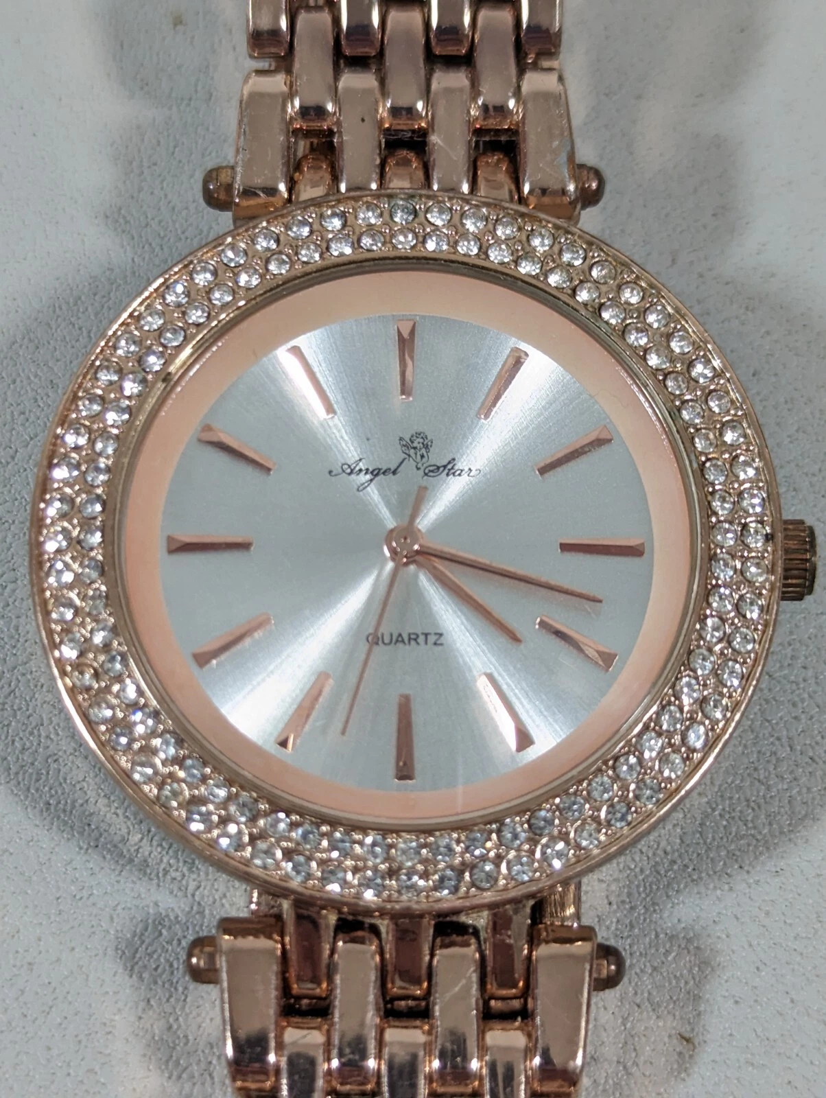 Angel Star Rose Gold Tone Crystal Accent Round Case Stainless Steel Band Watch