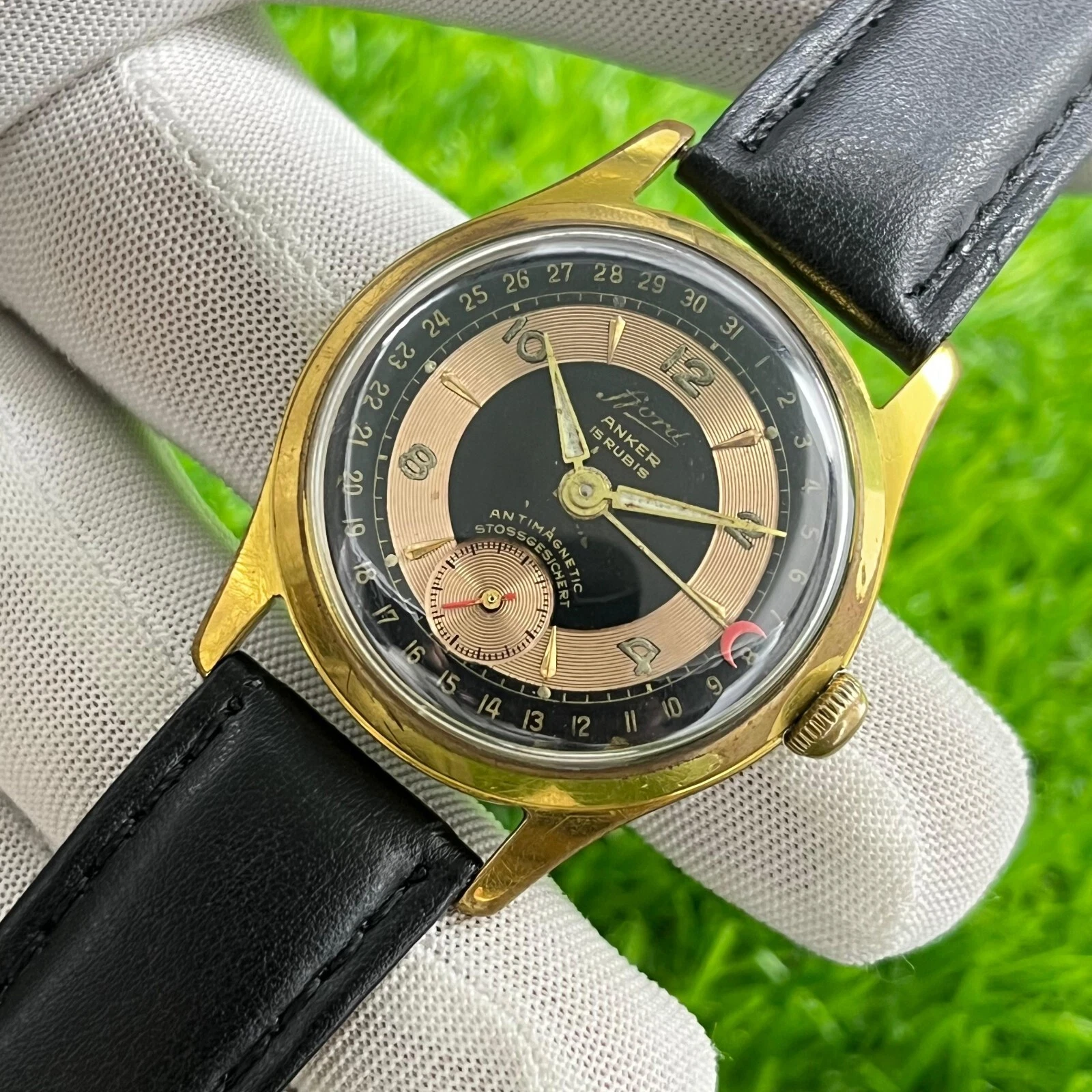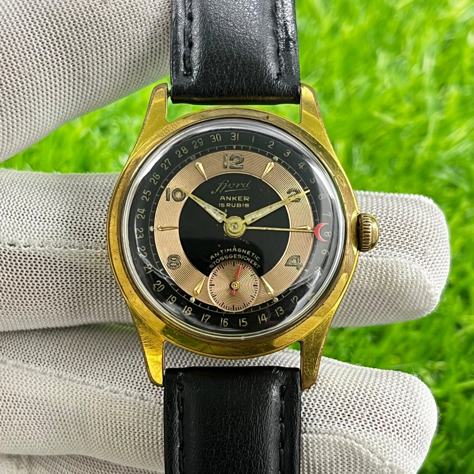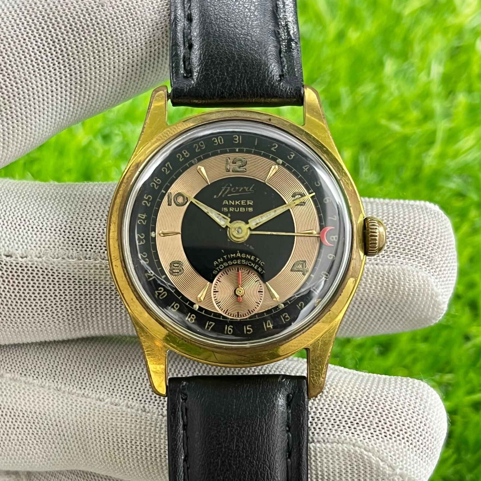 Vintage Fjord Anker Pointer Date Manual Winding 15 Rubis German Made Men's Watch