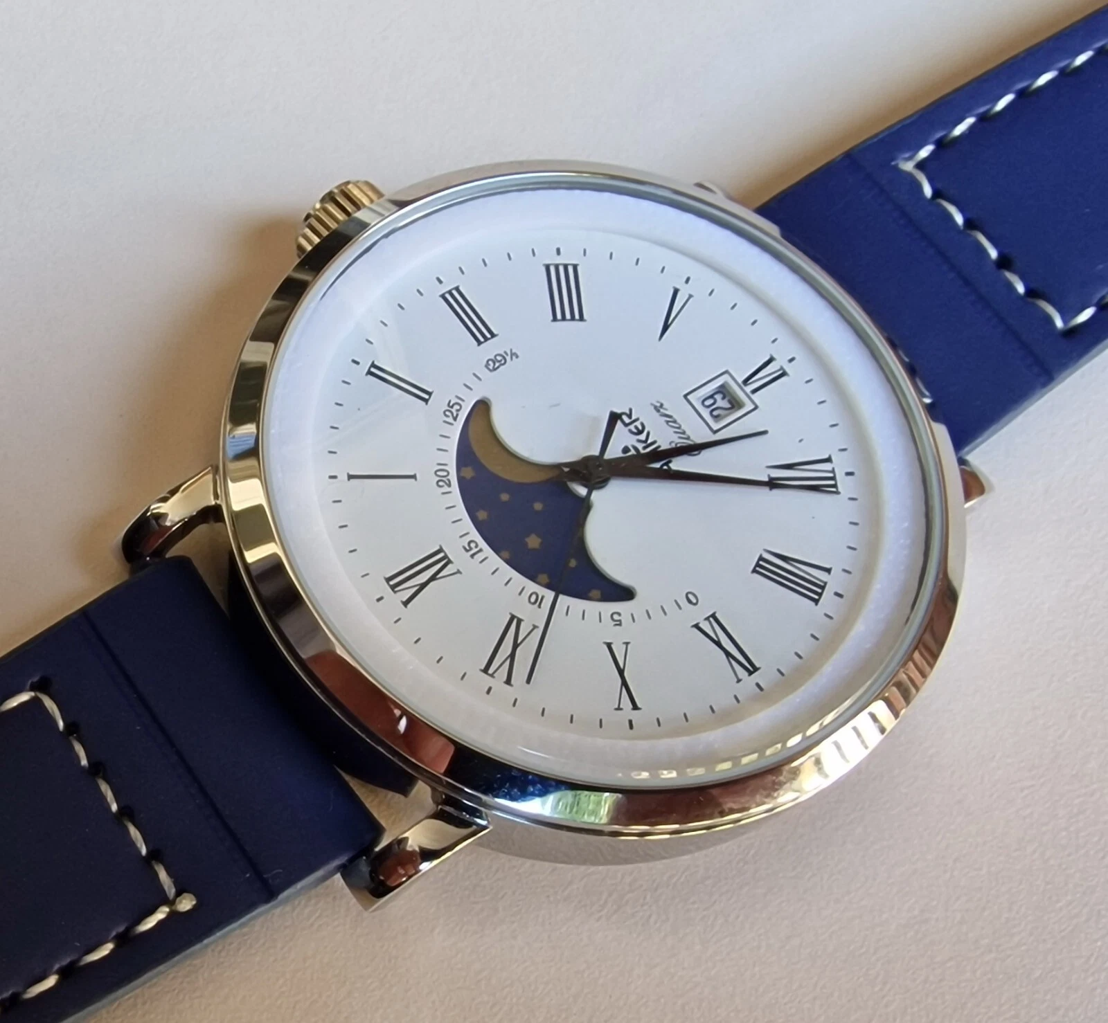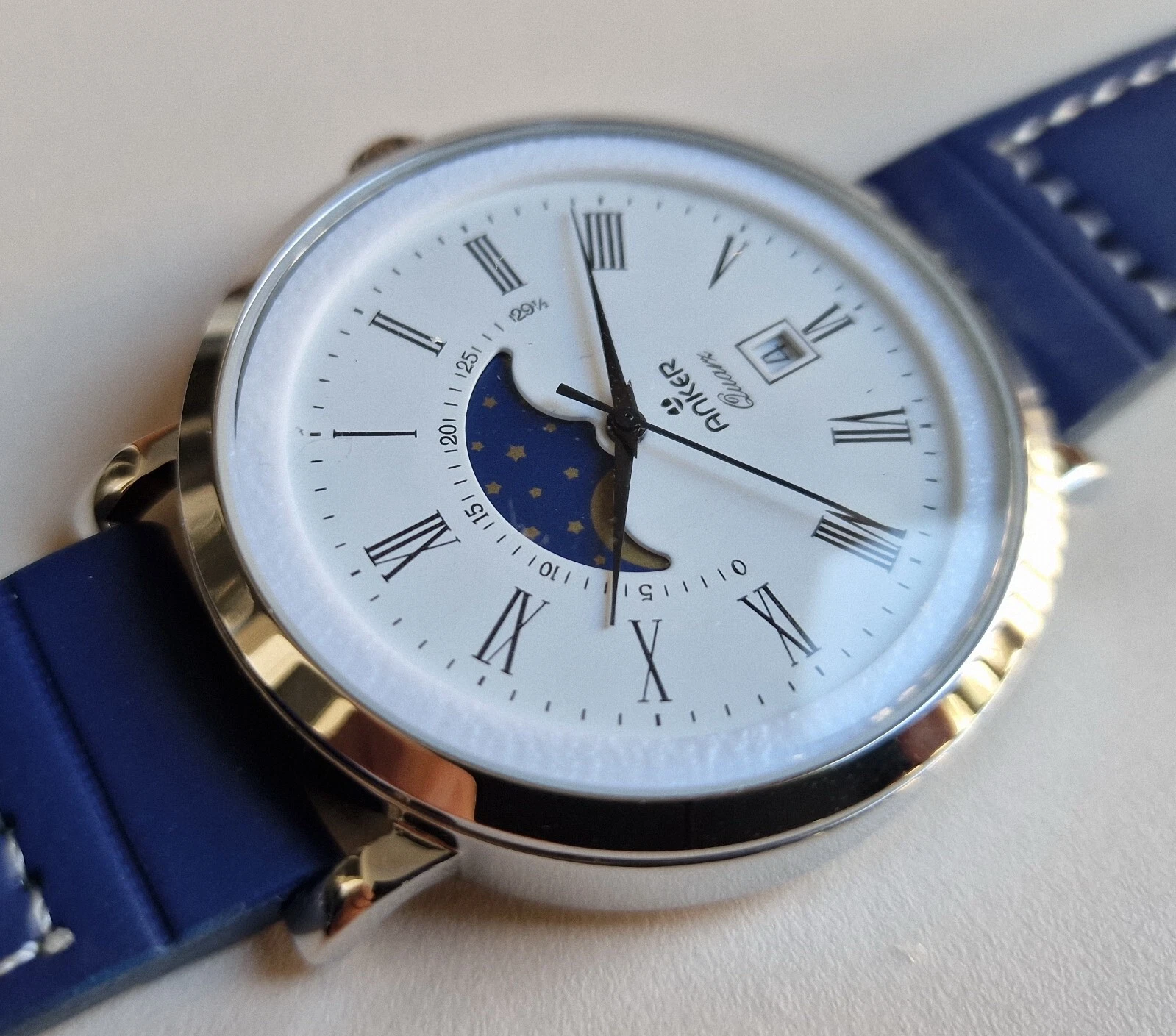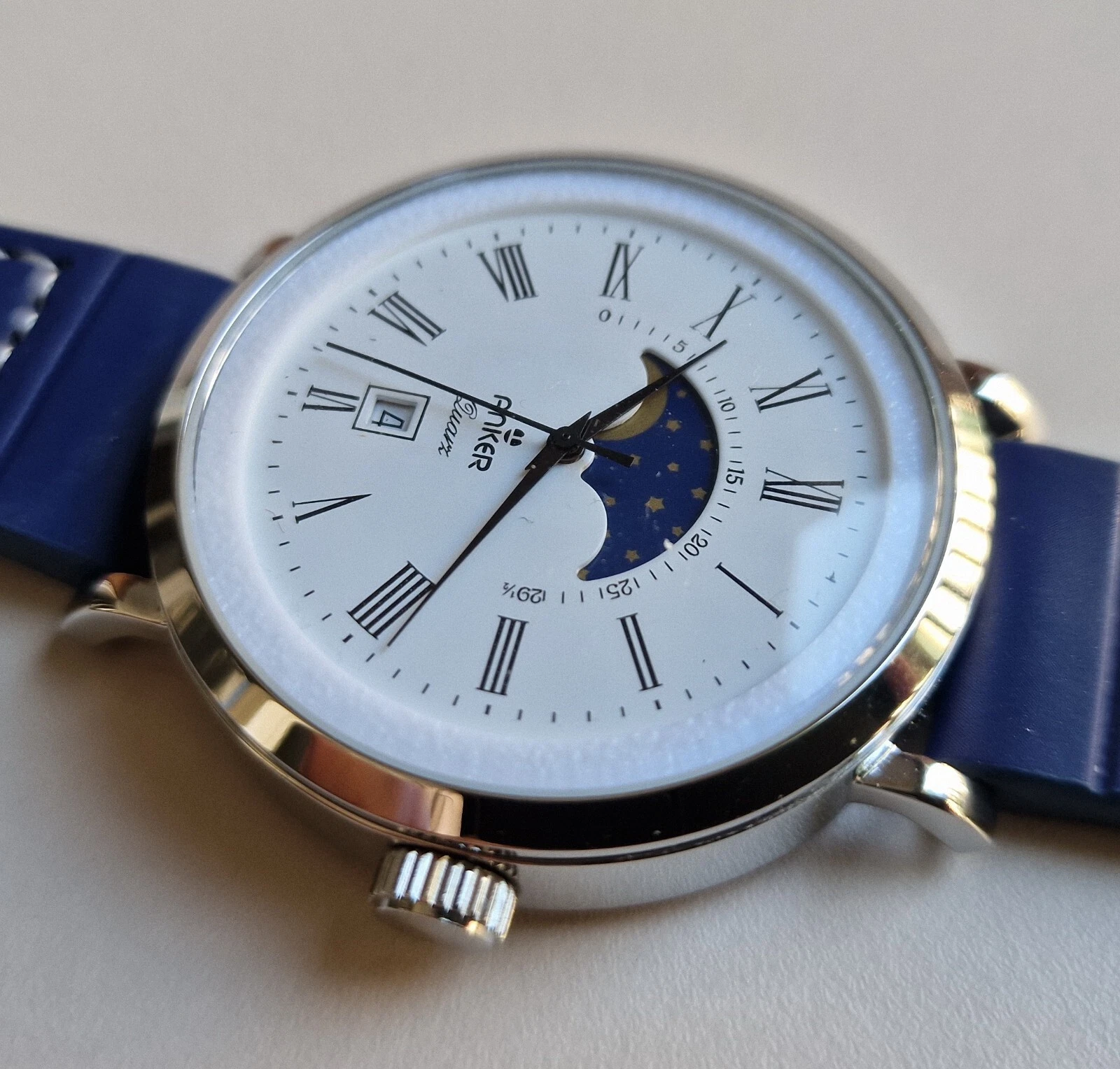 Vintage ANKER moonphase , 46mm , date displaying, Harley Ronda SA378, Quartz