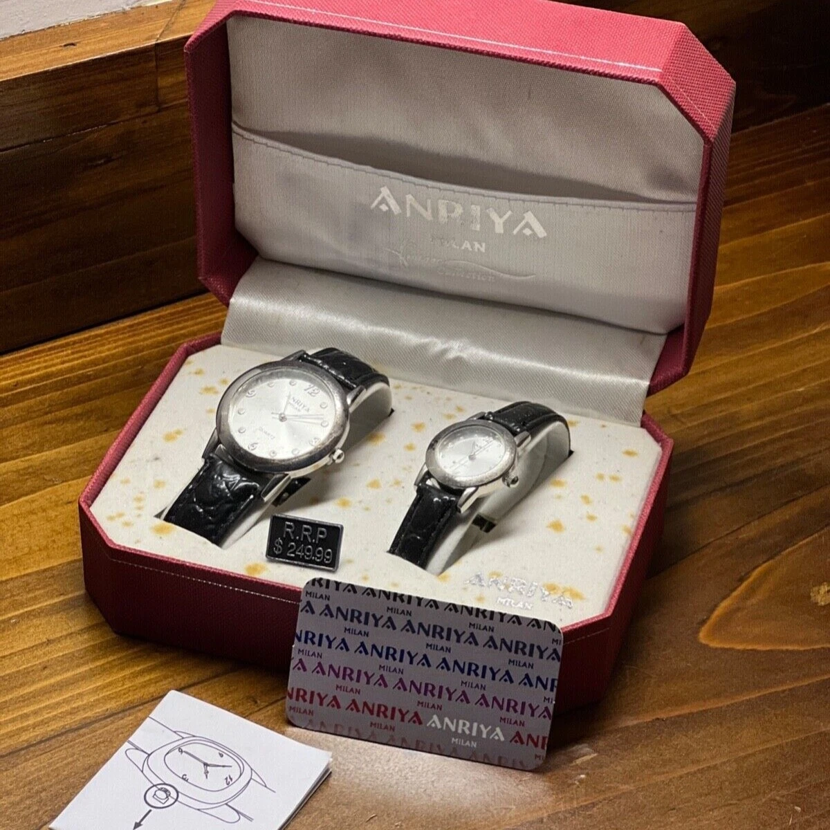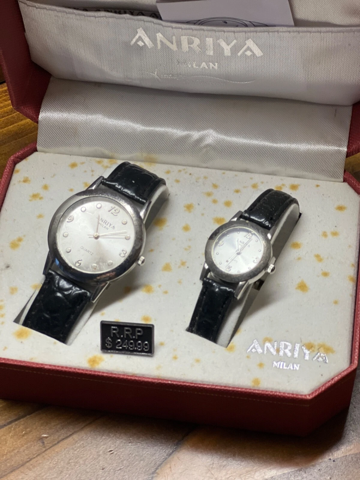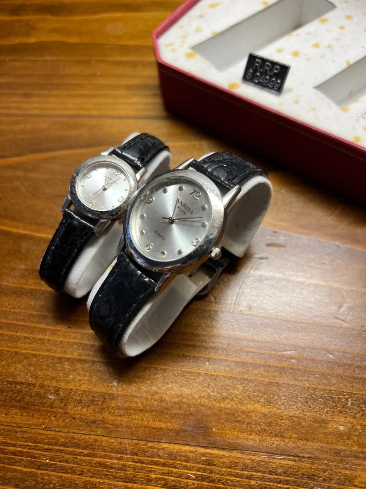 His Hers Matching Watch Silver Black Straps Buckle Closure ANRIYA MILAN NIB Set