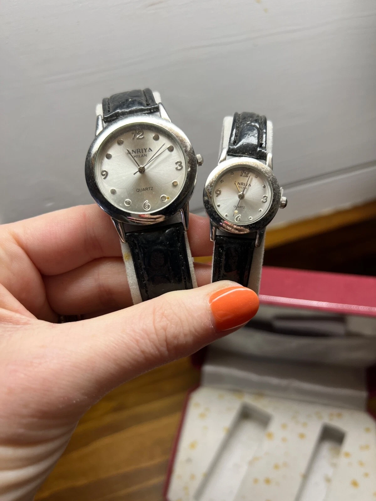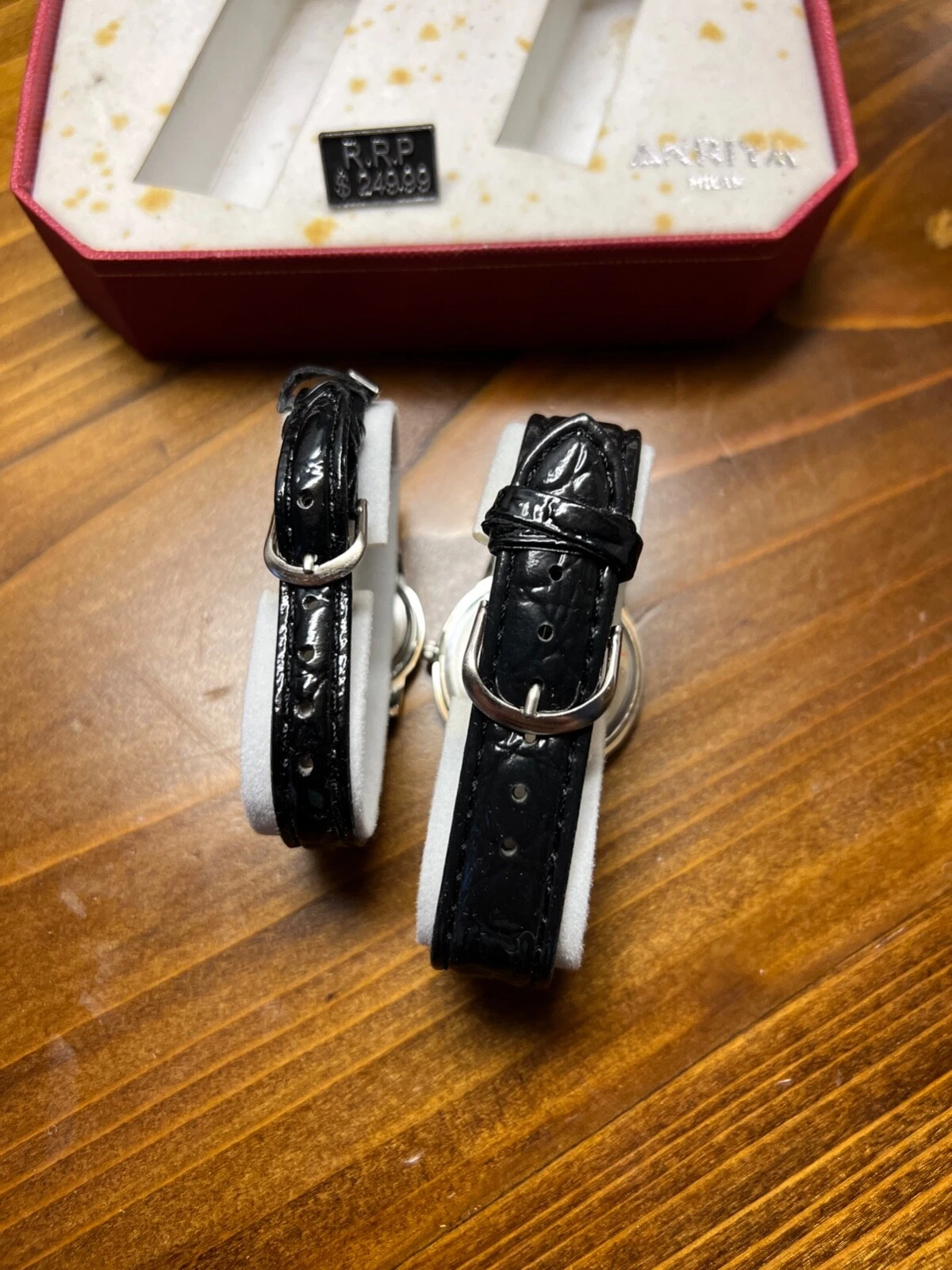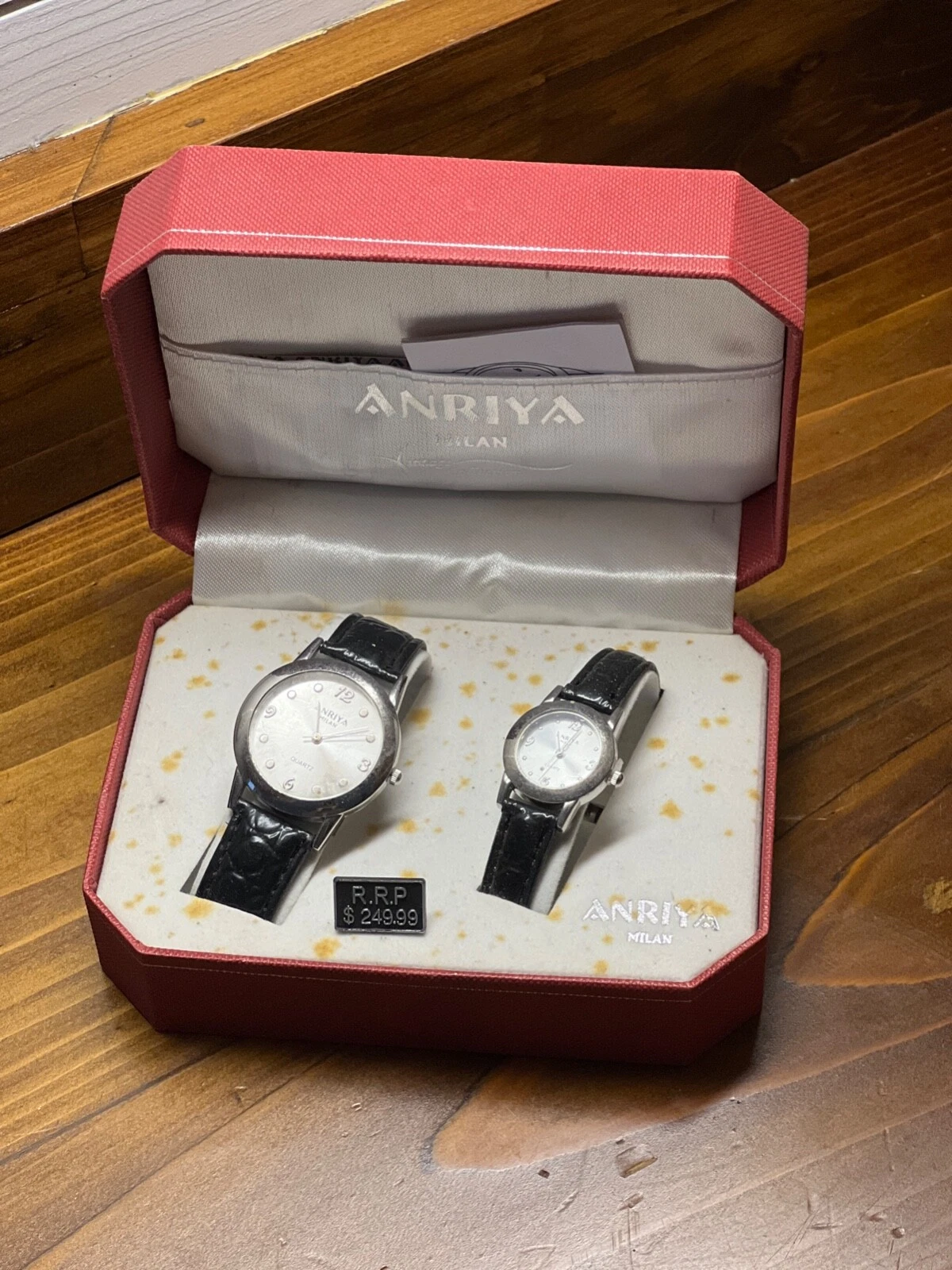 His Hers Matching Watch Silver Black Straps Buckle Closure ANRIYA MILAN NIB Set