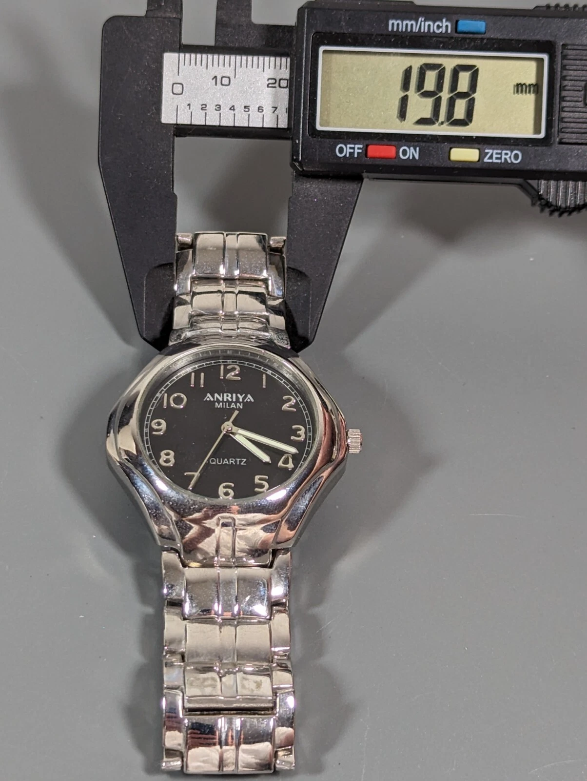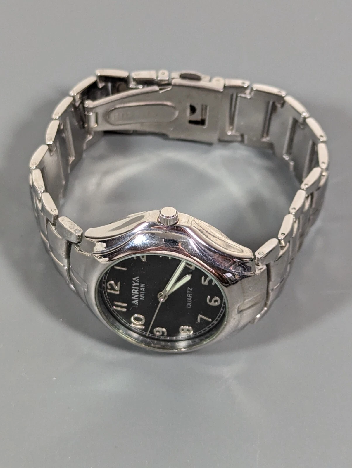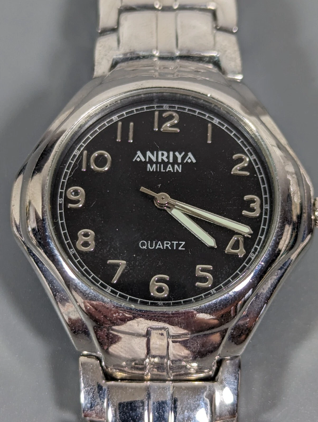 Anriya Milan Black Dial Round Silver Tone Case Stainless Steel Band Watch 8 Inch