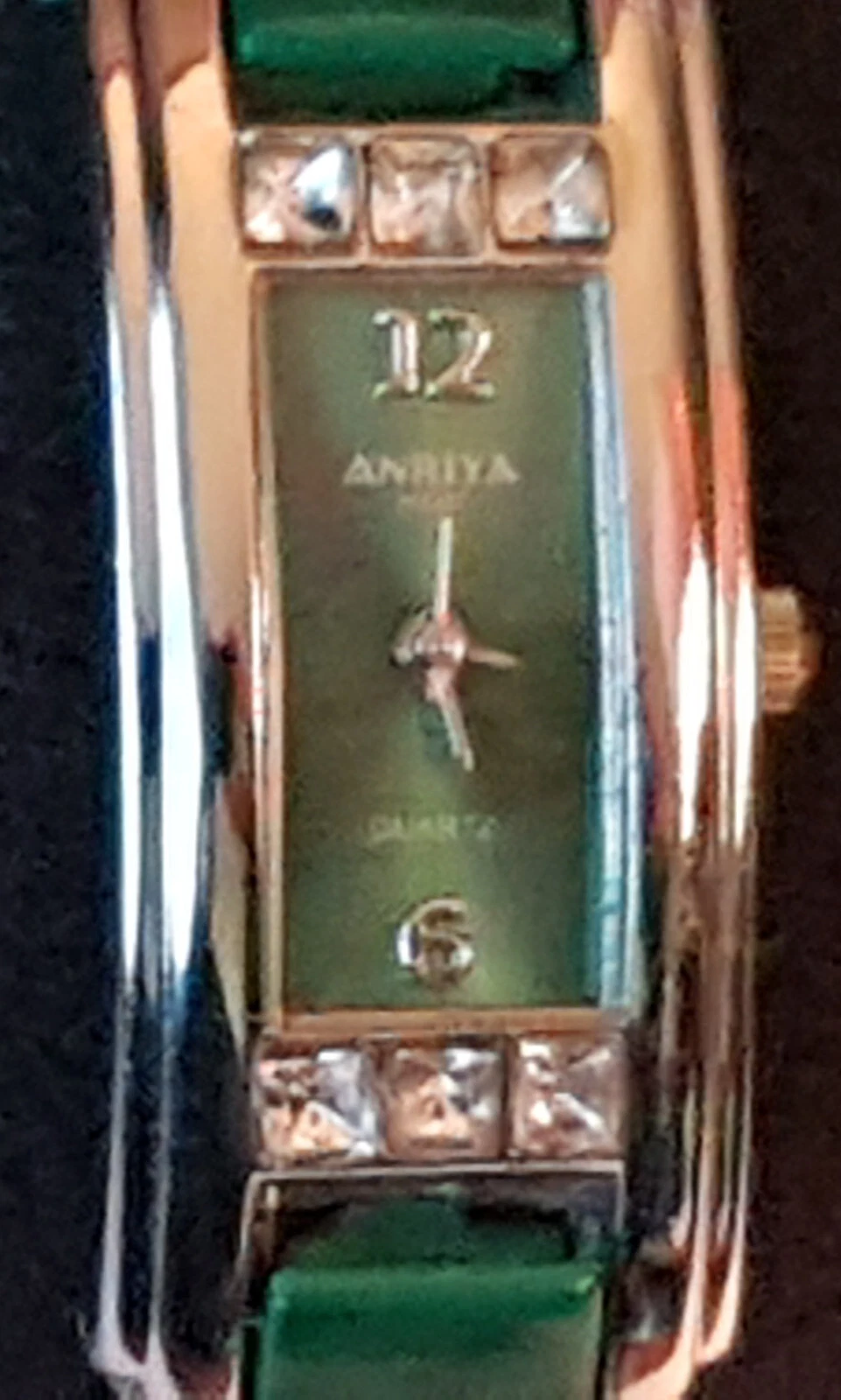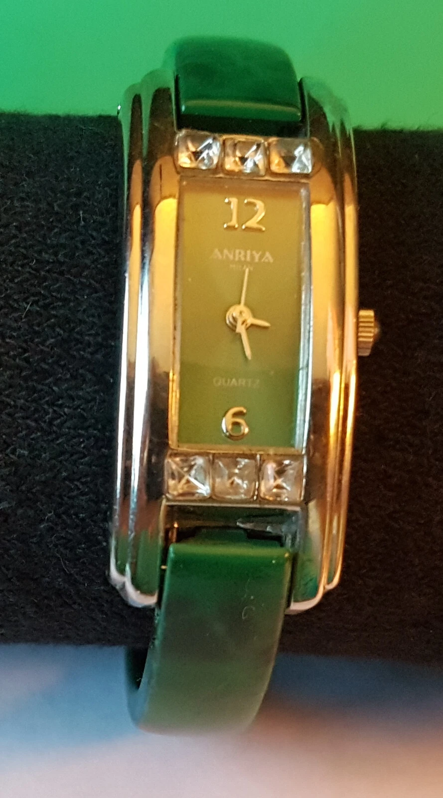 Anriya Milan Green Malachite Style Finish Ceramic Bracelet Watch Steel & 6 CZ
