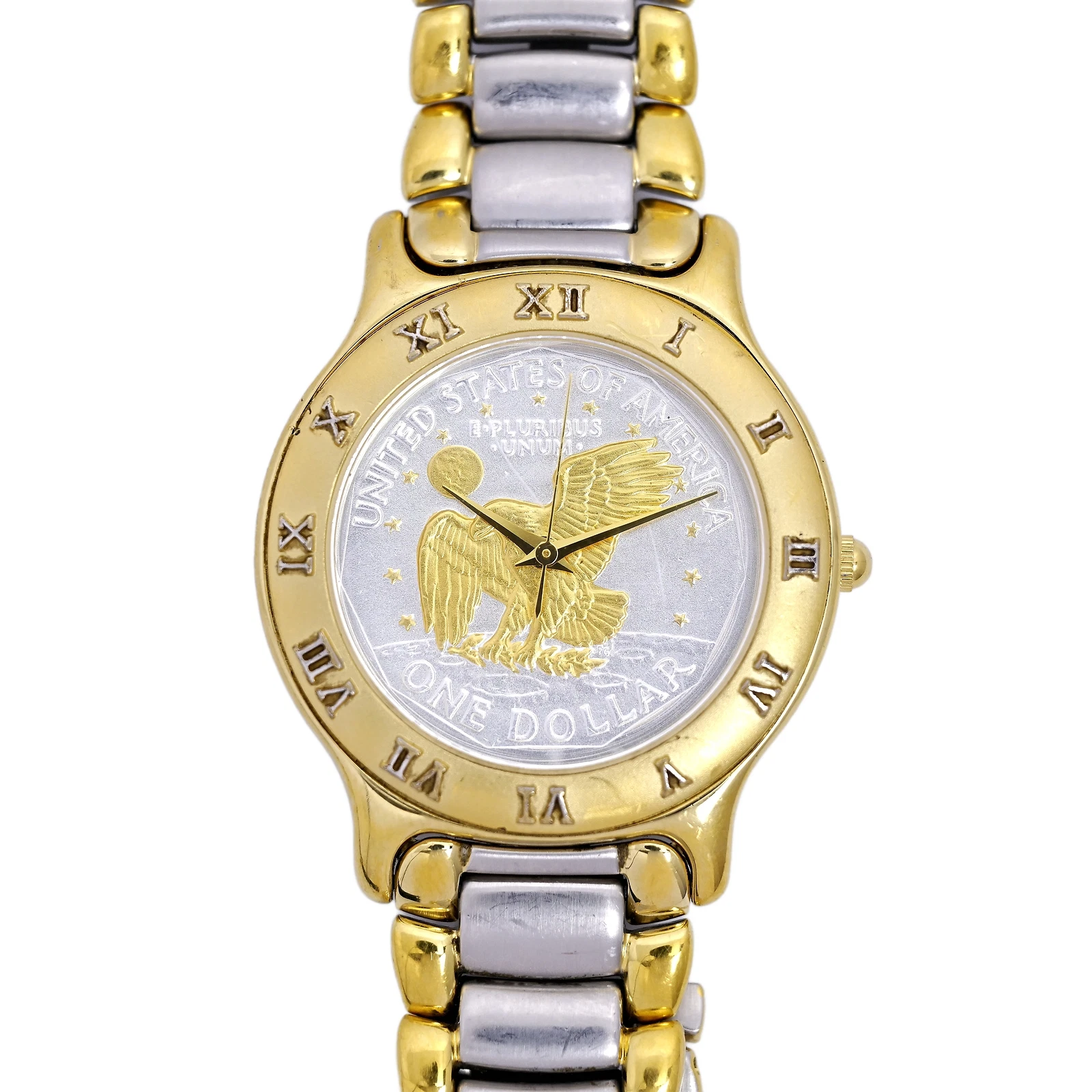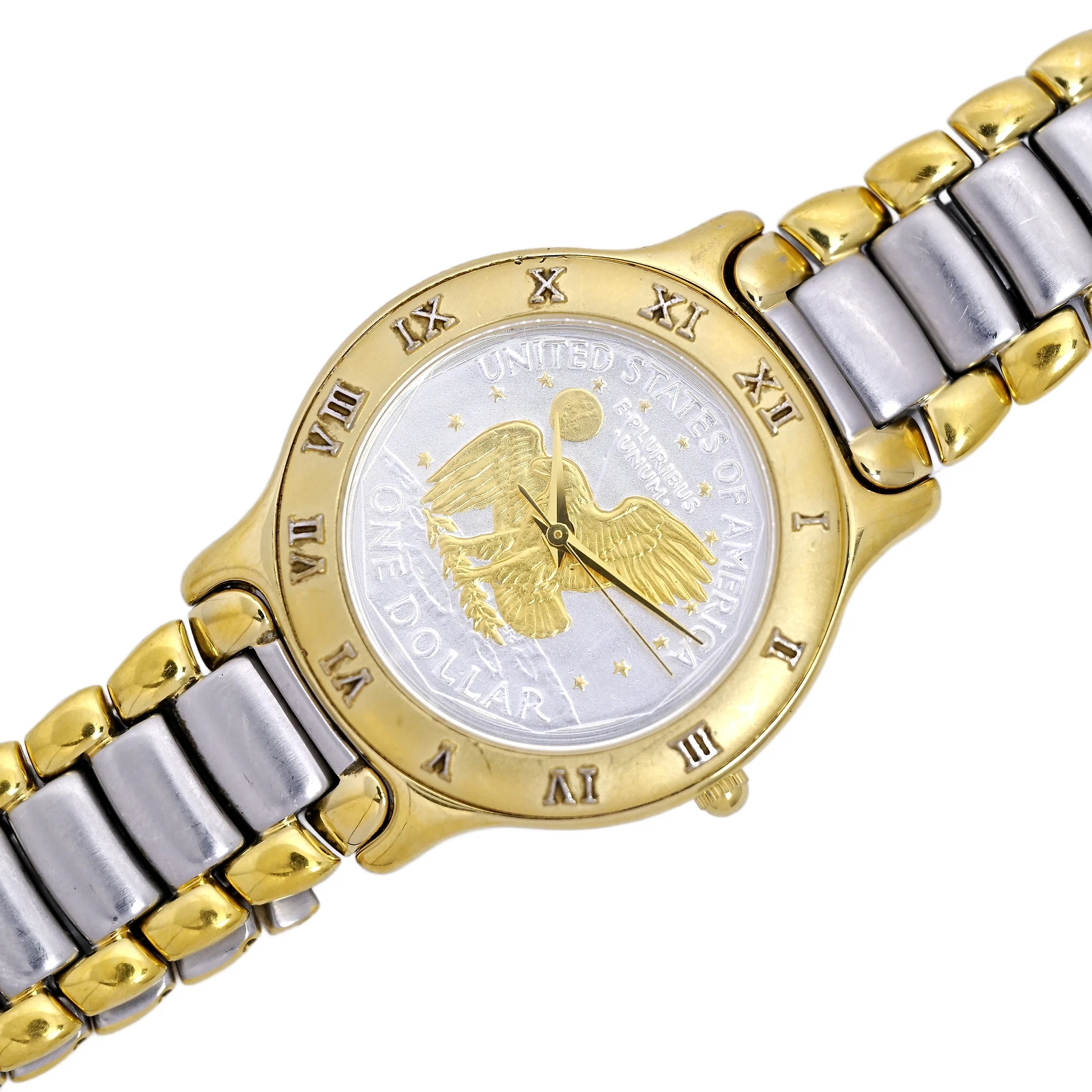 Apollo Landing Eagle Dollar Mens Bracelet Coin Watch Gold Plated 24k Gold